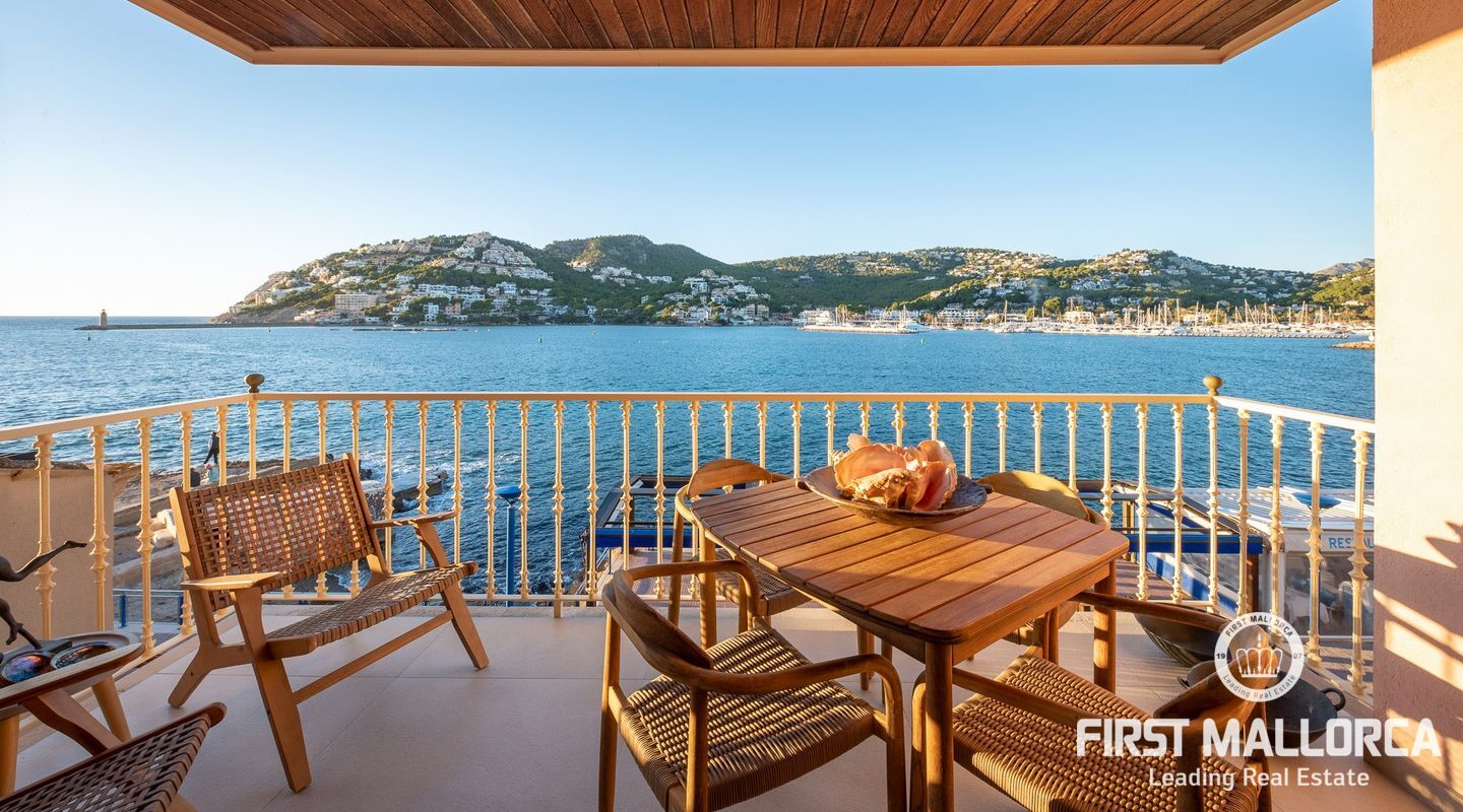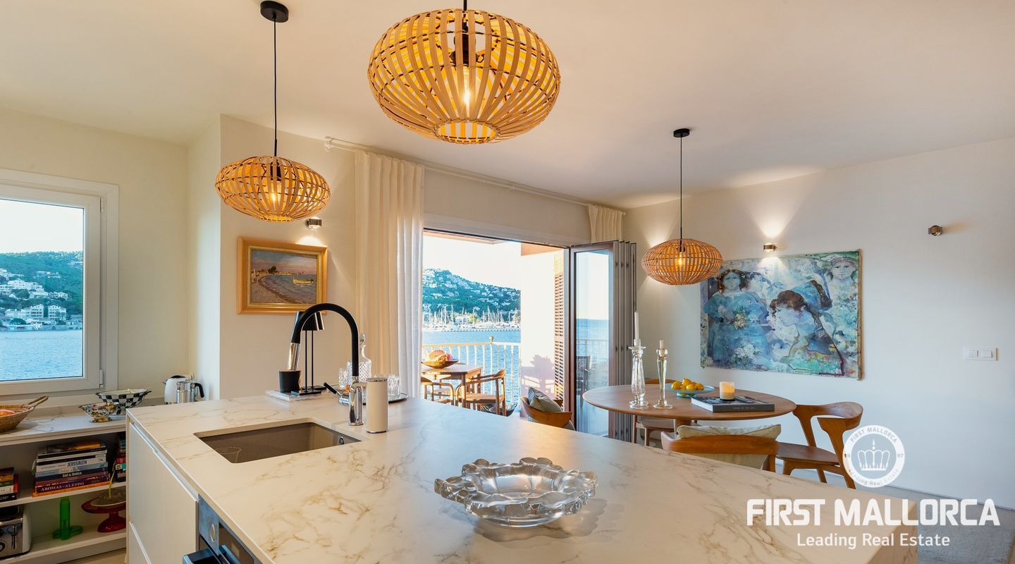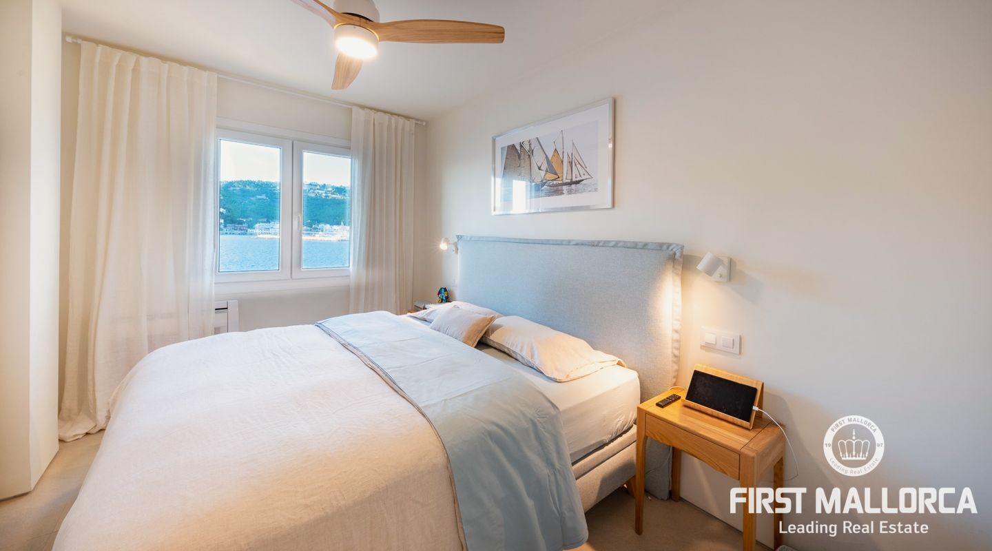 This centrally located property is on the beautiful seafront of the harbour of Port Andratx. With many fashionable boutiques and restaurants, it enjoys a unique location with panoramic sea views. The apartment has 2 bedrooms, the master bedroom with great sea views and an en-suite bathroom, a guest bathroom, a relaxing open-plan lounge area with the kitchen integrated into the dining room and a covered terrace from where you can enjoy breathtaking sunsets. It has been lovingly renovated to the highest standards with a modern interior design.