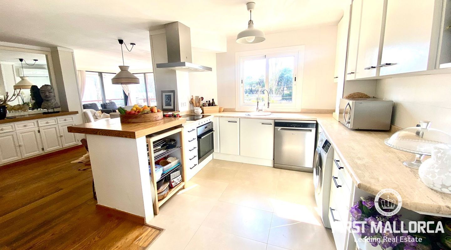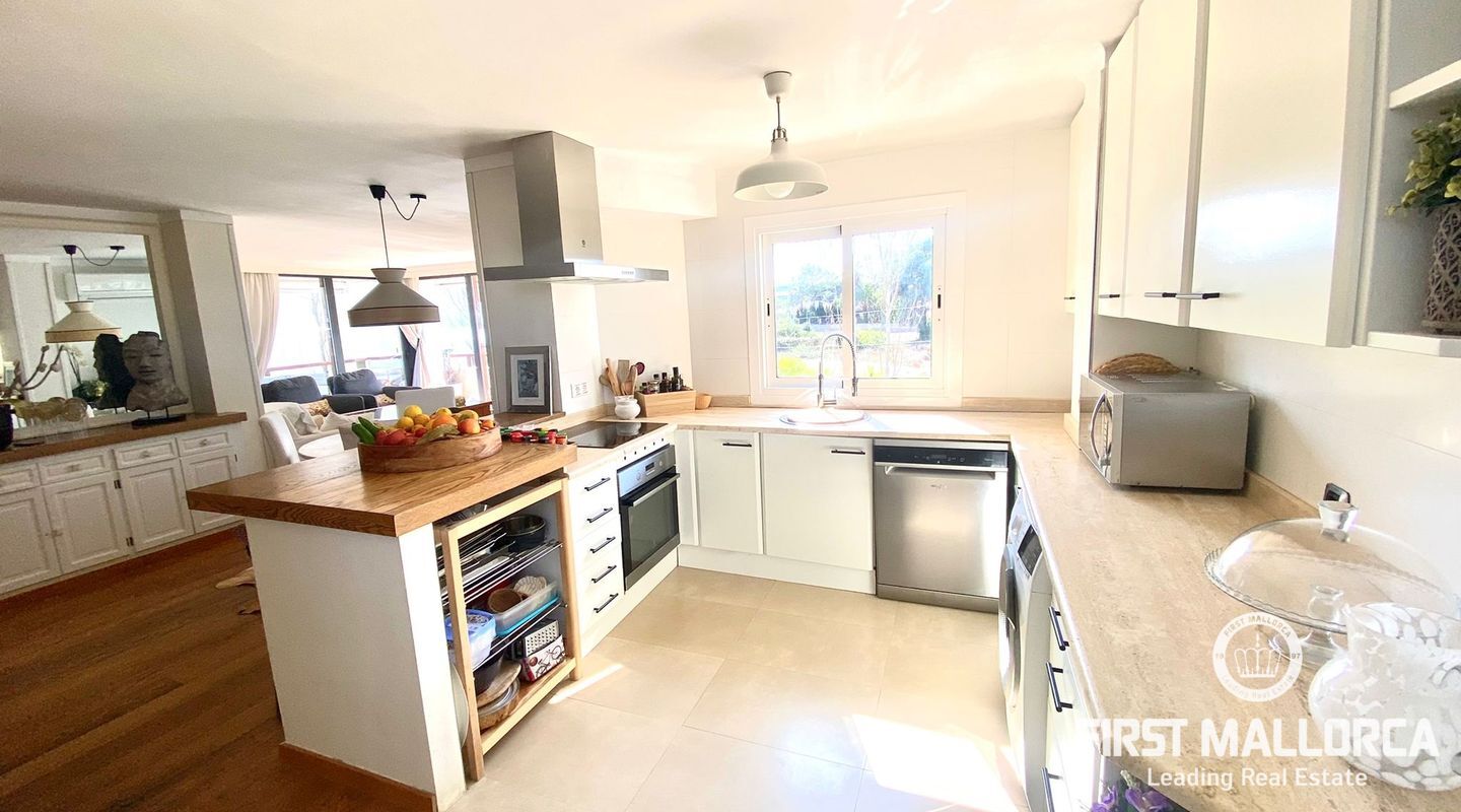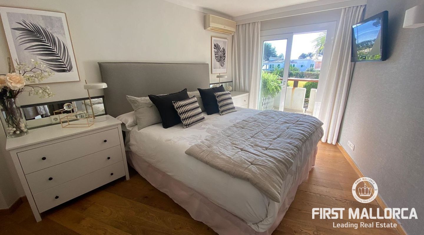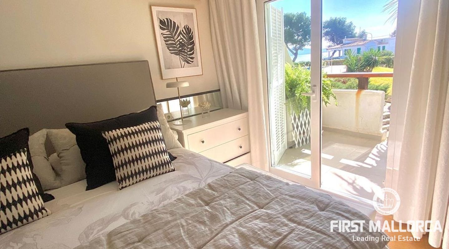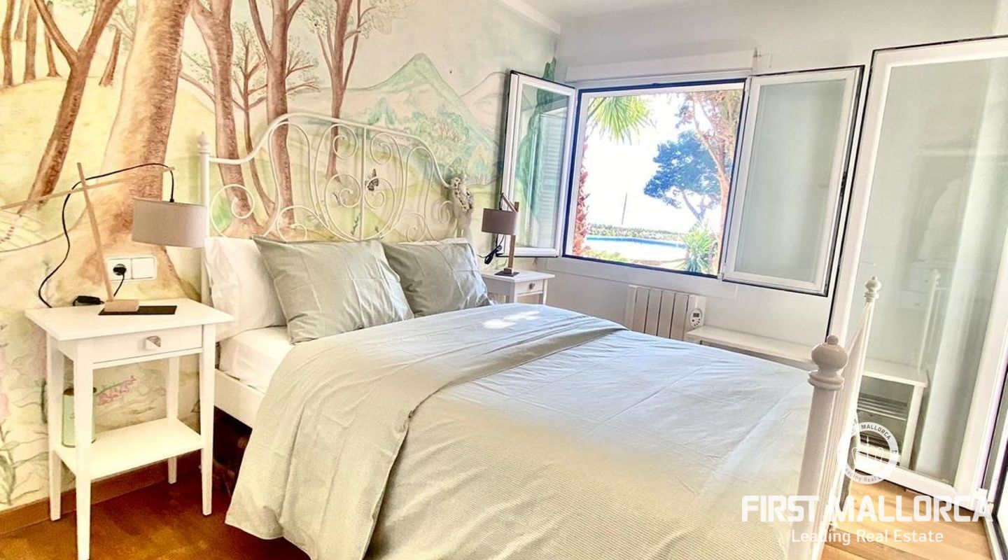 Beautiful frontline apartment on the first floor in Puerto Pollensa, Llenaire, with first class qualities. It consists of 145m2, distributed as 3 double bedrooms and 2 bathrooms (1 en-suite), fitted wardrobes, air conditioning hot/cold, living room, dining room, terrace, open equipped kitchen, wooden floors, climalit windows with double glazing, elevator, community pool, views from the terrace to the sea and the pool.