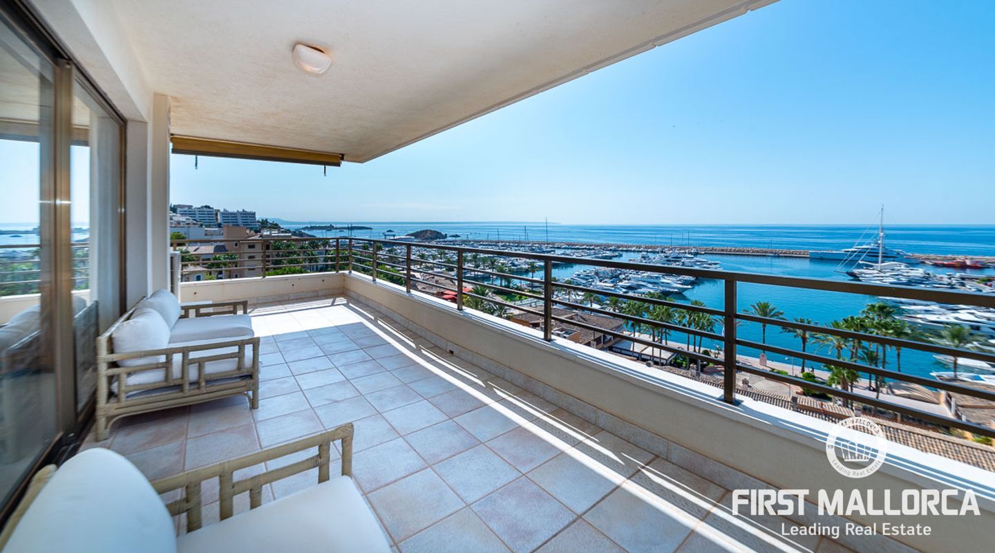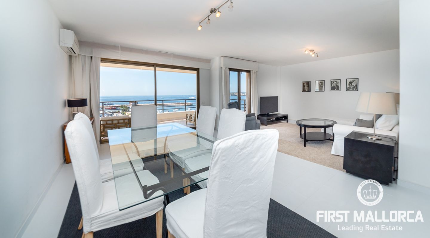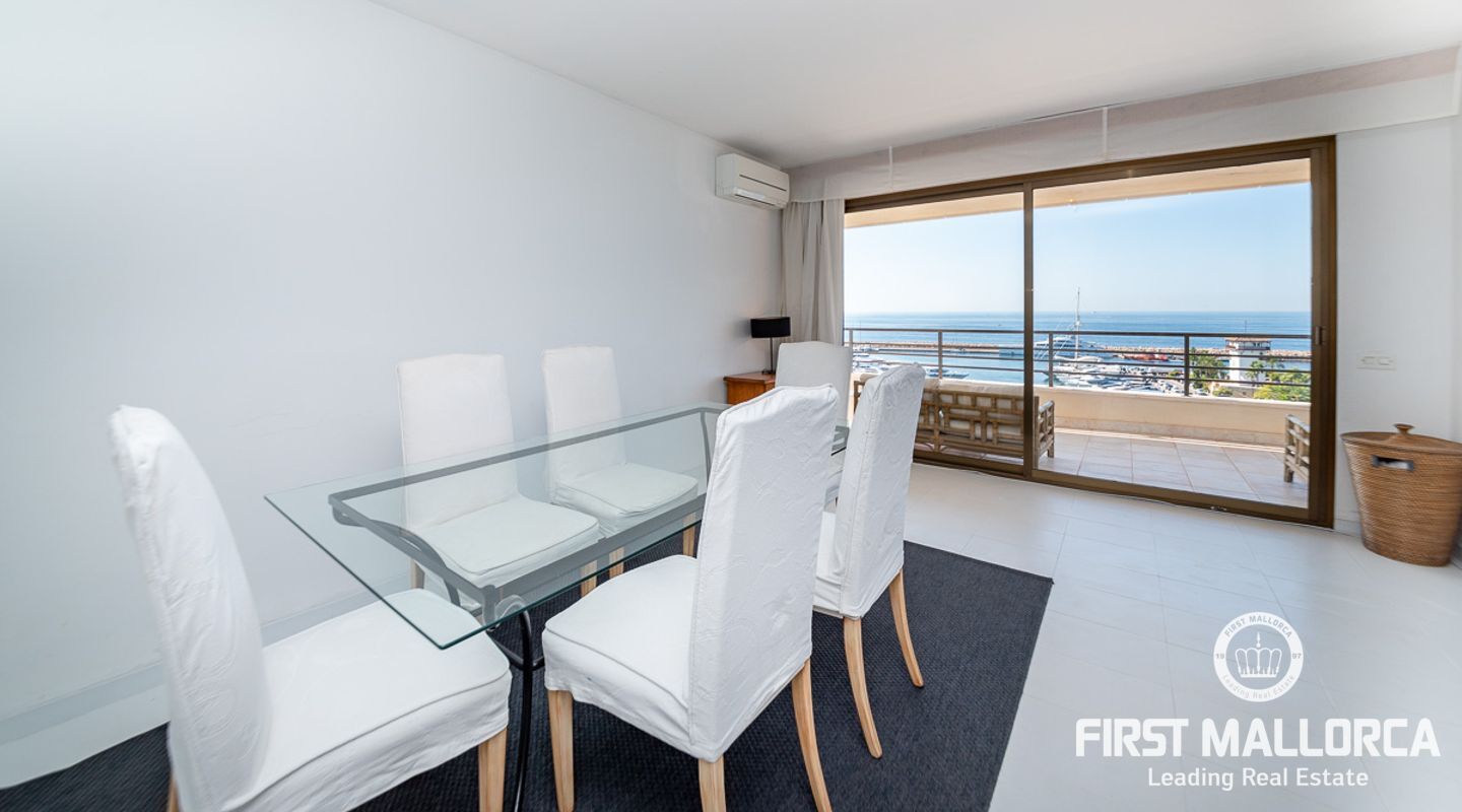 A superb opportunity to live within a quality development enjoying the most amazing 180º panoramic sea and coastal views across the fashionable marina of Puerto Portals. This exclusive port offering an all year round lifestyle ambience, sandy beaches, international cuisine restaurants and exclusive boutiques, is second to none. The south facing property is well maintained and comprises 3 bedrooms, 2 bathrooms, living room and dining area opening onto the spacious terrace with all day sunshine and spectacular day and night time views. There is a generous community swimming pool with surrounding sunbathing terraces and an access gate directly into the marina. Further features of this well appointed apartment include: hot & cold air-conditioning, double glazing a separate laundry room, community lift and an exterior parking. Live in one of the most sought after areas on Mallorca, only a short drive away from the historical city centre of Palma and the international airport.