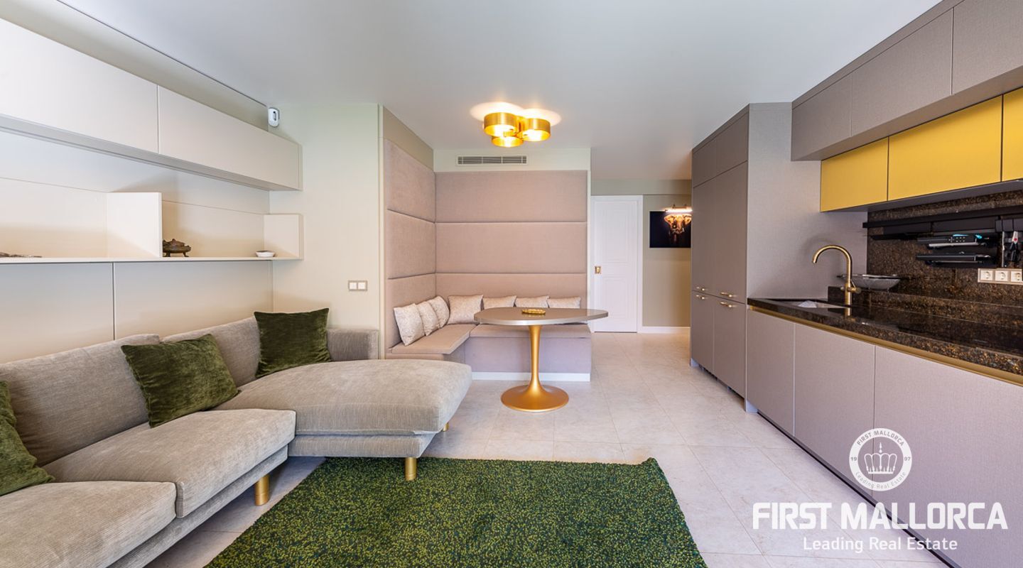 A south west facing apartment enjoying lots of sunshine and an open view across the community gardens with a glimpse to the sea ! This designer apartment has been reformed to an extremely high standard with an eye to detail and is located in a frontline to sea development which is only a 5 minute stroll to the beaches and marina of Puerto Portals. In addition there are a variety of local shops and restaurants that are in the vicinity but not in the marina at your fingertips !