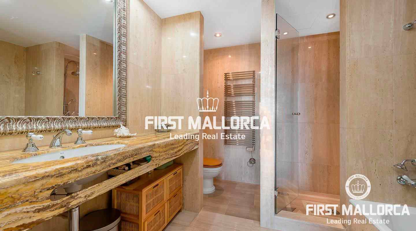The distribution of the property is as follows: A reception area, a bright living room with a dining area and an open fireplace, an open-plan kitchen built into a sunny bay window area. Additionally there is a master bedroom with an en-suite bathroom and a dressing area, 1 further bedroom and 1 bathroom. The living room and the master bedroom open onto a very pleasant terrace enjoying sea views. Features of this apartment include: hot & cold air-conditioning throughout, marble floors, underfloor heating in the elegant marble bathrooms and a garage parking space. The residence is located approximately 400 meters from Illetas where there are several pretty beaches, cafés and restaurants. The yachting marina of Puerto Portals is a 3 minute car ride away and the Royal Bendinat Golf Course runs alongside.