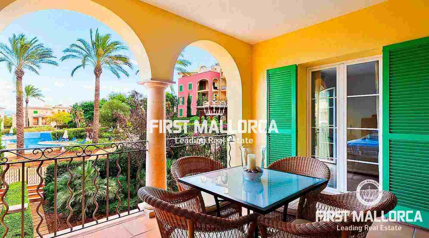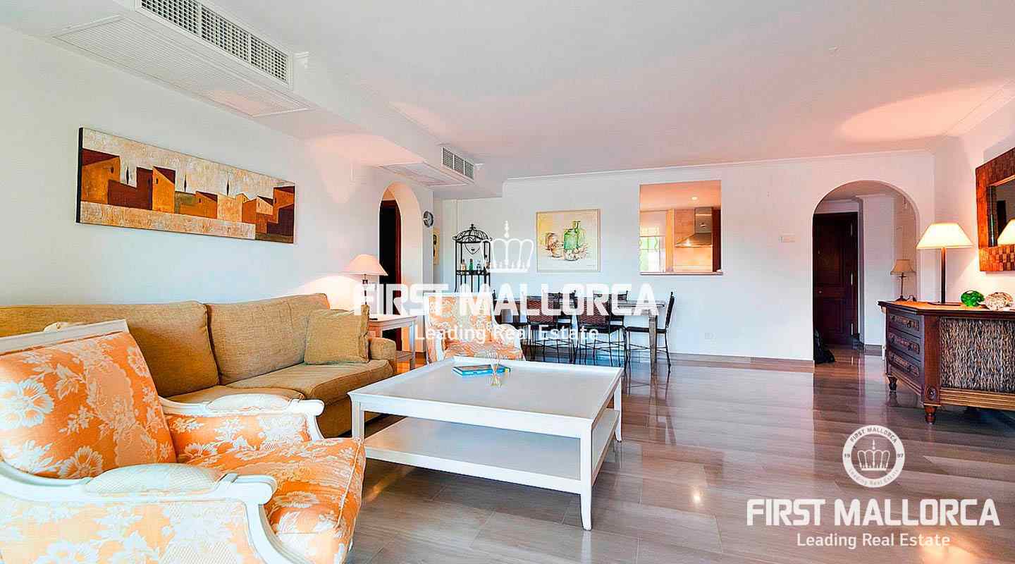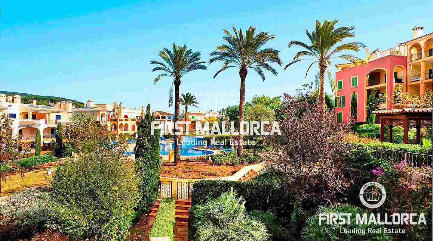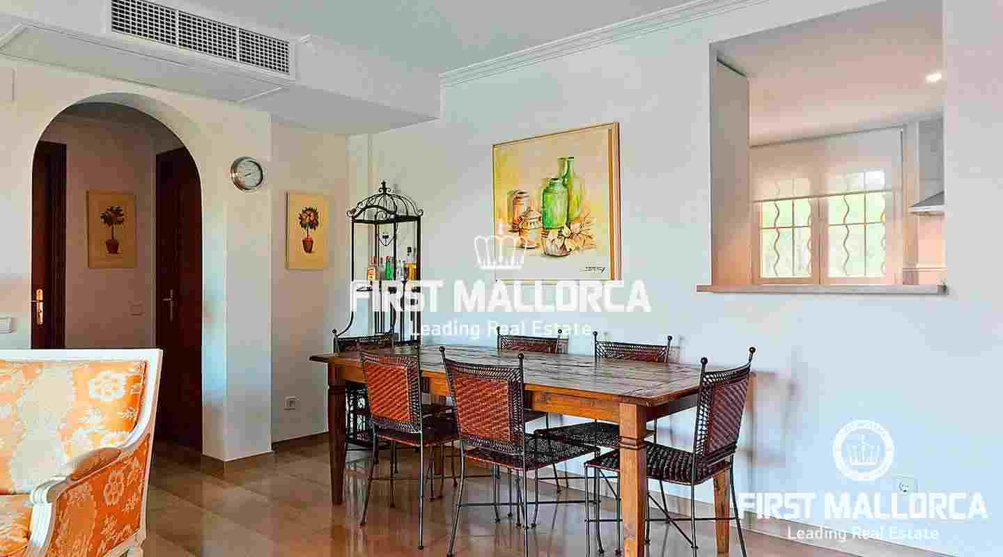 This stunning, impeccably maintained apartment is located in the prestigious Sa Vinya area of Bendinat, offering serene vistas over the community pool and lush gardens. The apartment, which features two bedrooms and two bathrooms, boasts a generous one hundred and twenty square meters of living space, including a fifteen square meter covered terrace, and is being sold fully furnished. With the added convenience of two underground parking spaces and a lift for easy access, this property combines comfort with modern living. The upper pool offers breathtaking views of the sea, enhancing the tranquil atmosphere of the residence. Additionally, international schools and the Royal Bendinat Golf Course are just a short distance away, while the vibrant city of Palma is only a few minutes by car.