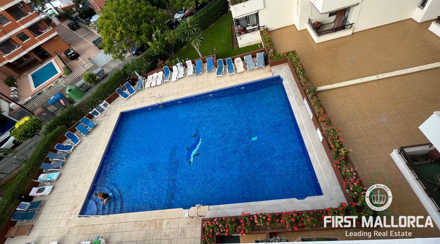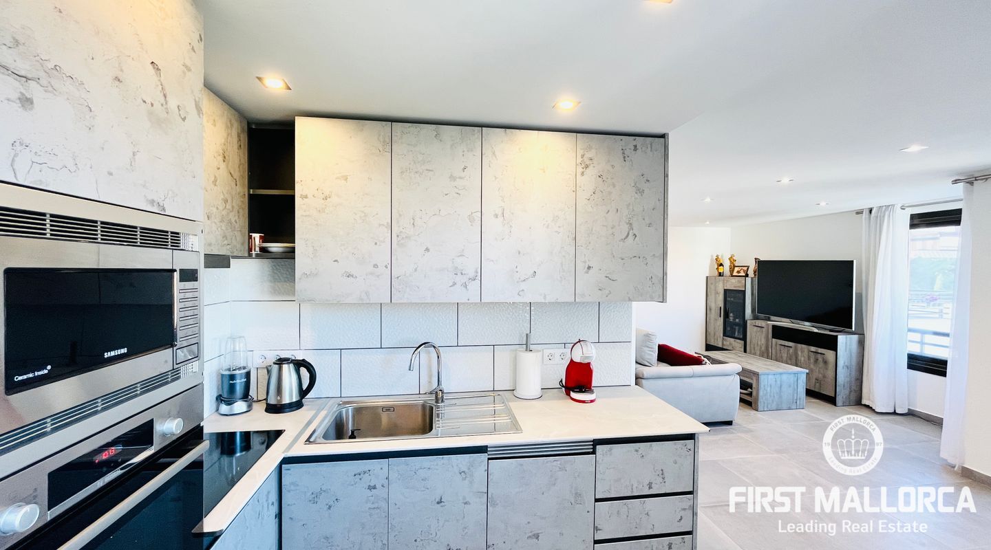 This completely renovated and generously sized apartment is situated in a complex with a communal pool and sun terrace in a central location in Santa Ponca. The apartment features two spacious bedrooms, two modern bathrooms, and an open living area that seamlessly connects to the modern kitchen and provides access to a charming balcony, inviting you to enjoy the view.