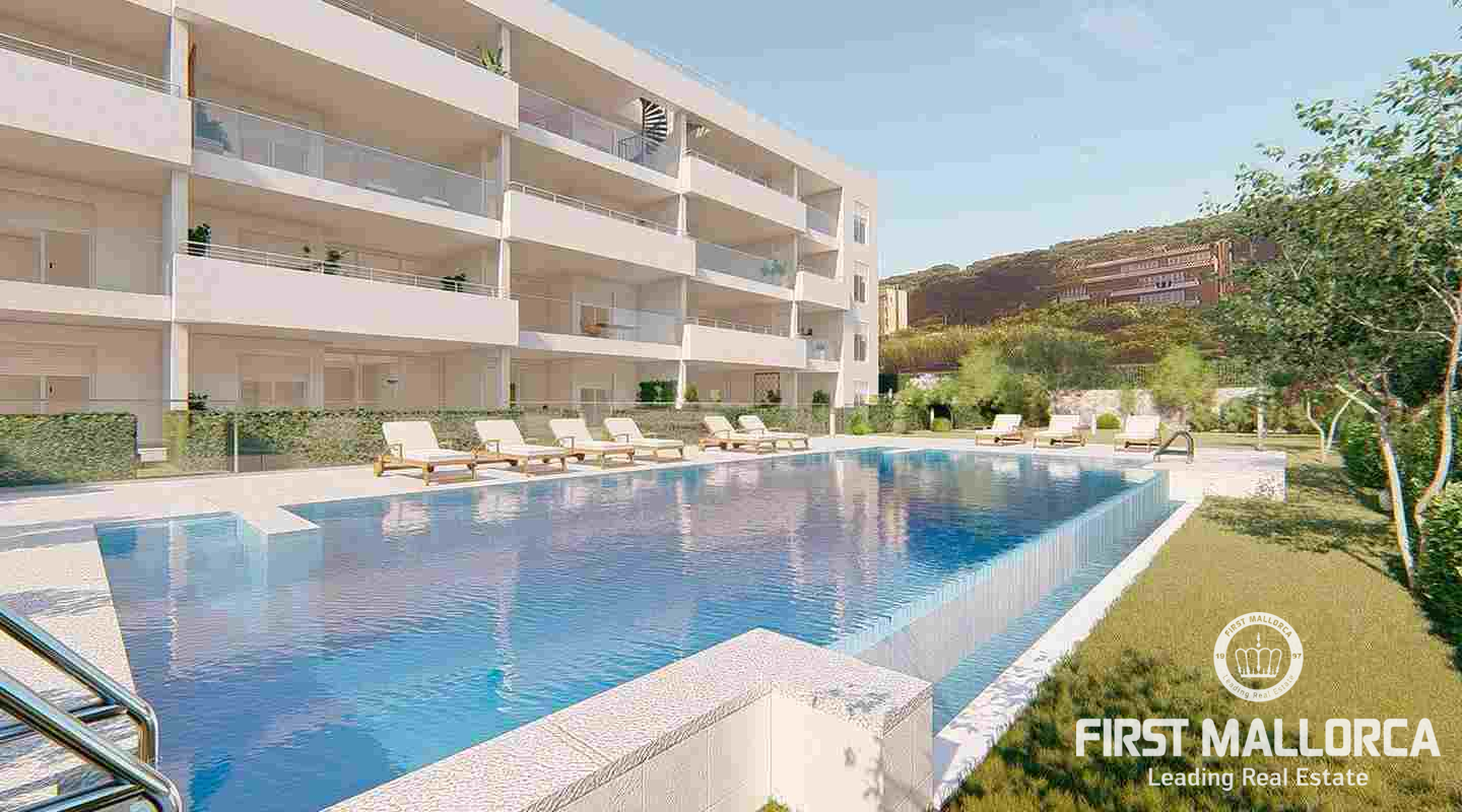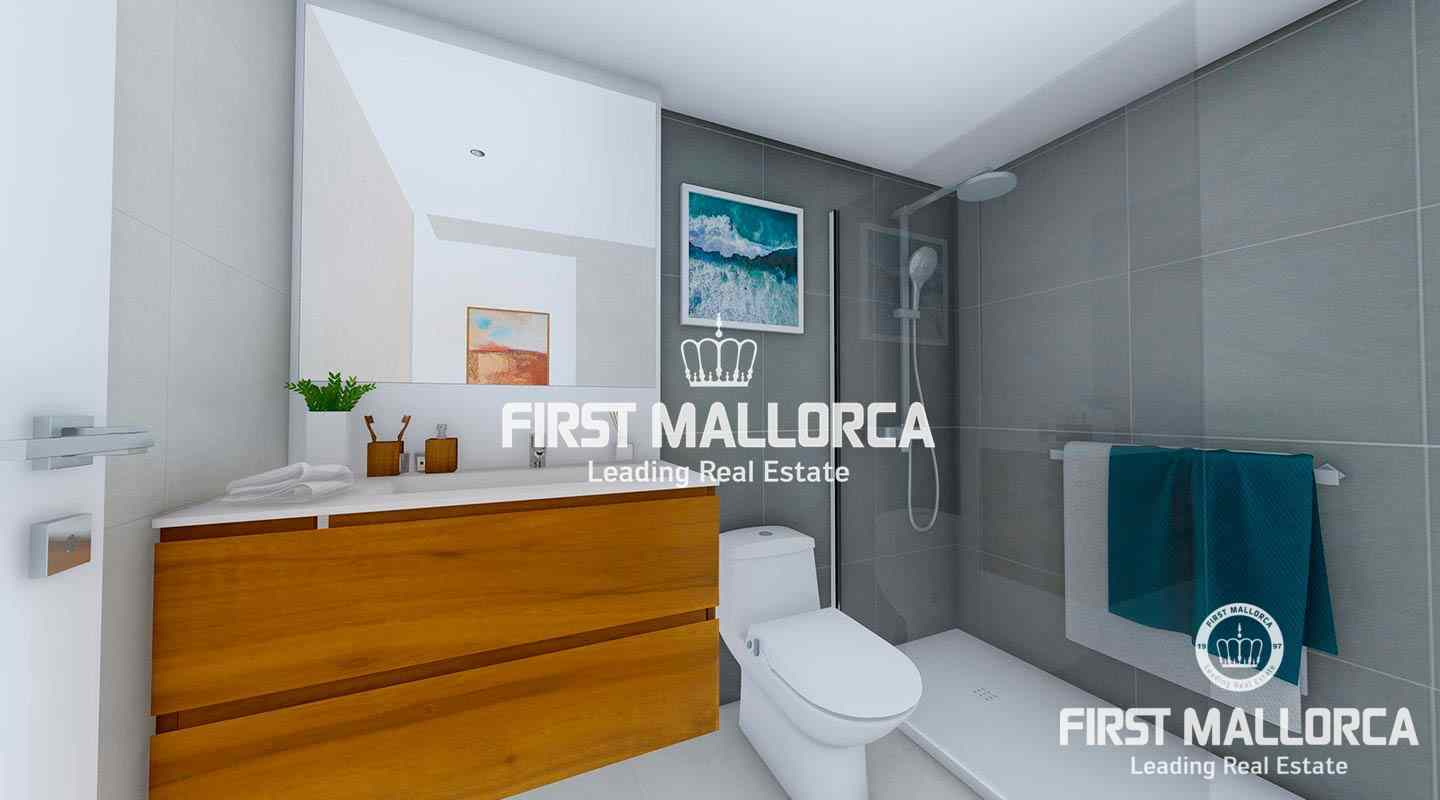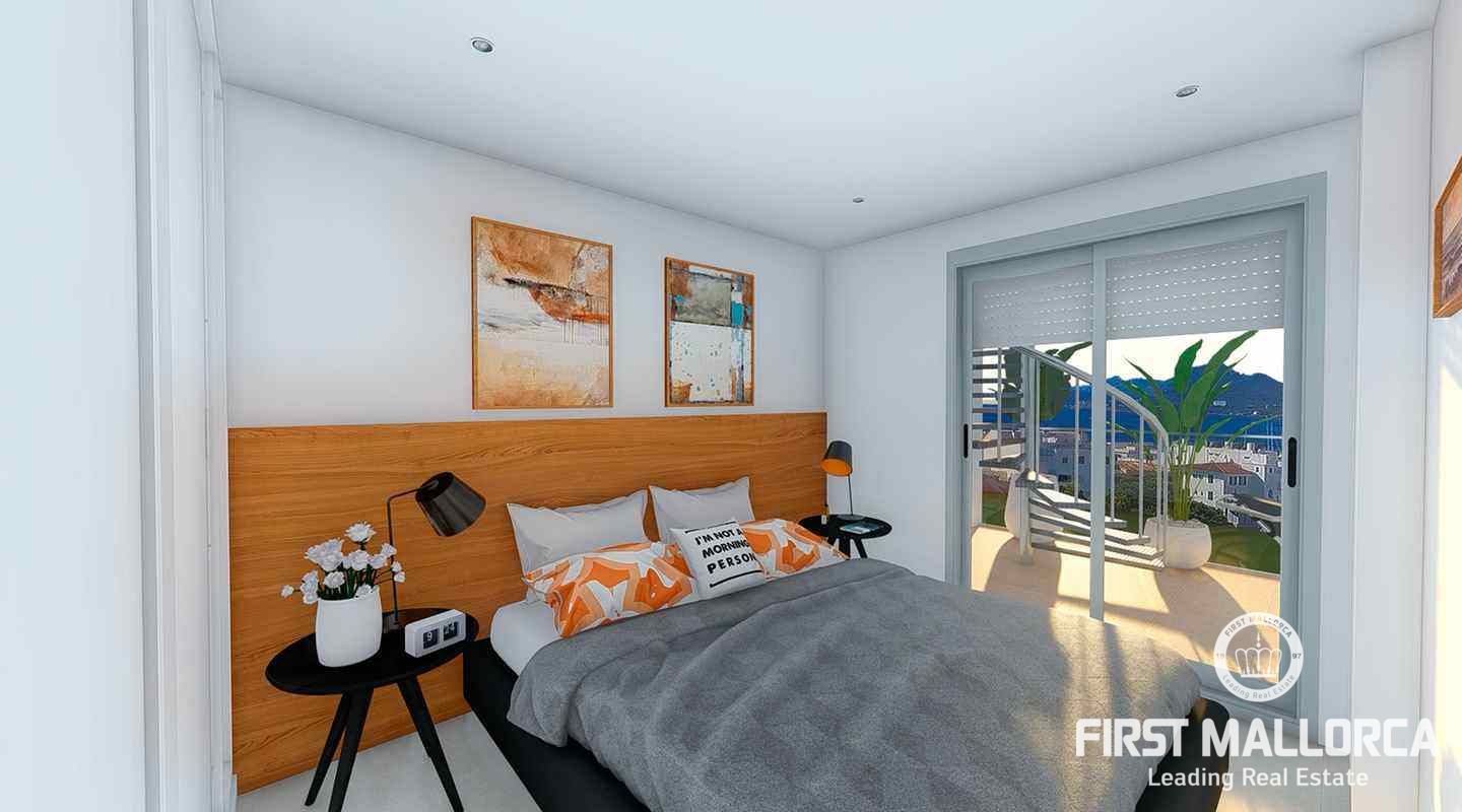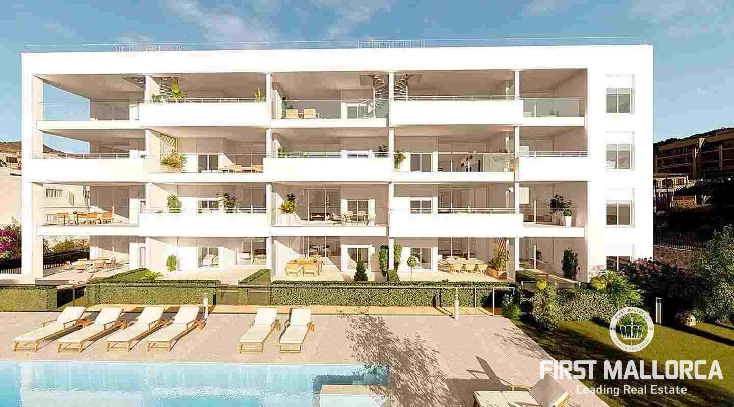 These new apartments in Cala Ratjada of approx. 100 m2 living space have two bedrooms and two bathrooms, both fully equipped. The ground floor apartments have a private outdoor area with a garden and terrace, the other apartments have a terrace of up to 26 m2. The building is surrounded by a garden with a pool, outdoor showers and sun terraces for communal use.