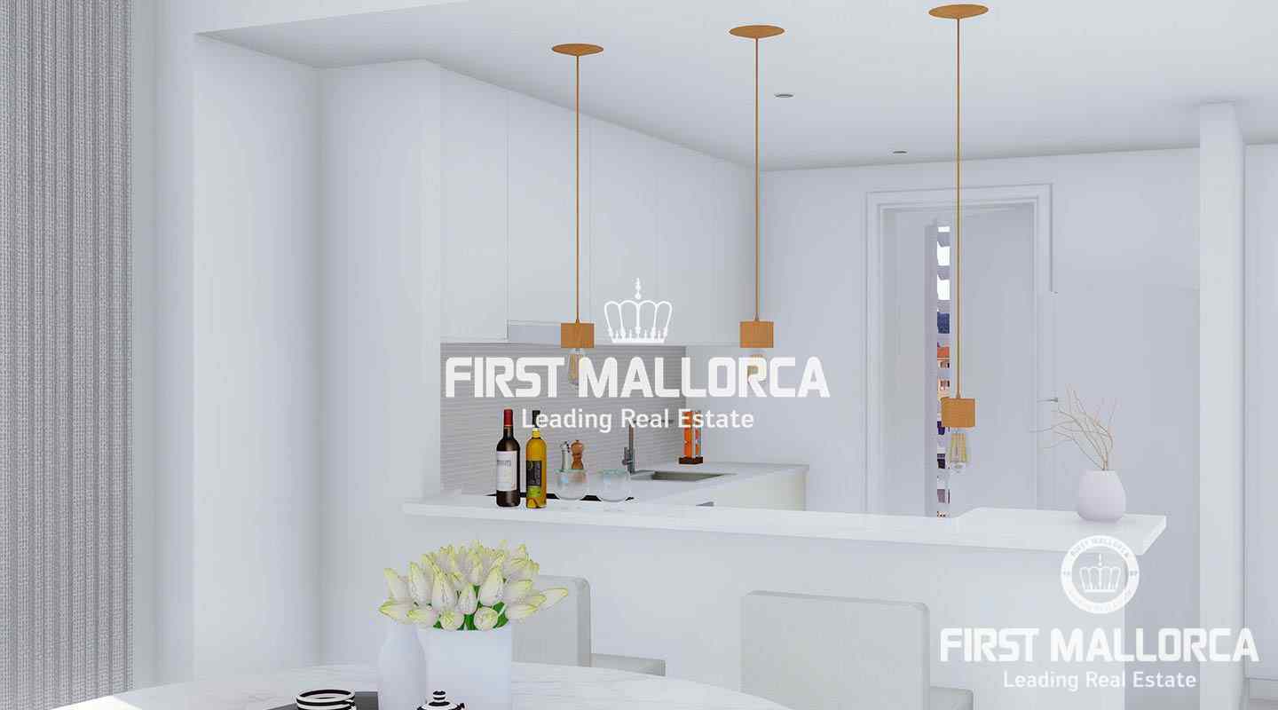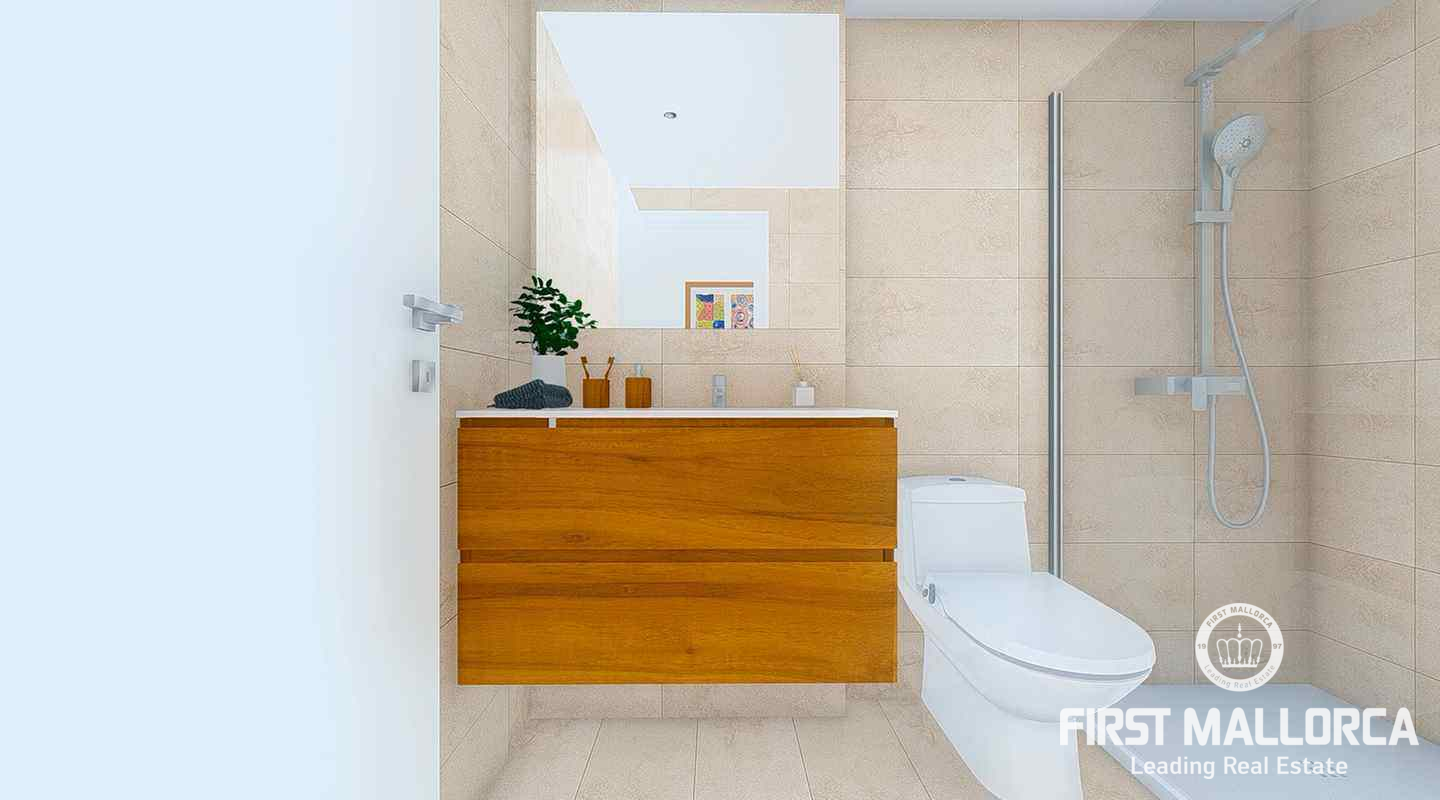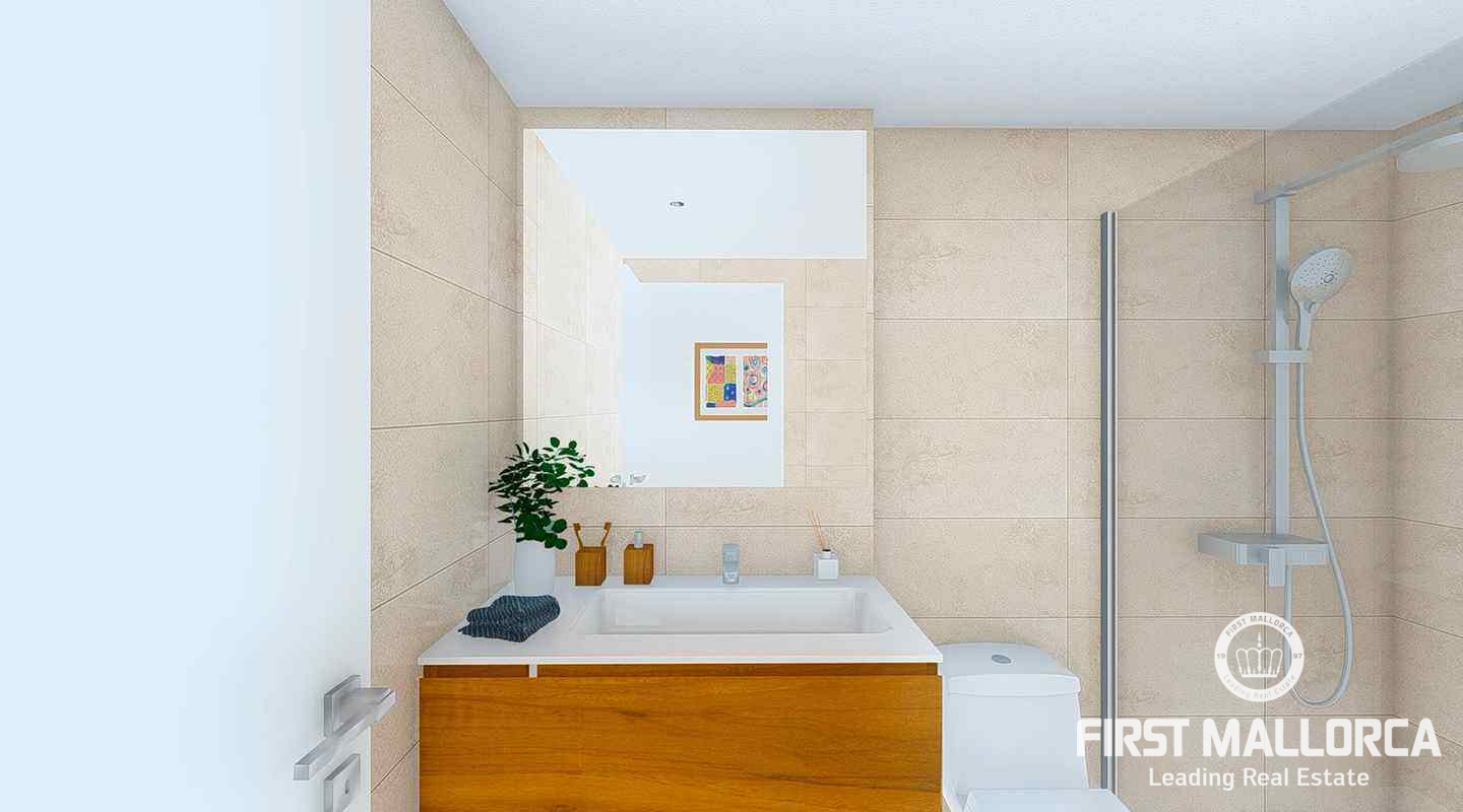 These new apartments in Cala Ratjada of approx. 100 m2 living space have two bedrooms and two bathrooms, both fully equipped. The ground floor apartments have a private outdoor area with a garden and terrace, the other apartments have a terrace of up to 26 m2. The building is surrounded by a garden with a pool, outdoor showers and sun terraces for communal use.