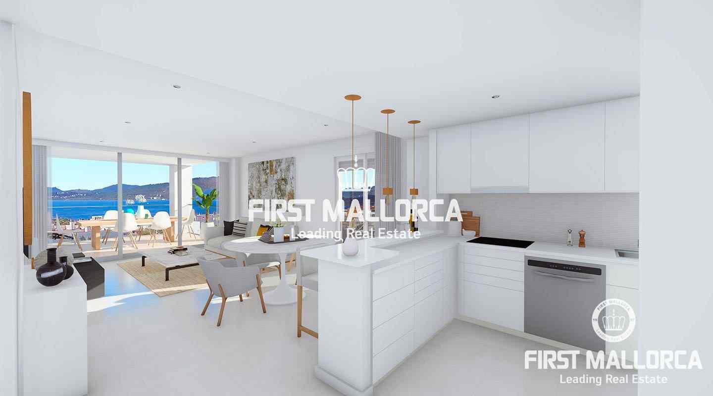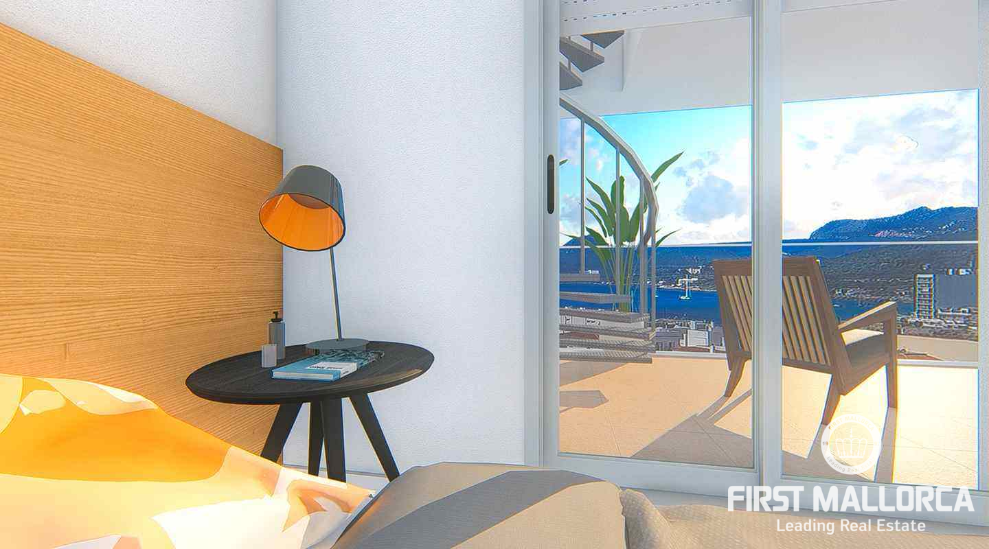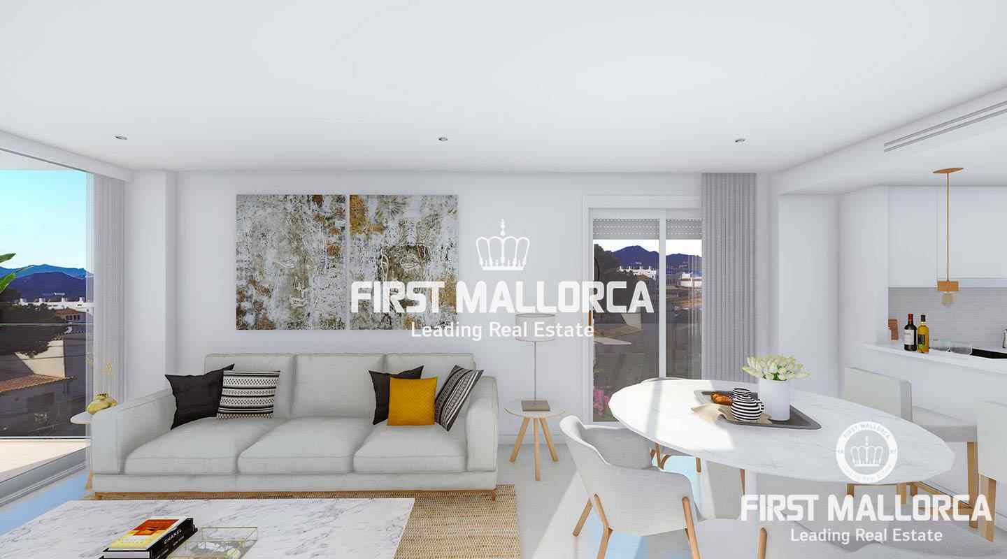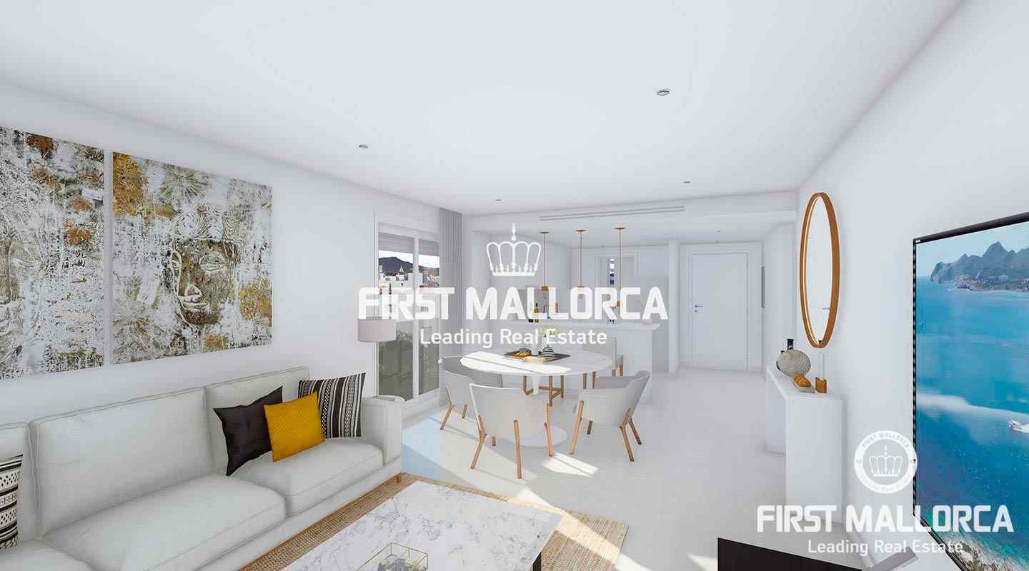 These new apartments in Cala Ratjada of approx. 100 m2 living space have two bedrooms and two bathrooms, both fully equipped. The ground floor apartments have a private outdoor area with a garden and terrace, the other apartments have a terrace of up to 26 m2. The building is surrounded by a garden with a pool, outdoor showers and sun terraces for communal use.