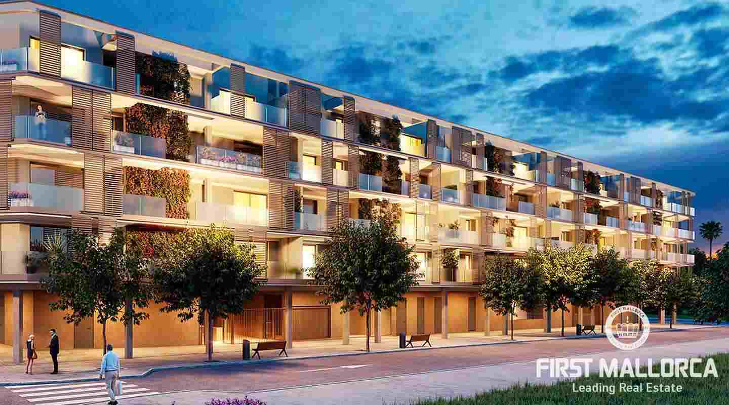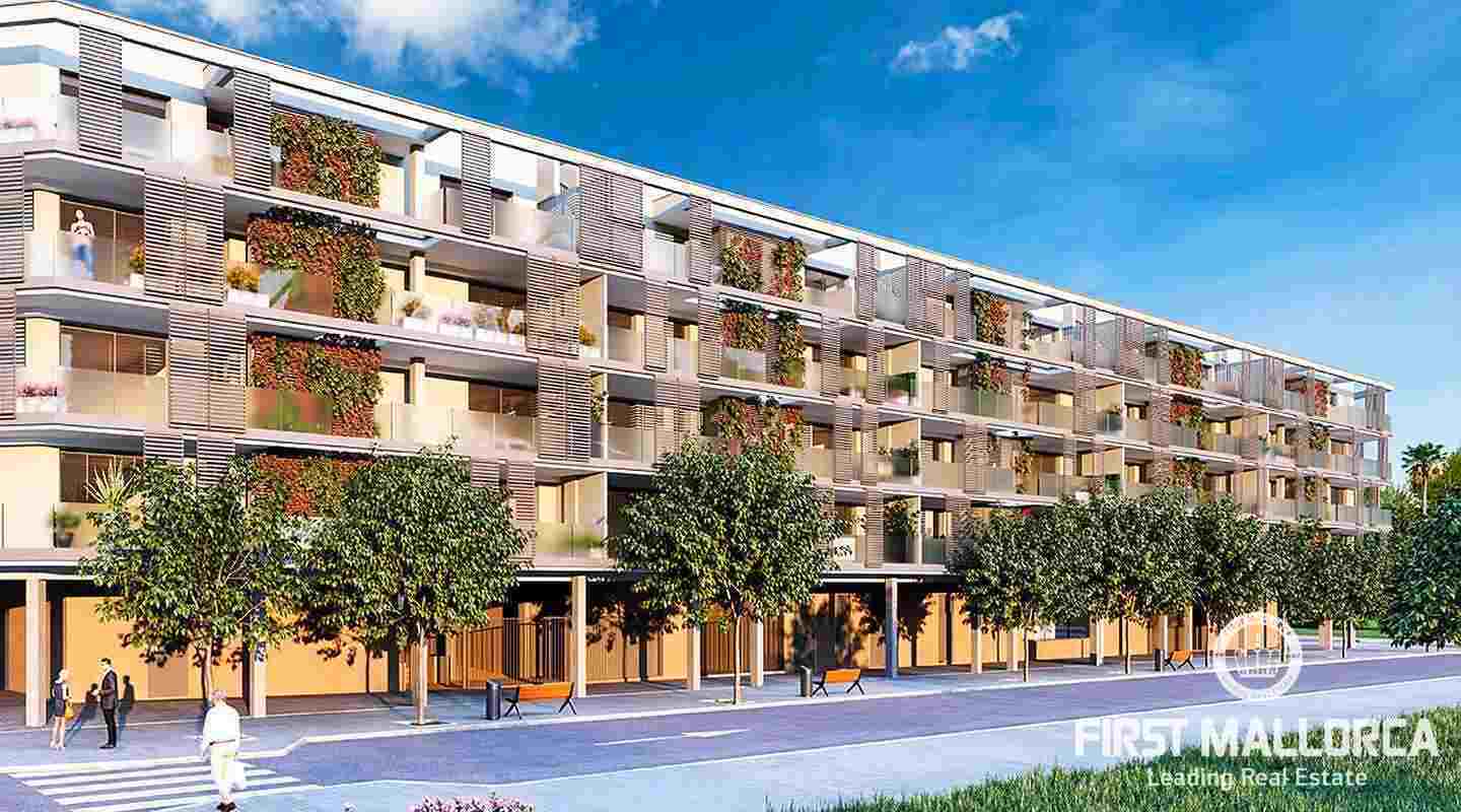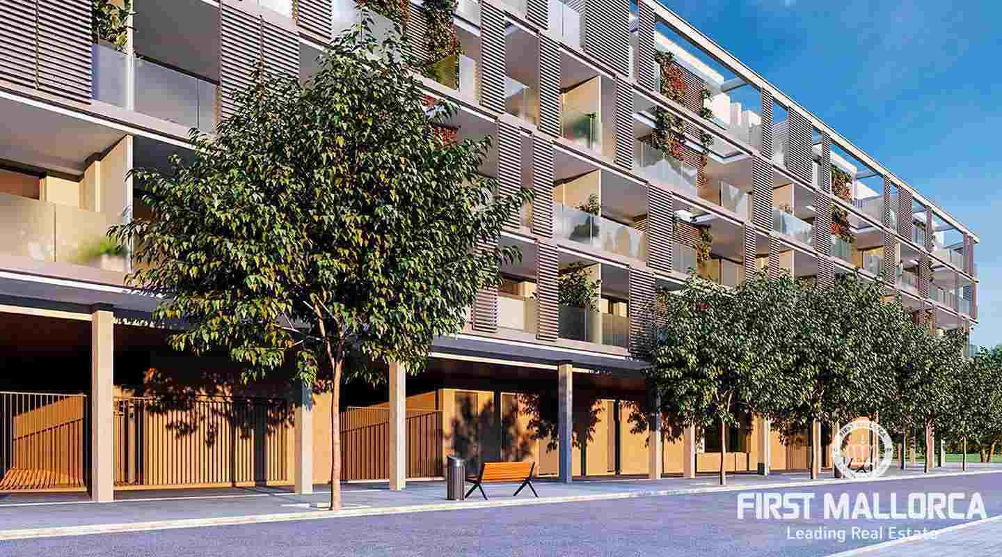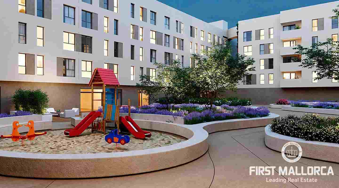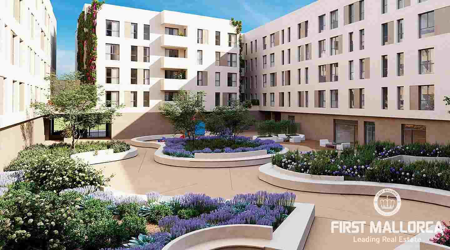 This new residential project in Palma's S'Olivera - Amanecer district offers 104 new build apartments with 2, 3 and 4 bedrooms, business premises, parking spaces and storage rooms. In addition, the complex has large gardens, a swimming pool and other communal areas.
