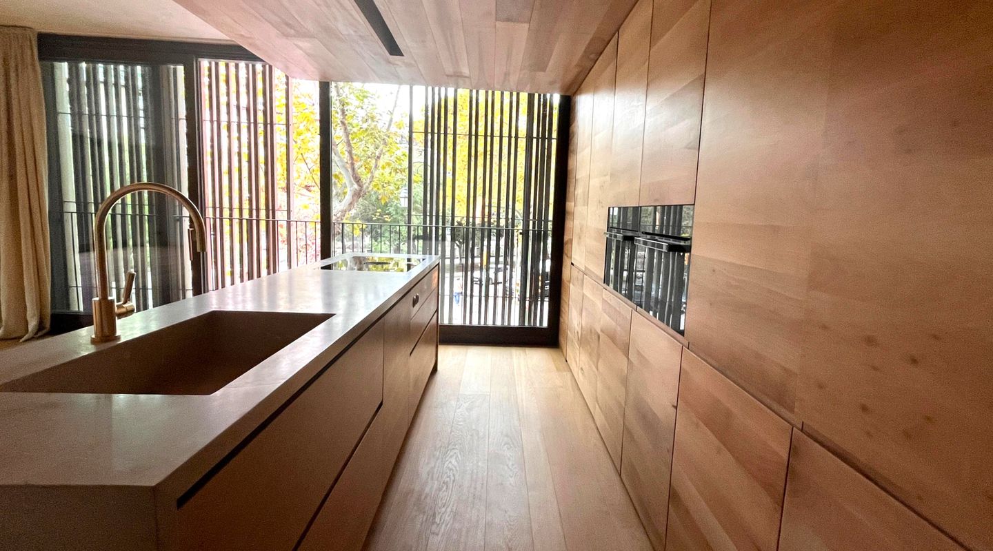 Its features include fine materials, natural wood floors, and large windows that guarantee light and comfort throughout the year.