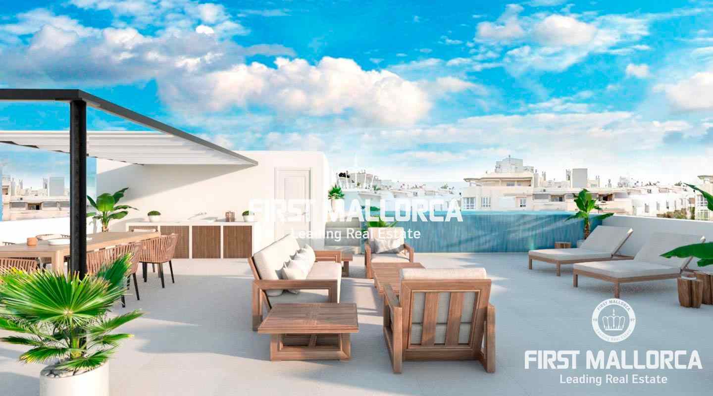 A brand new duplex apartment with character and high qualities near the popular neighbourhood of Santa Catalina 'du Nord'. Ready to move in 2022. It is distributed on two floors.On the first floor you find a living and dining room with an open kitchen and on the ground floor there are three bedrooms and two bathrooms. The special extras is a private pool on a large terrace with unobstructed views, a patio on the ground floor, private parking in the garage and a storage room.