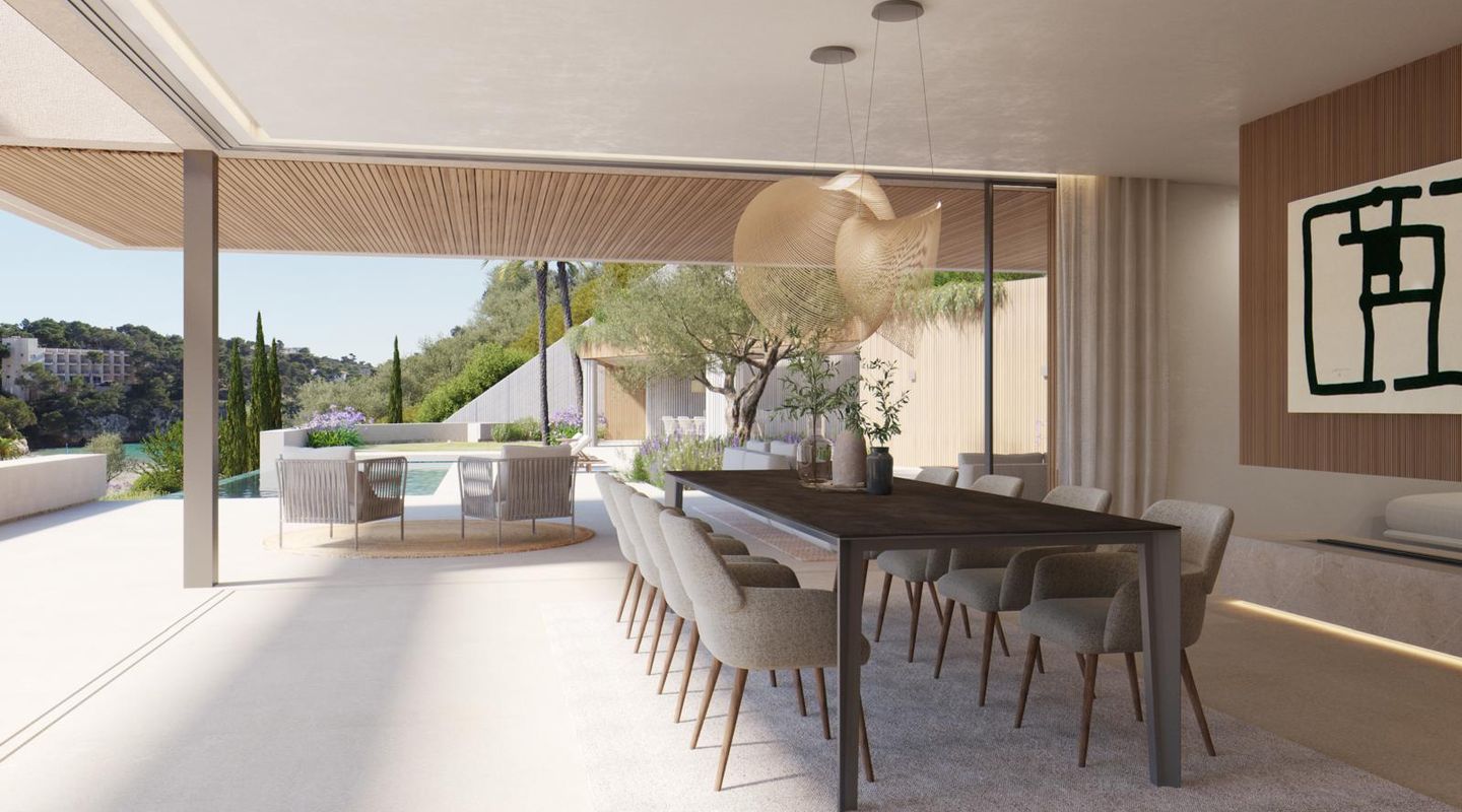 The villa is east-facing, offering the opportunity to enjoy sunrises in Cala Santanyi from the patio.