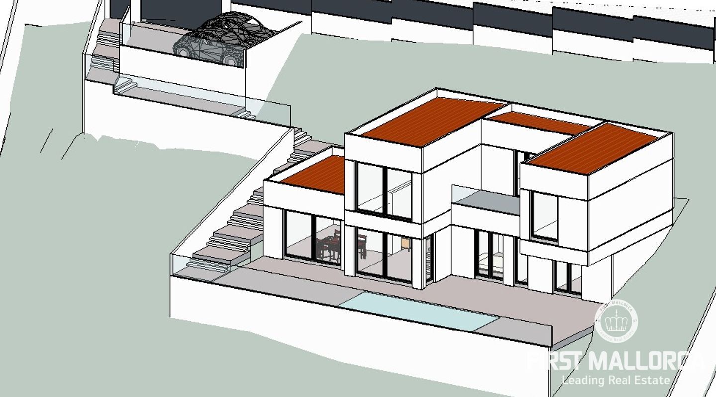 Plot for sale with views to the bay of Palma and project. On the plot of 1.300m2 it is possible to build a villa ask more details about the project