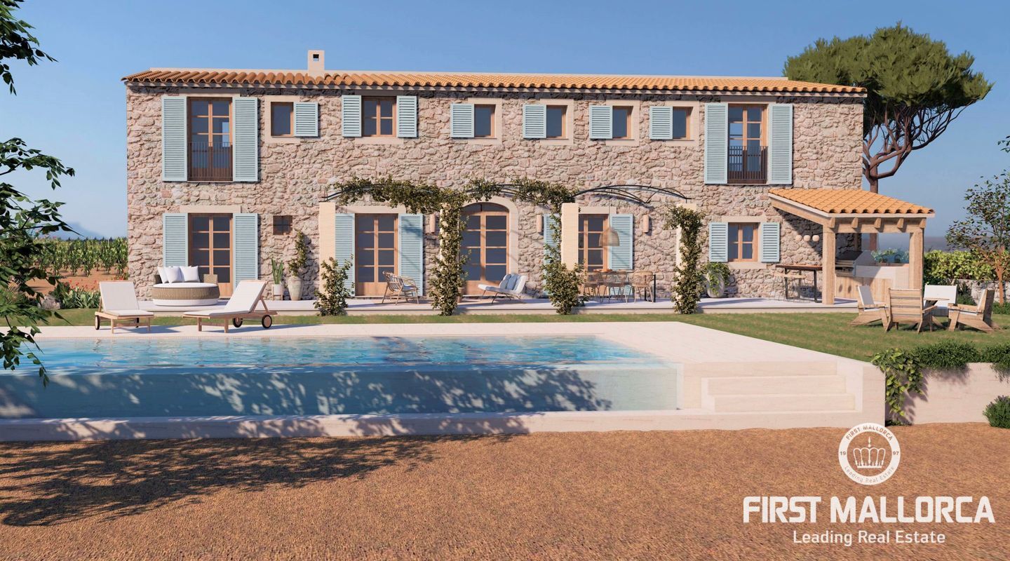 Currently, there is a casita and own vines on the property. The present project allows the extension to a dreamlike finca over two floors with pool. Hereby a constructed area of approx. 296 sqm with four bedrooms, four bathrooms, a generous living/dining area, a kitchen with space for a cooking island as well as an own bodega can be created. The floor plan of the current project can of course be adapted to your own ideas before it is submitted to the town hall for approval.