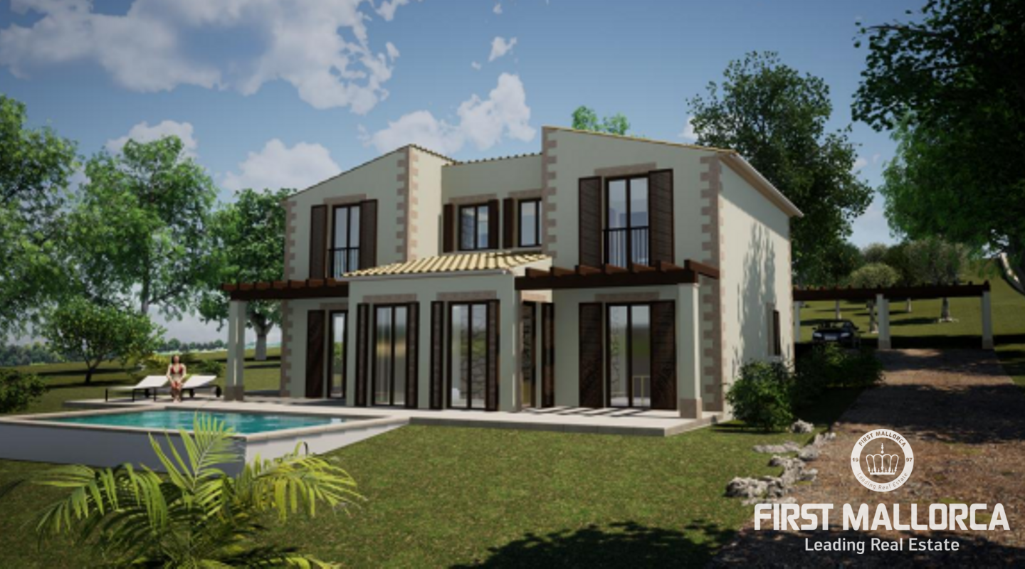 Plot of 14.000 m² within walking distance of the village of Muro with stunning views of the Tramuntana mountains and the bay of Alcudia, with a villa project of 338 m2 and license in force. The house will be built on three floors with underfloor heating, ventilation and air conditioning and will be distributed over three floors. On the first floor there will be a living room with fireplace, an open kitchen, a guest room, a bathroom with shower, toilet and whirlpool bath and an office with dry stone wall and access to the terrace of 110 m² with swimming pool of 32 m². The upper floor will have 3 bedrooms and a larger bedroom with dressing room, a shower room and a separate toilet. In the basement there will be a gym with sauna, a cinema room, several storage rooms and other technical rooms. The villa is planned to be completely self-sufficient.