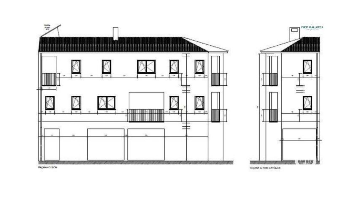 Urban plot in Pollença with approved basic project to build a three storey detached house with garage on the ground floor, living room and kitchen on the first floor, and three bedrooms plus two bathrooms on the second floor. From the living-dining room and the main bedroom there are views of the Tramuntana mountains and the Sant Jordi stream. Currently on the plot there is a one-storey storage room with an approved permission to demolish. Do not hesitate to contact our FIRST MALLORCA team for further information and an appointment to view the property.