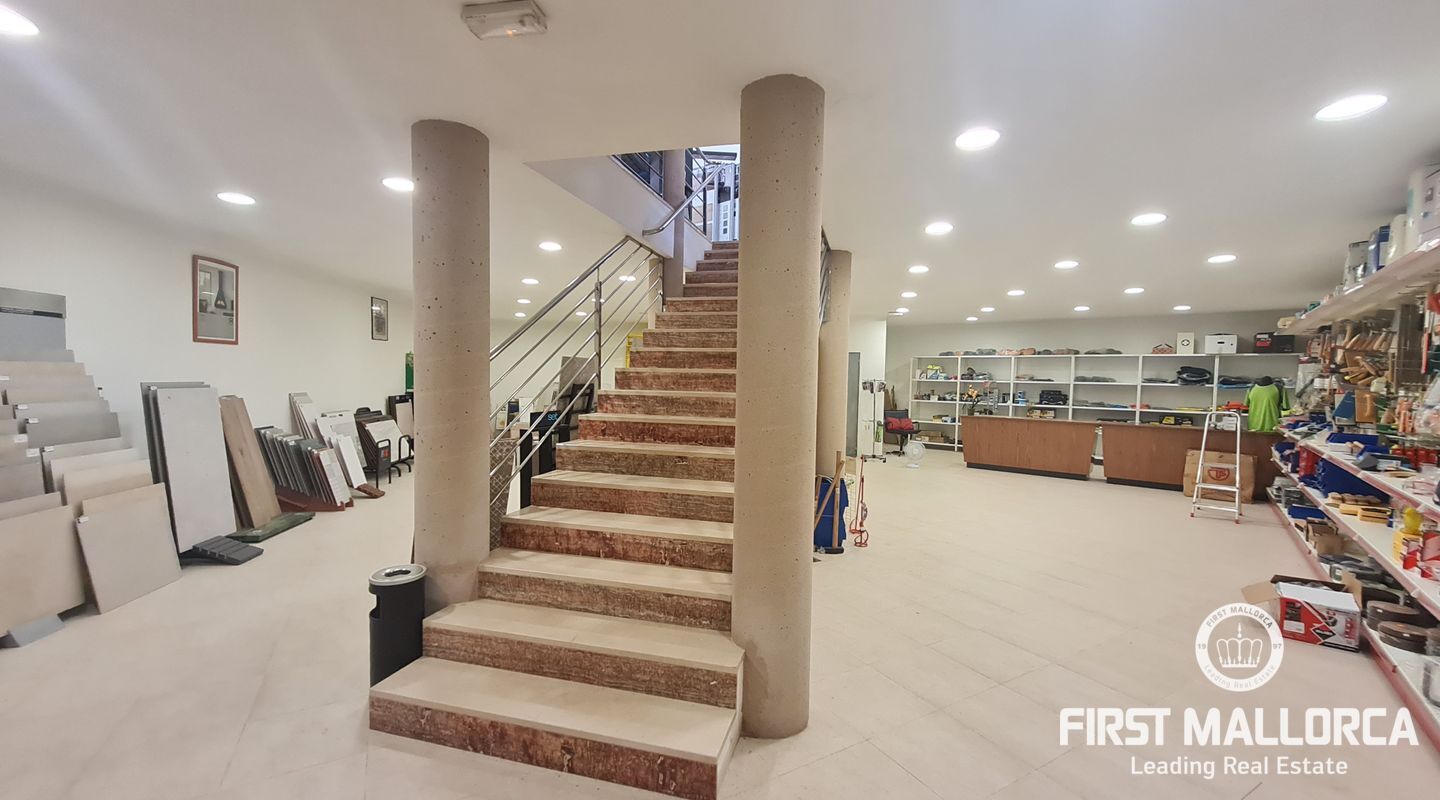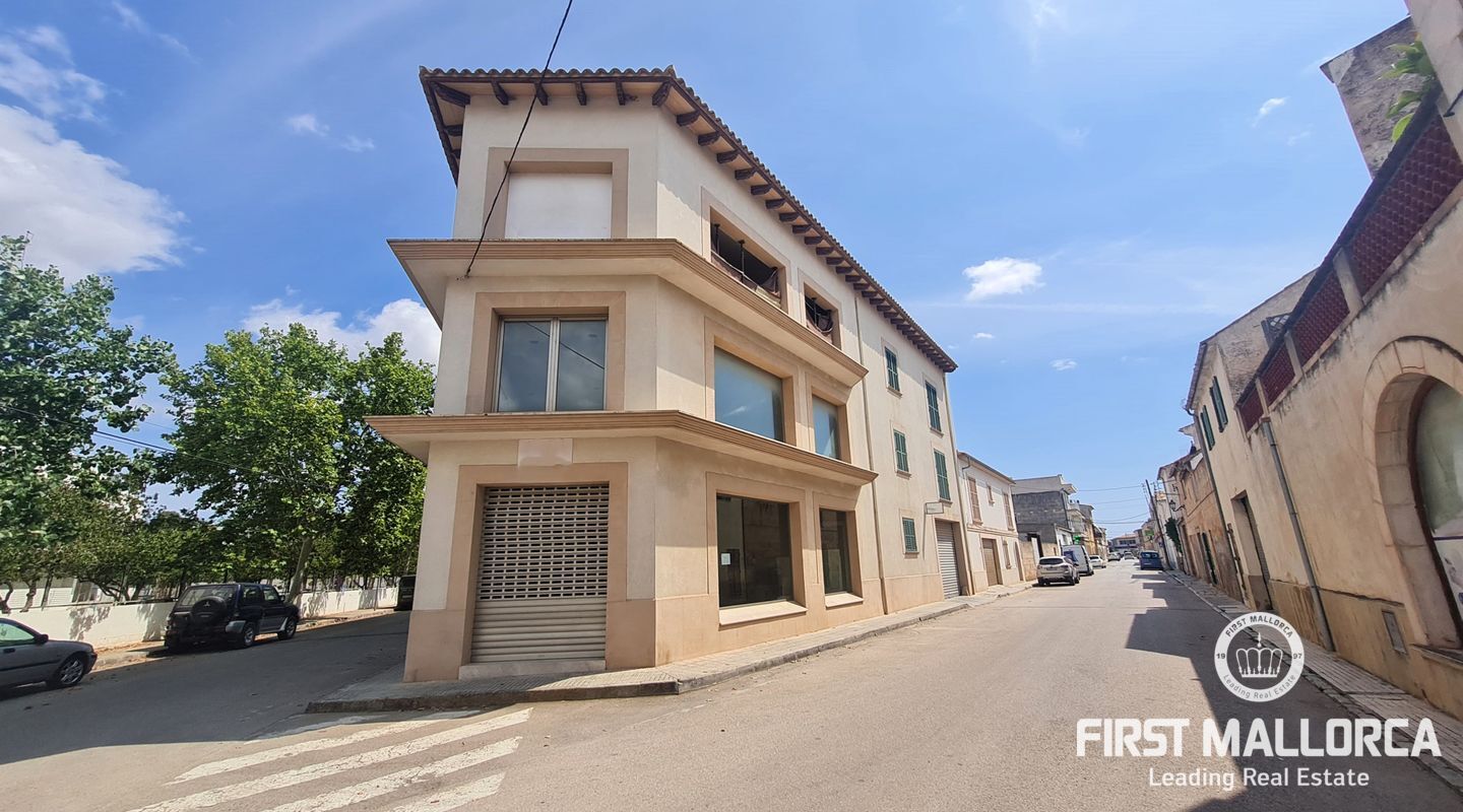 Exclusive commercial property located in the heart of Porreres, boasting a prime corner position and a total built area of approximately 1.800 m² distributed over three floors, basement, and a spacious rooftop terrace. Currently operating as a commercial business on the ground and basement levels, it offers extensive storage areas, a large garage entrance, and a freight elevator that can easily be converted into a passenger lift.