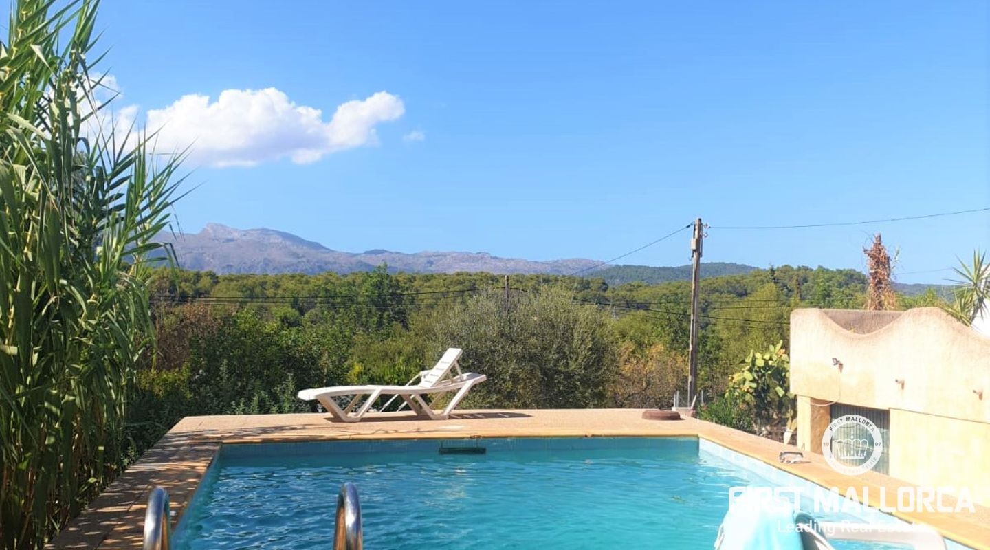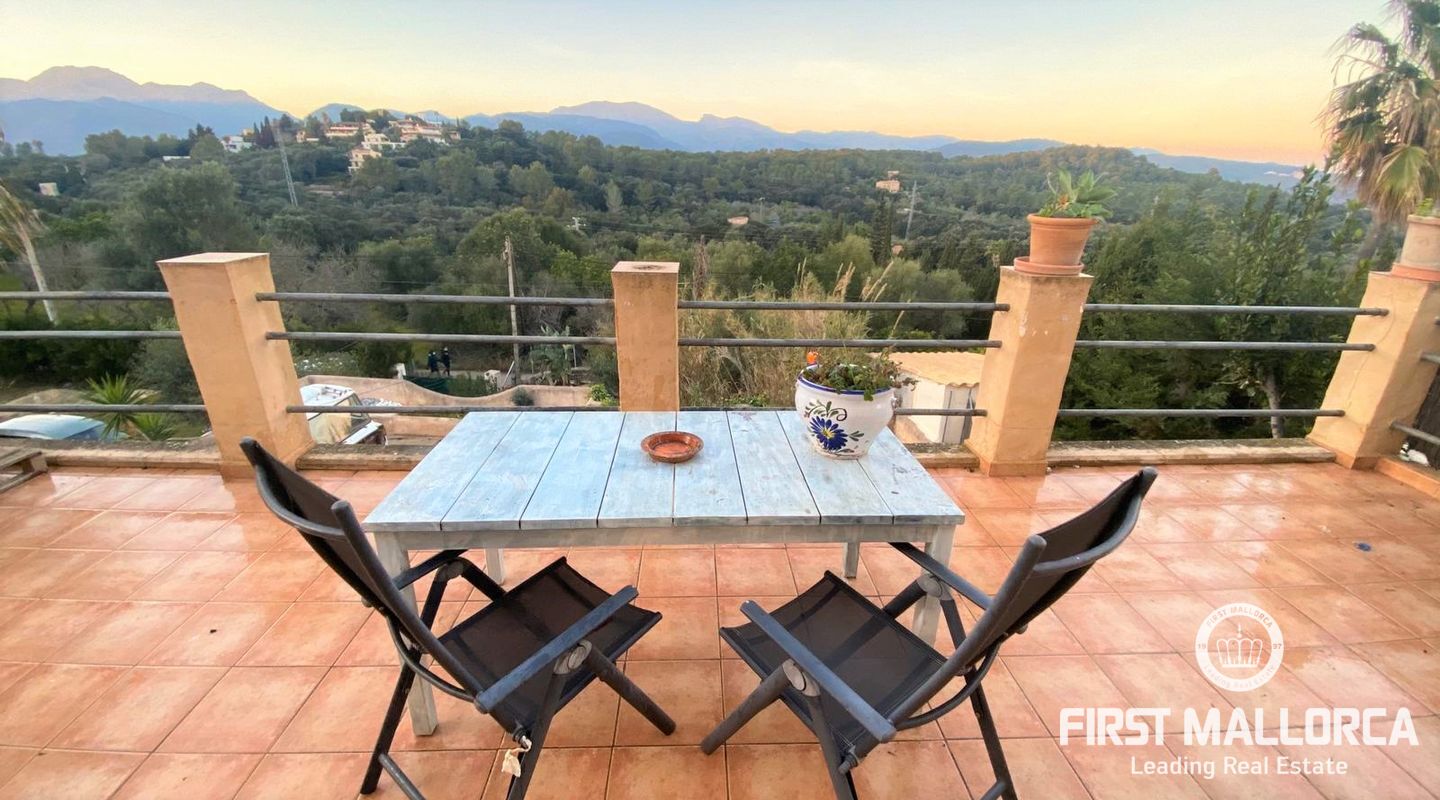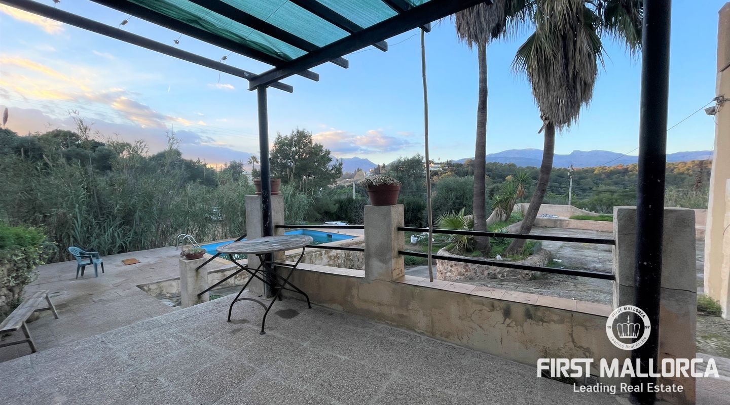 This rural finca of 180m2 is located on the outskirts of the village of Búger and offers beautiful views of the surrounding countryside. The plot of 3800m2 offers plenty of outdoor space, and has a very nice swimming pool, a garage and a storage room. The house itself is divided into 2 floors and consists of a total of 4 bedrooms and 2 bathrooms. On the ground floor there is a spacious and pleasant living room, an open kitchen and 2 bedrooms with a bathroom. On the first floor there are 2 more bedrooms, a bathroom, living room and kitchen with access to a beautiful terrace with stunning views of the Tramontana mountains. There is the possibility to make 2 separate flats or a large family house out of it. The water supply comes from a well, the electricity comes from the village and there is also an internet connection. Do not hesitate to contact FIRST MALLORCA for further information or to arrange a viewing appointment. Our team is always at your disposal.
