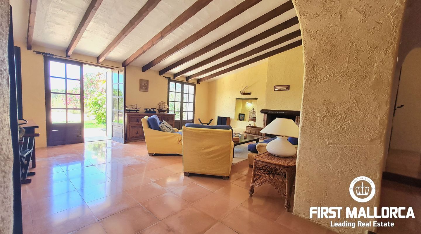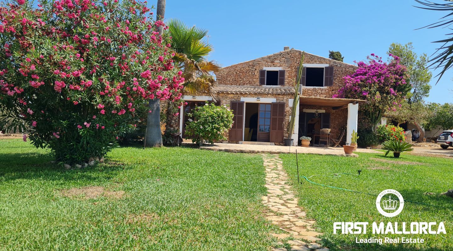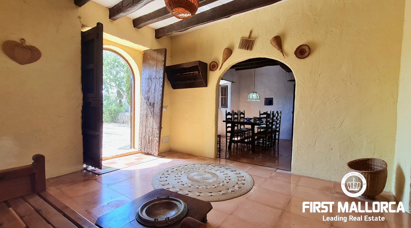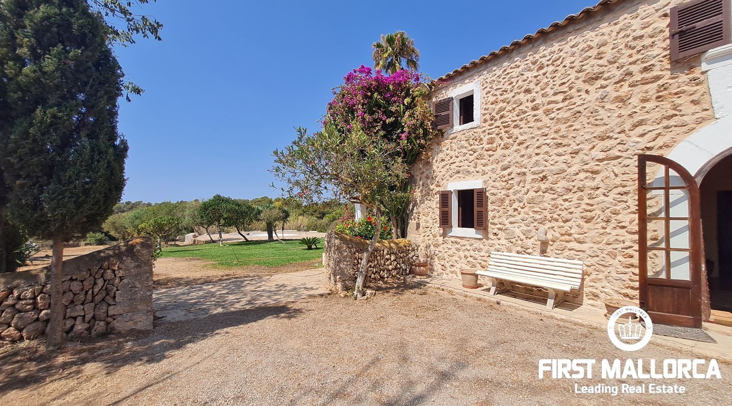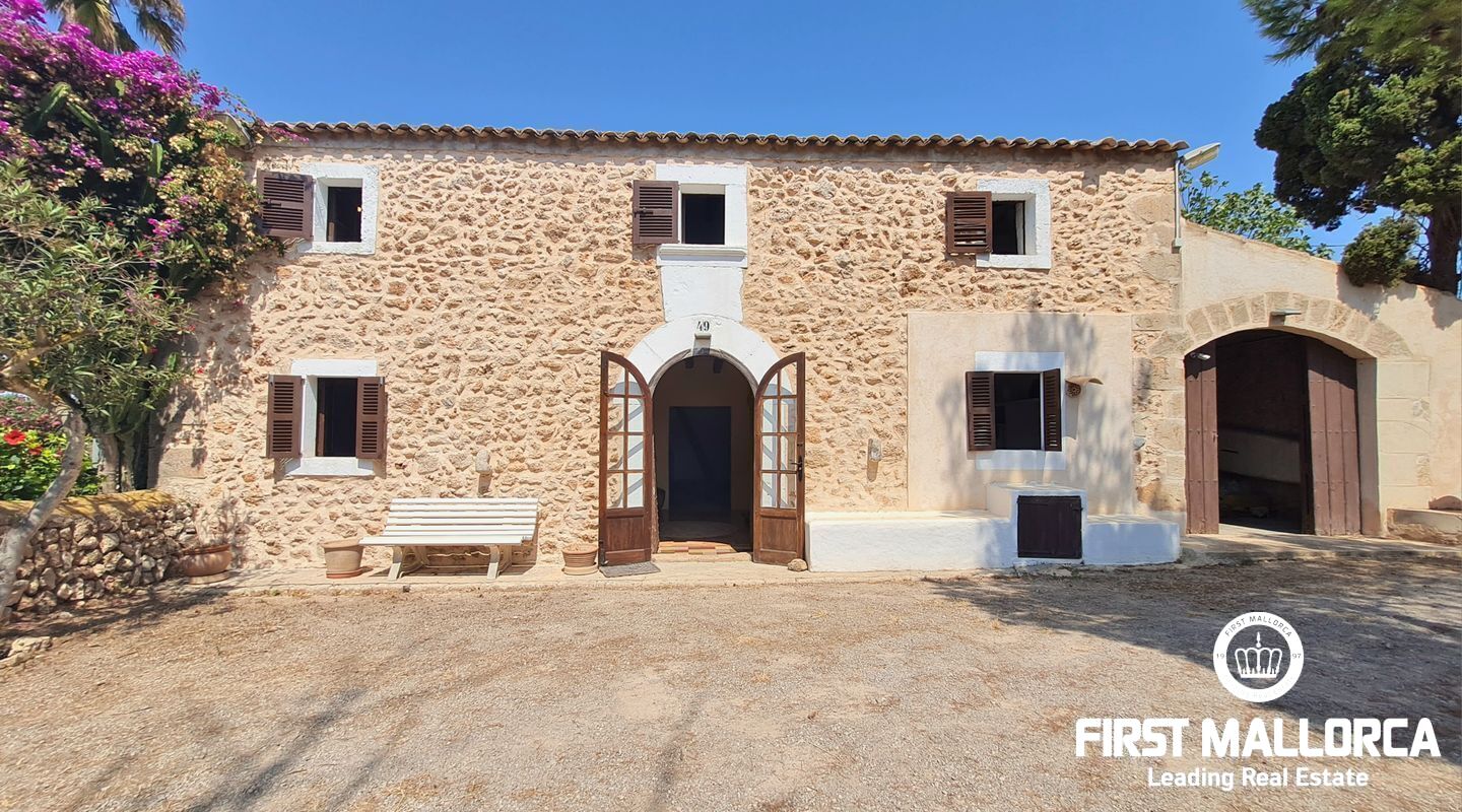 Its unbeatable location in the coastal area of the southeast of Mallorca, between the charming villages of Alquería Blanca and Puerto Colom, places it close to beautiful coves such as Cala Egos, Cala Serena and Cala Ferrera. In addition, the proximity to the prestigious golf course Vall d'Or makes it the ideal house to enjoy both the golf course and its surroundings. Main stone house made up of two buildings. It has 345 m2 of constructed area distributed over 2 floors. The main façade, with ochre and white tones in the windows, gives it a unique character. The use of wood in the exposed beams and in all the carpentry, as well as the clay on the floor, reinforce the rustic style. The entrance door, made of original wood and with a rounded shape, highlights the typical style of Mallorcan houses.