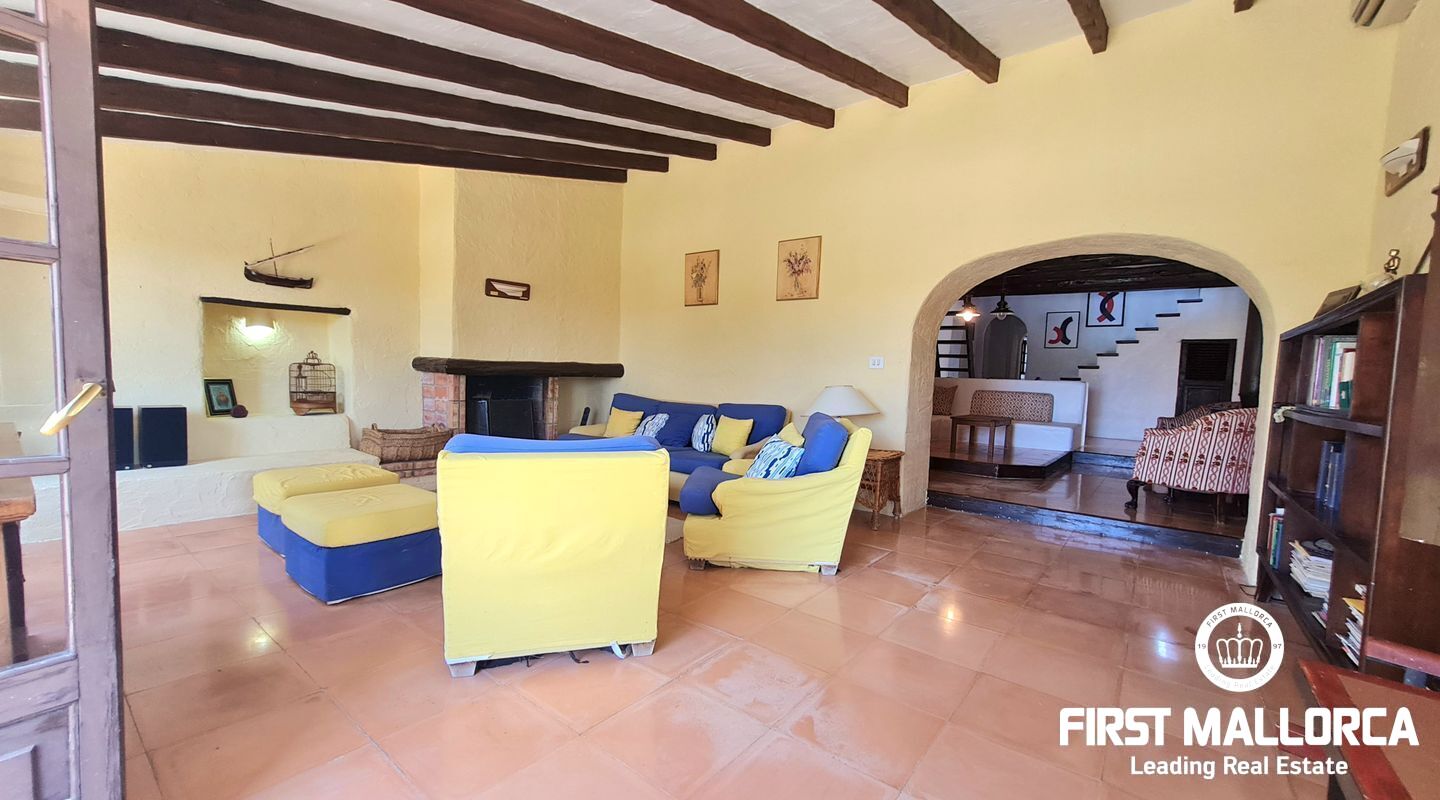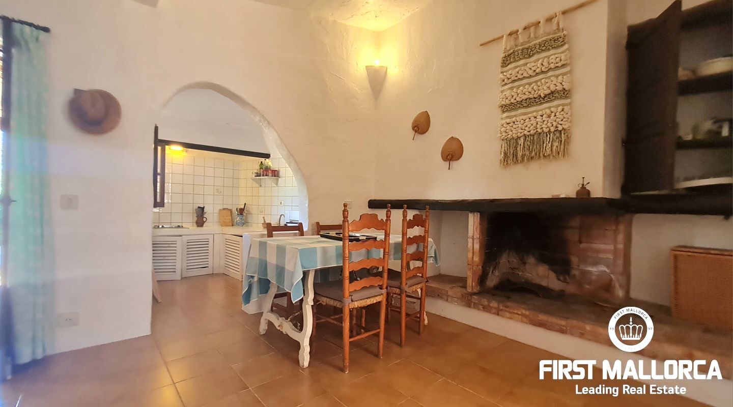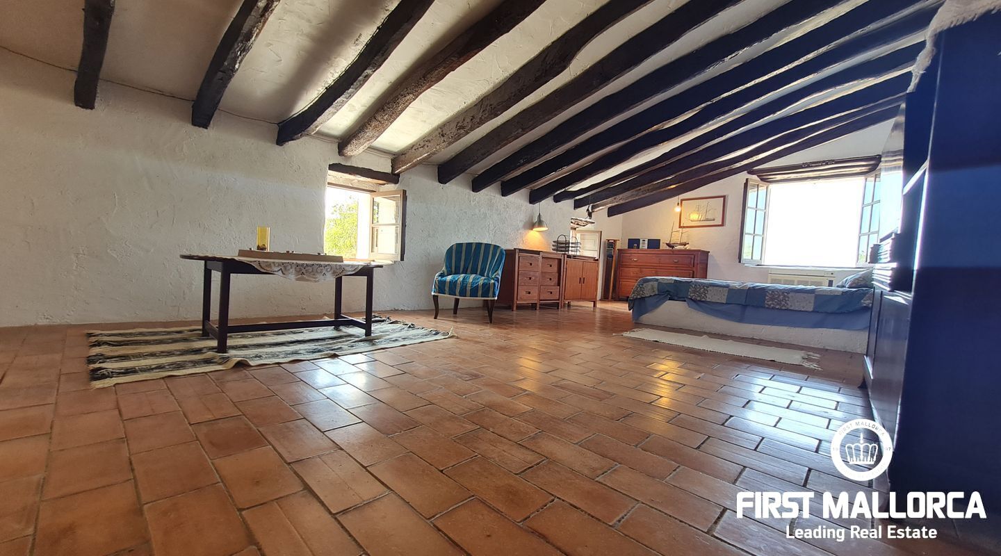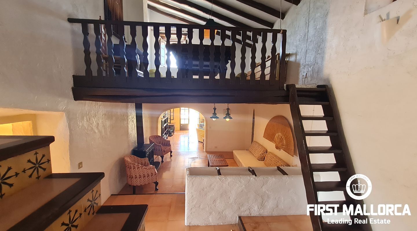 Its unbeatable location in the coastal area of the southeast of Mallorca, between the charming villages of Alquería Blanca and Puerto Colom, places it close to beautiful coves such as Cala Egos, Cala Serena and Cala Ferrera. In addition, the proximity to the prestigious golf course Vall d'Or makes it the ideal house to enjoy both the golf course and its surroundings. Main stone house made up of two buildings. It has 345 m2 of constructed area distributed over 2 floors. The main façade, with ochre and white tones in the windows, gives it a unique character. The use of wood in the exposed beams and in all the carpentry, as well as the clay on the floor, reinforce the rustic style. The entrance door, made of original wood and with a rounded shape, highlights the typical style of Mallorcan houses.