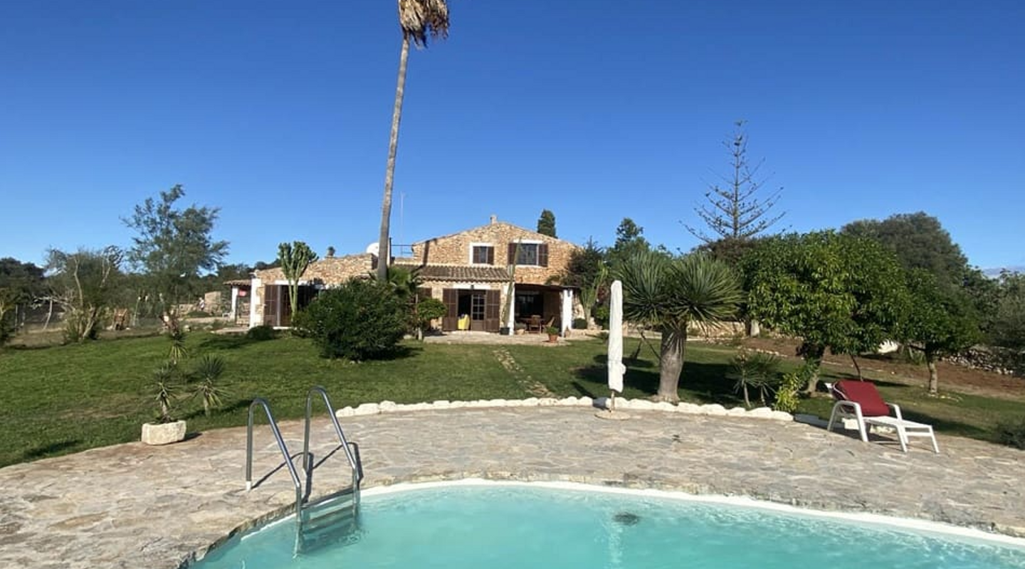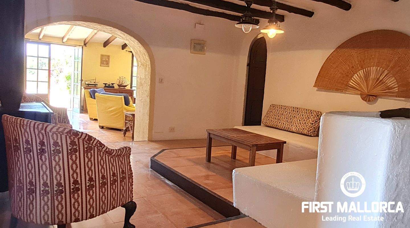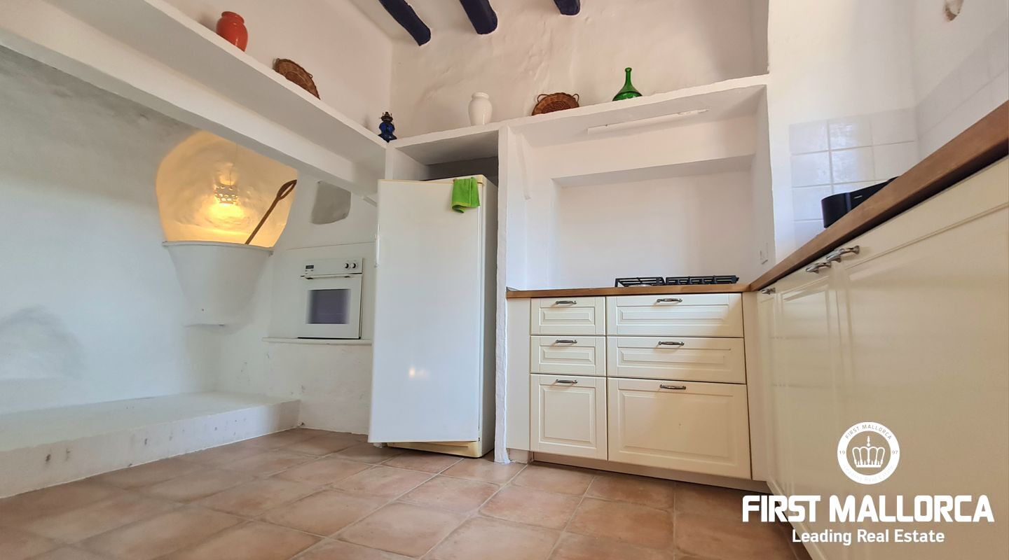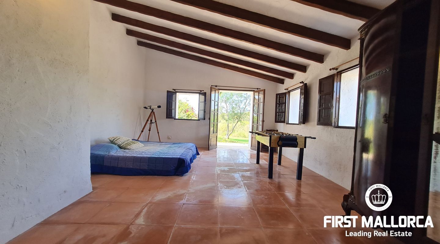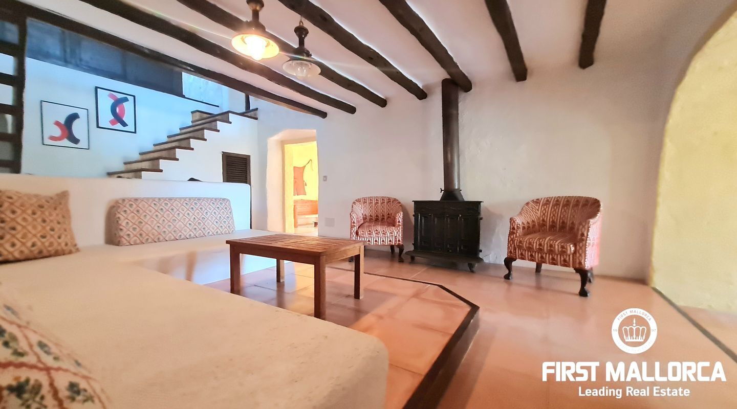 Its unbeatable location in the coastal area of the southeast of Mallorca, between the charming villages of Alquería Blanca and Puerto Colom, places it close to beautiful coves such as Cala Egos, Cala Serena and Cala Ferrera. In addition, the proximity to the prestigious golf course Vall d'Or makes it the ideal house to enjoy both the golf course and its surroundings. Main stone house made up of two buildings. It has 345 m2 of constructed area distributed over 2 floors. The main façade, with ochre and white tones in the windows, gives it a unique character. The use of wood in the exposed beams and in all the carpentry, as well as the clay on the floor, reinforce the rustic style. The entrance door, made of original wood and with a rounded shape, highlights the typical style of Mallorcan houses.