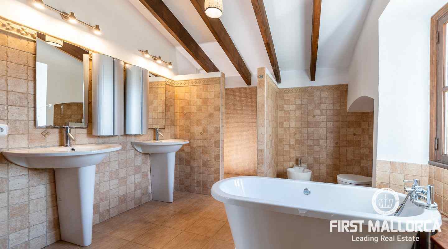 This charming finca is sitting on a large and private garden plot in the sought-after village of Establiments, less than 15 minutes from the centre of Palma de Mallorca. The property, built in the 1880's, has been carefully restored respecting many original elements such as the beautiful stone floors and the exposed wooden beams. Today it can be a perfect home either for a big family or clients looking for space for entertaining. The property offers a spacious living room, a separate TV room, a study, a spacious, fully equipped kitchen with Gaggenau applicances and a spacious eating area and direct access out to the terrace and swimming pool. On the ground level there is also an self contained guest/staff area with a combined living room/kitchen, a bedroom and a bathroom. On the first floor there are 4 bedrooms and 4 bathrooms whereof the master bedroom has its own terrace. Additionally there is an independent guest house with 2 bedrooms sharing a bathroom. There are various terraces, open and covered, a barbeque area, a work shop, two fire pits, an own well and parking for several cars. This extraordinary property is ideal for those looking for living in a rural environment but with all services of a village as well as having easy access to a cosmopolitan city and a gateway internastional aiport. Don't hesitate to contact us already today for a viewing of this gem.