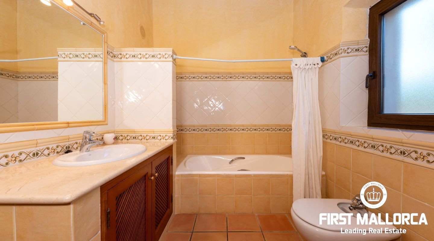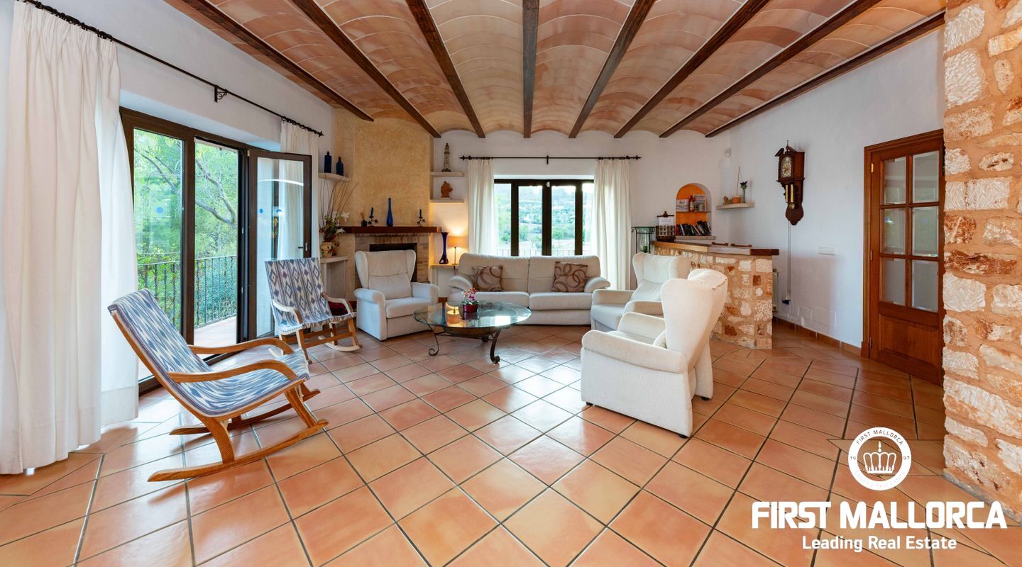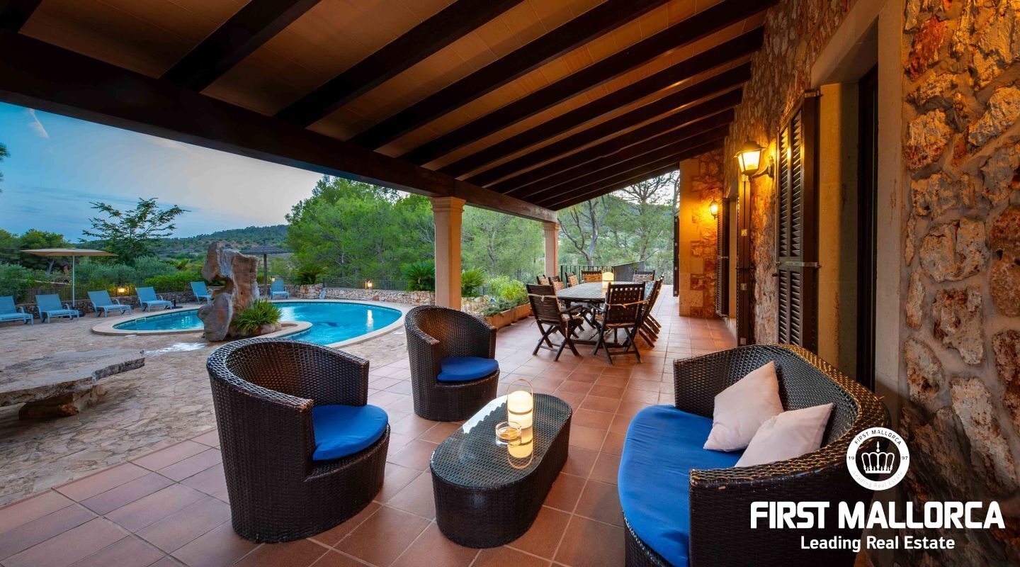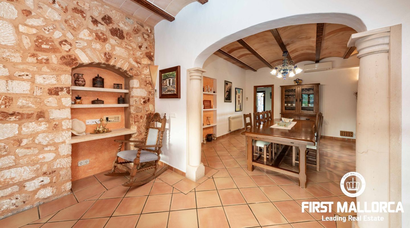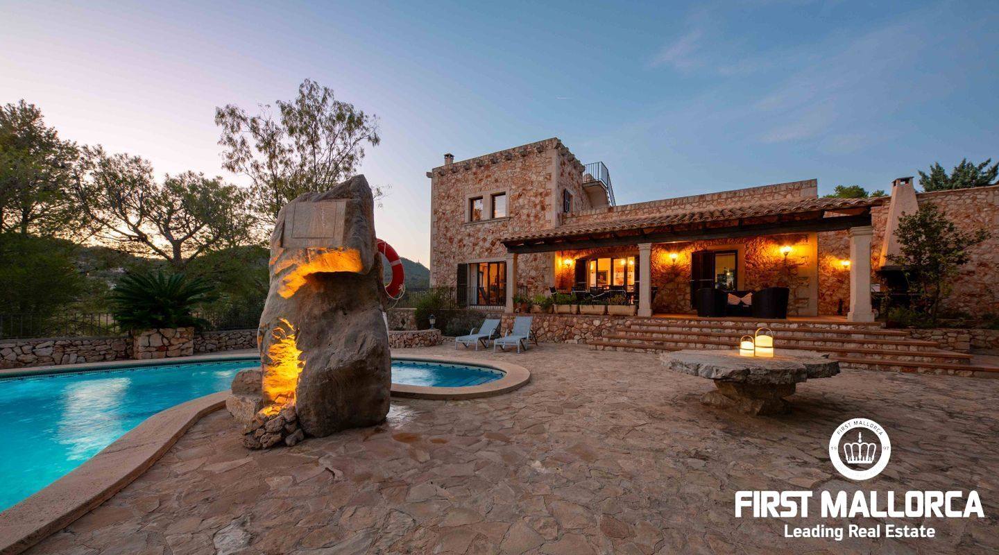 Located between the towns of Es Carritxó and Portocolom, in the valley that separates the two towns, we find this fabulous Mallorcan style house with winks to a fortress with tower.