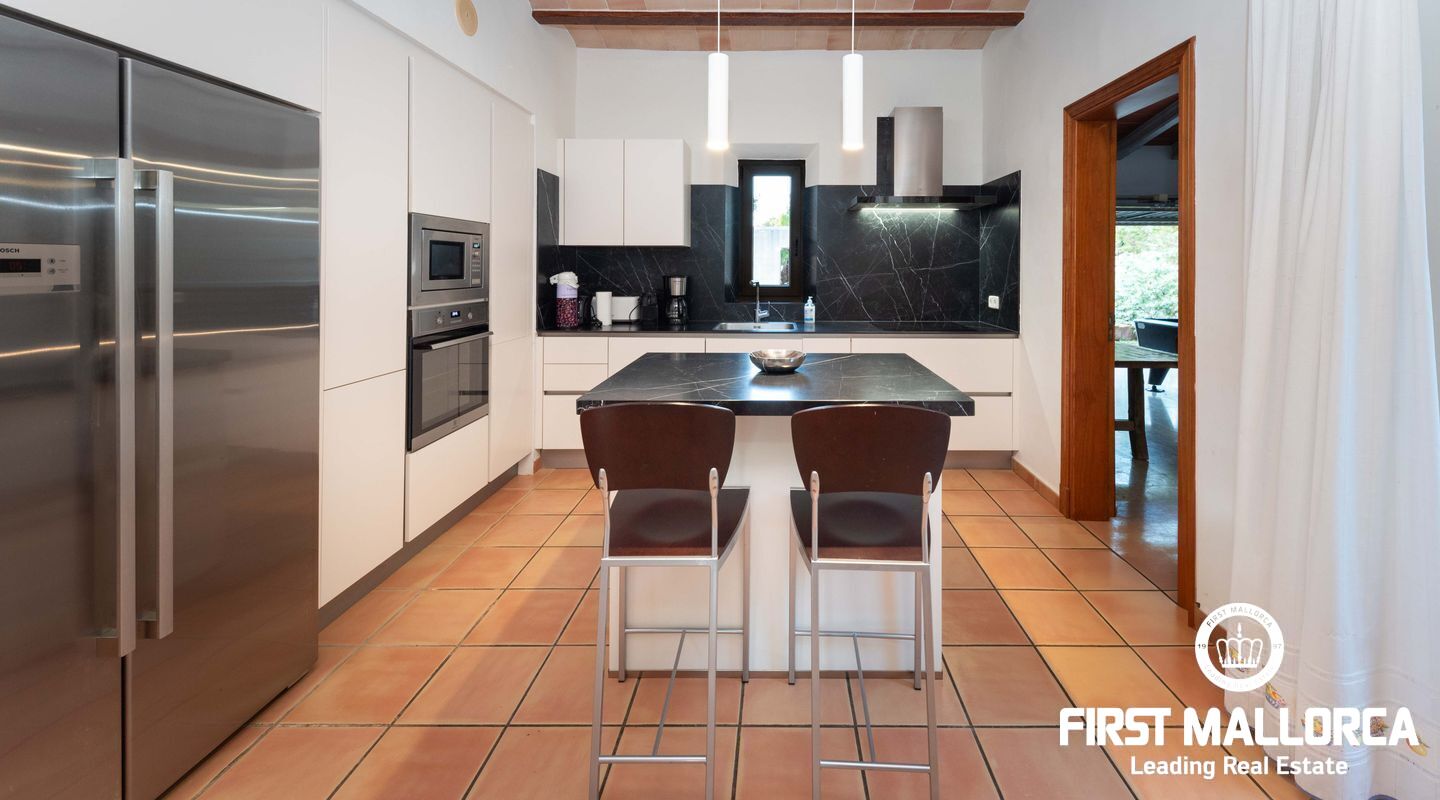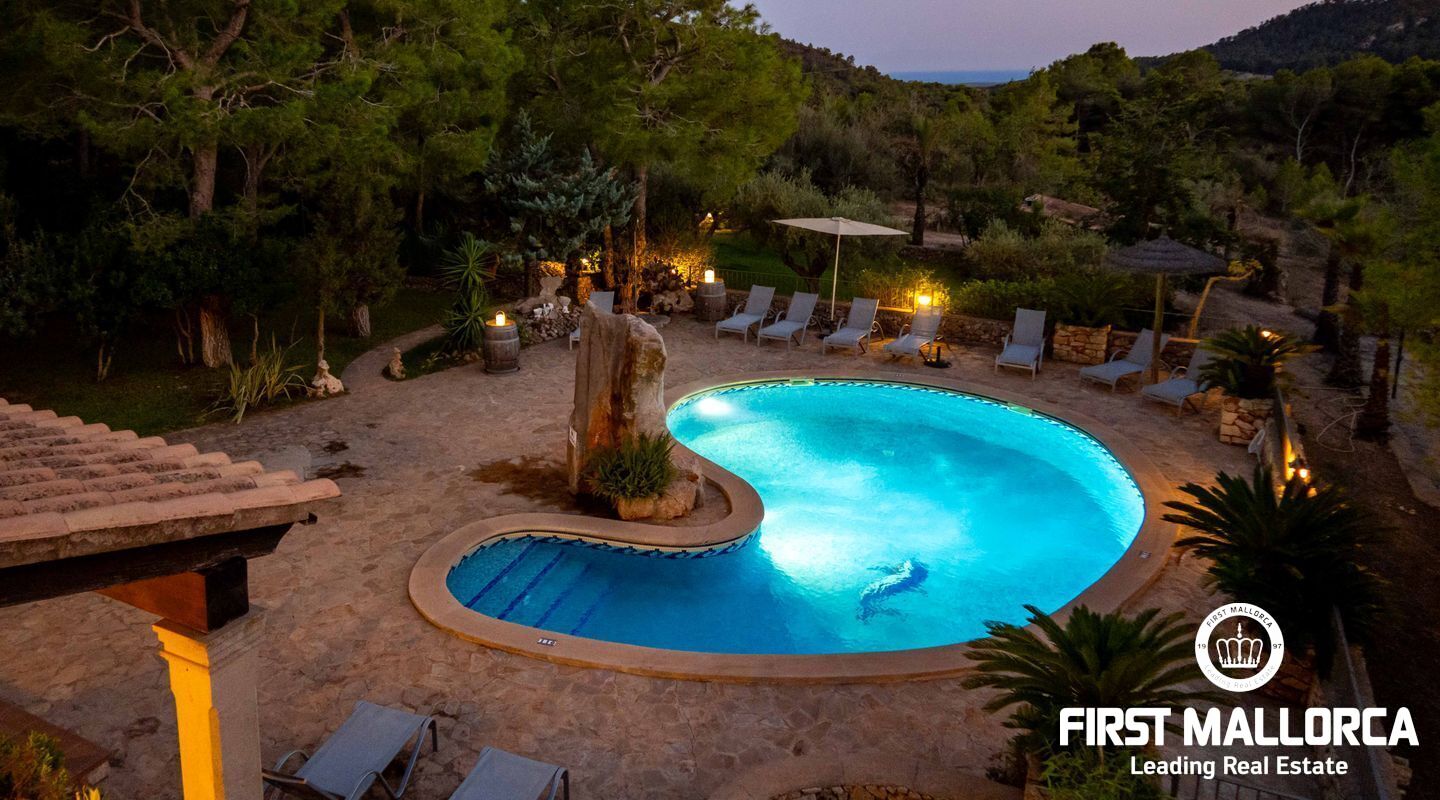 The house has 5 double bedrooms, four of them on the ground floor and a suite in the tower with spectacular views of the valley and partial views of the coast. It has 4 bathrooms, two of them en suite. The kitchen has been completely renovated and we find a large living room with access to the front terrace and porch. In this area of the plot we have a large swimming pool nestled in a well-kept terrace with lawn and pine forest, plus a whole leisure area with jacuzzi, sauna, volleyball court and, of course, a magnificent barbecue area.