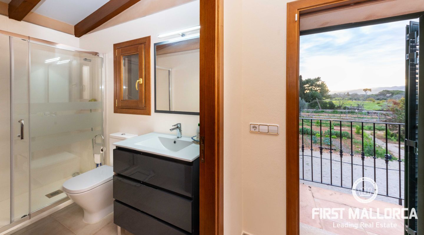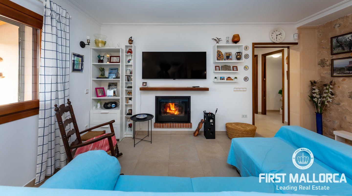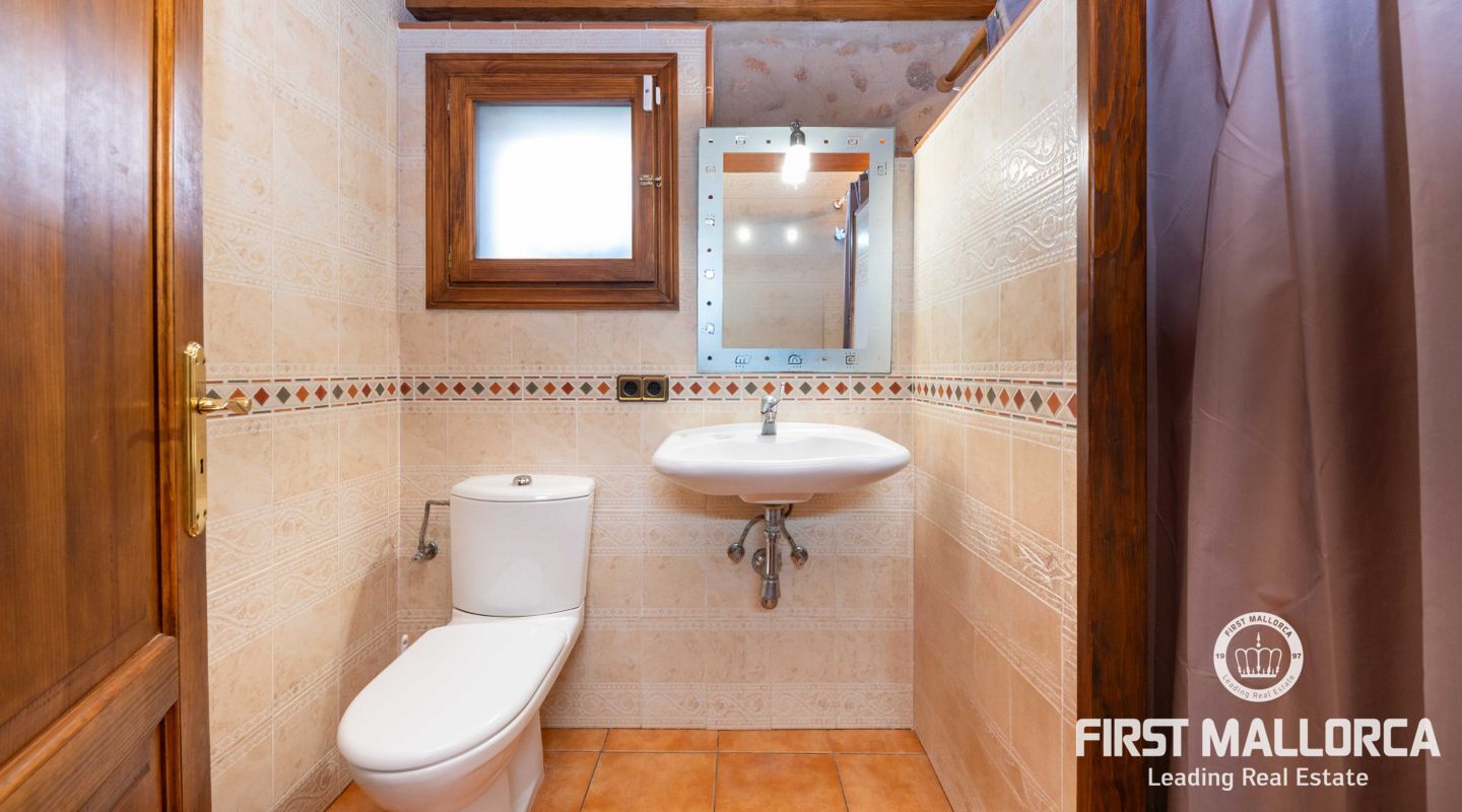 On the ground floor there is a living-dining room with fireplace, integrated kitchen with access to the exterior, 2 double bedrooms and two bathrooms (one adapted for disabled people). Upstairs we find 1 bedroom with bathroom, exterior terrace and views to the Tramontana, a second bedroom with bathroom and a room with access to a large terrace.