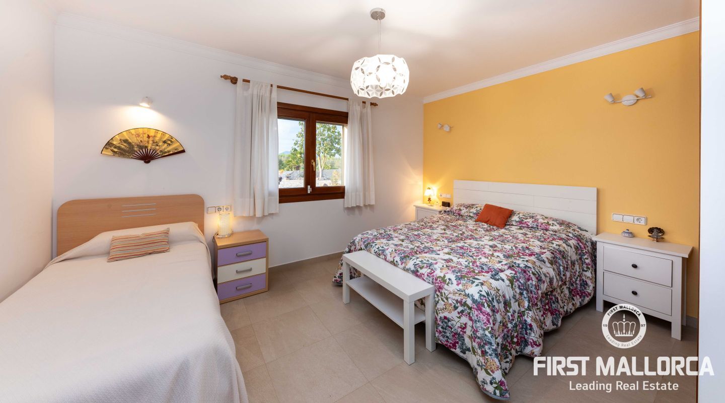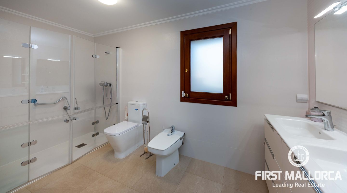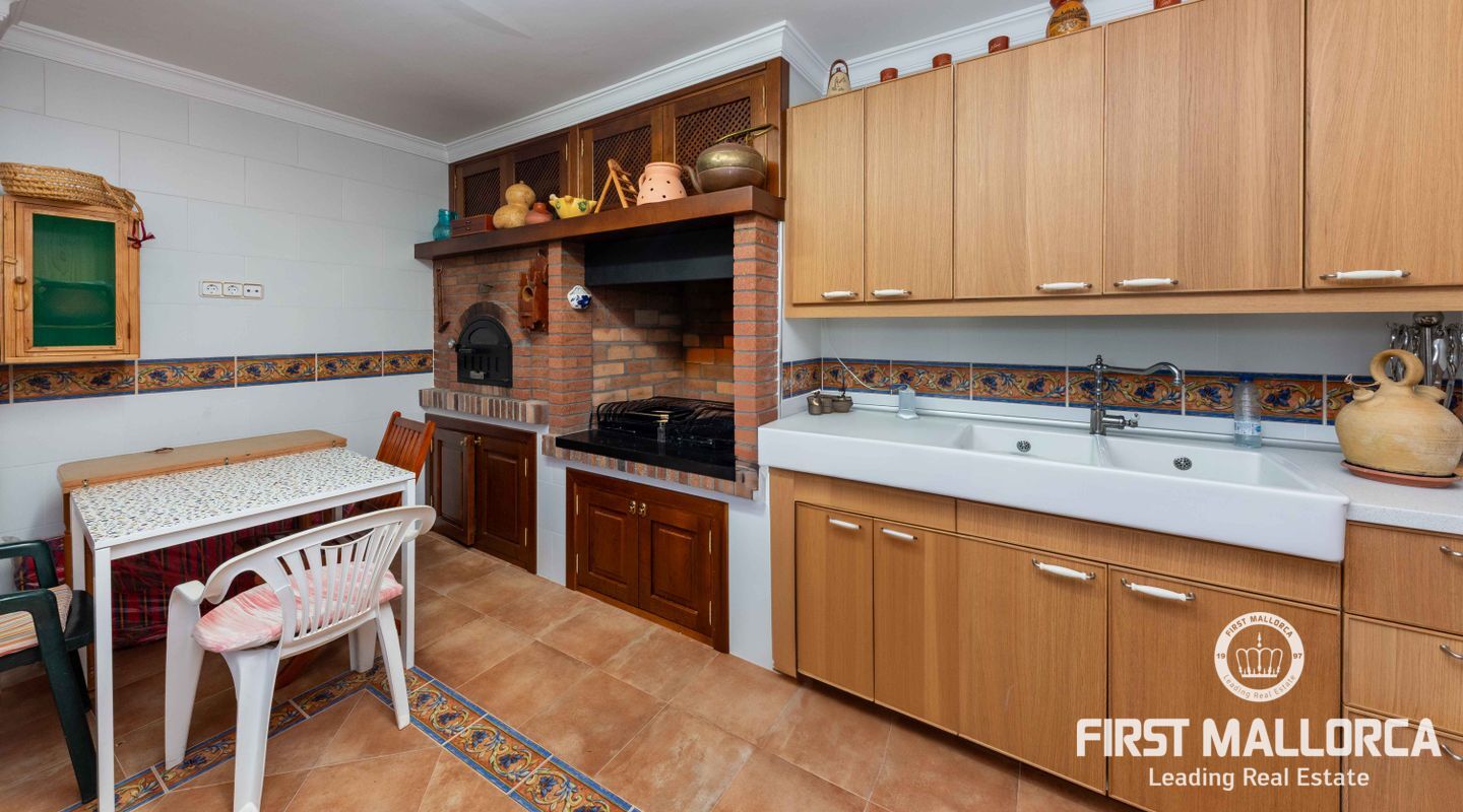 On the ground floor there is a living-dining room with fireplace, integrated kitchen with access to the exterior, 2 double bedrooms and two bathrooms (one adapted for disabled people). Upstairs we find 1 bedroom with bathroom, exterior terrace and views to the Tramontana, a second bedroom with bathroom and a room with access to a large terrace.