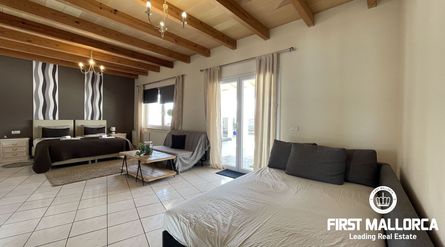 Incredible rustic finca of more than 23.291m2 and 669m2 built in several buildings. The main house has Pb and -1, with 242m2 distributed in 3 bedrooms and 5 bathrooms. On the ground floor there is a large open plan fully equipped kitchen, 3 bedrooms each with en suite bathroom and a guest bathroom, the main bedroom, dining room and living room have large windows that allow us to enjoy the pool of 63m2 and where we can relax with Balinese beds, pool table, several sofas, outdoor dining table for 10 people and a second fully equipped kitchen to enjoy outdoor meetings, this incredible area is surrounded by several windows that allow us to view the garden, from anywhere. On floor -1 there are two spaces that can be used as bedrooms and a bathroom that connects both of them.