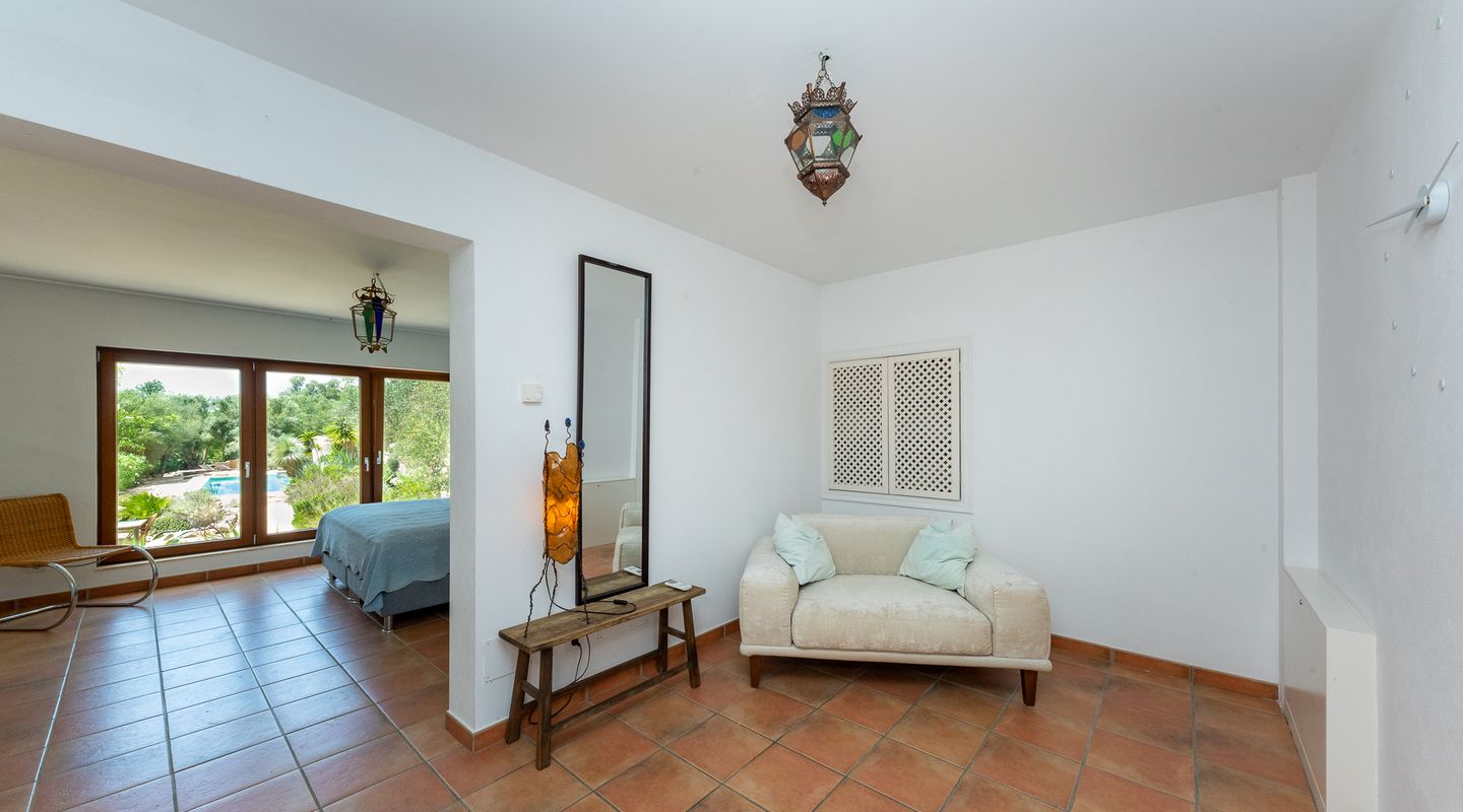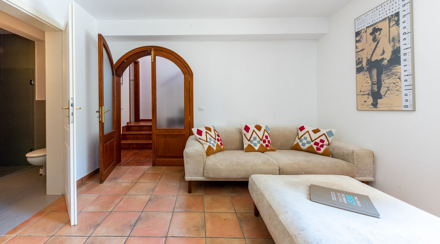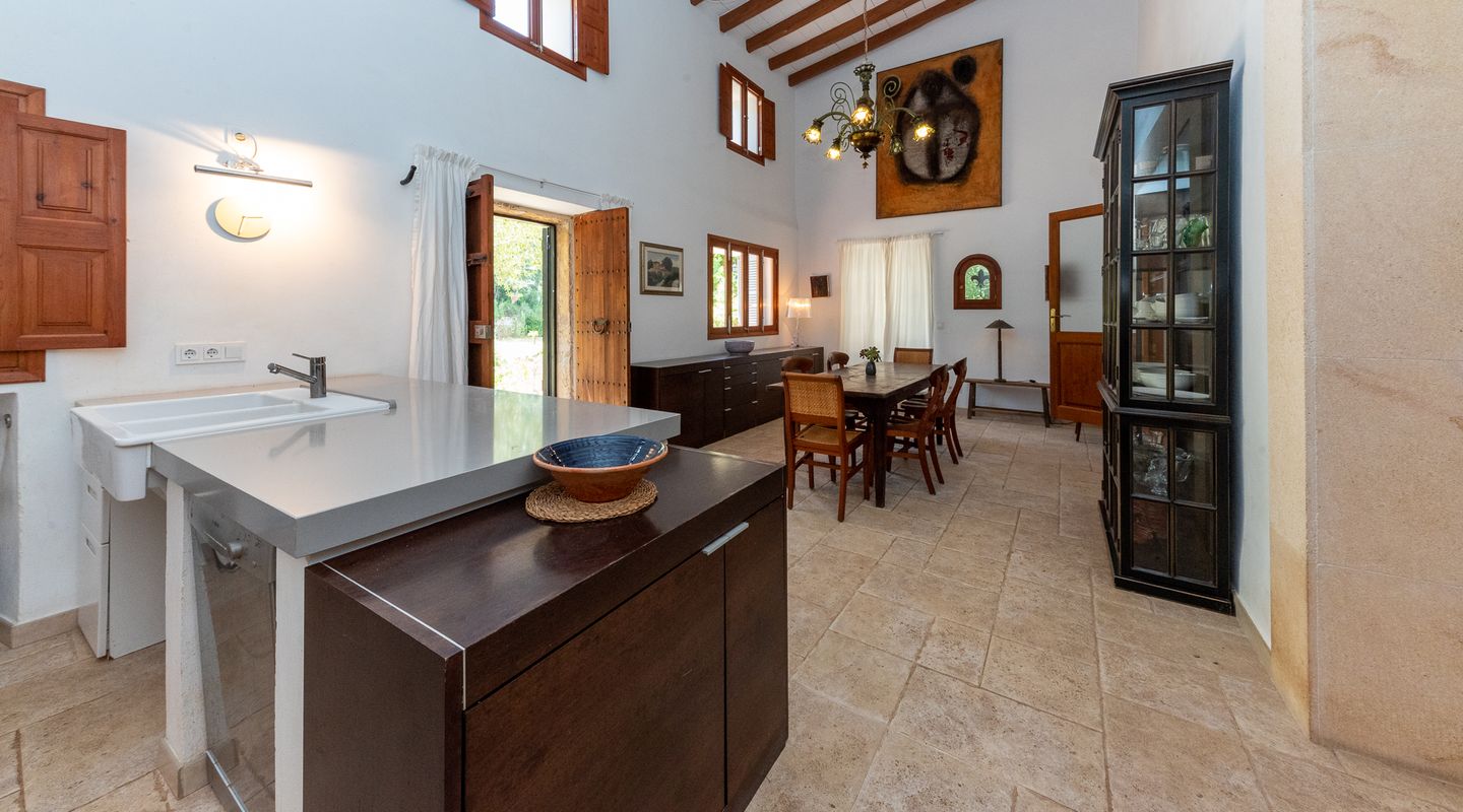 This charming finca is located just a few minutes from the picturesque village of Montuïri, nestled in a lush green valley surrounded by fruit trees and offering stunning views of the village church. The Palma airport is only about 20 minutes away, making this peaceful retreat easily accessible.