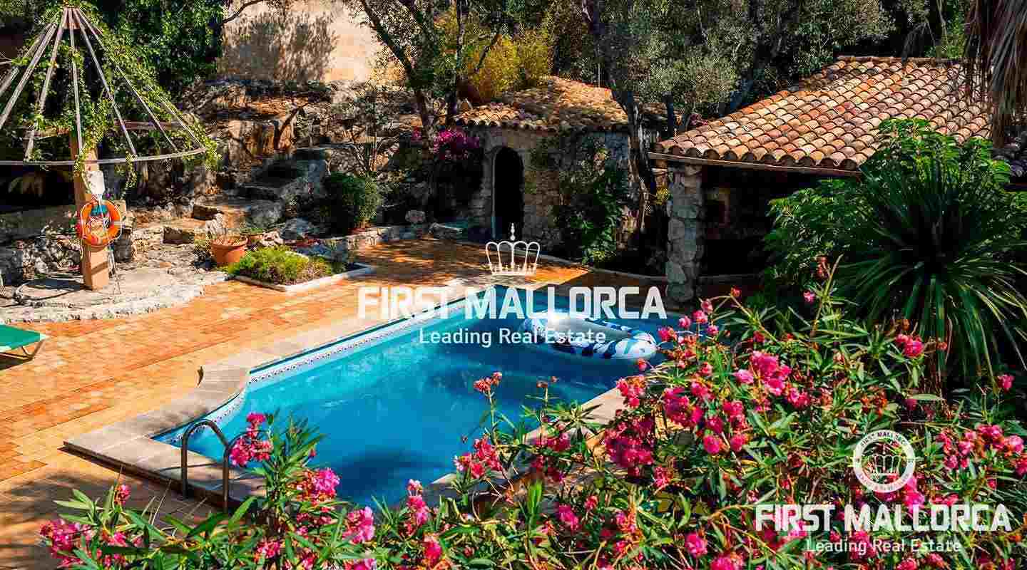 The one bedroom, one bathroom guest apartment has a private pool and a garden and therefore enjoys a lot of privacy. The other guest or staff house has a living room, a kitchen and a bathroom on the ground floor and a bedroom with bathroom en suite on the upper floor. Additionally, there is a fantastic garden with orange, lemon and fig trees, and enough space for a vegetable garden. There is also the possibility to purchase only the main house for € 1,700,000 (see reference 66336). Do not hesitate to contact the First Mallorca team to arrange a visit!