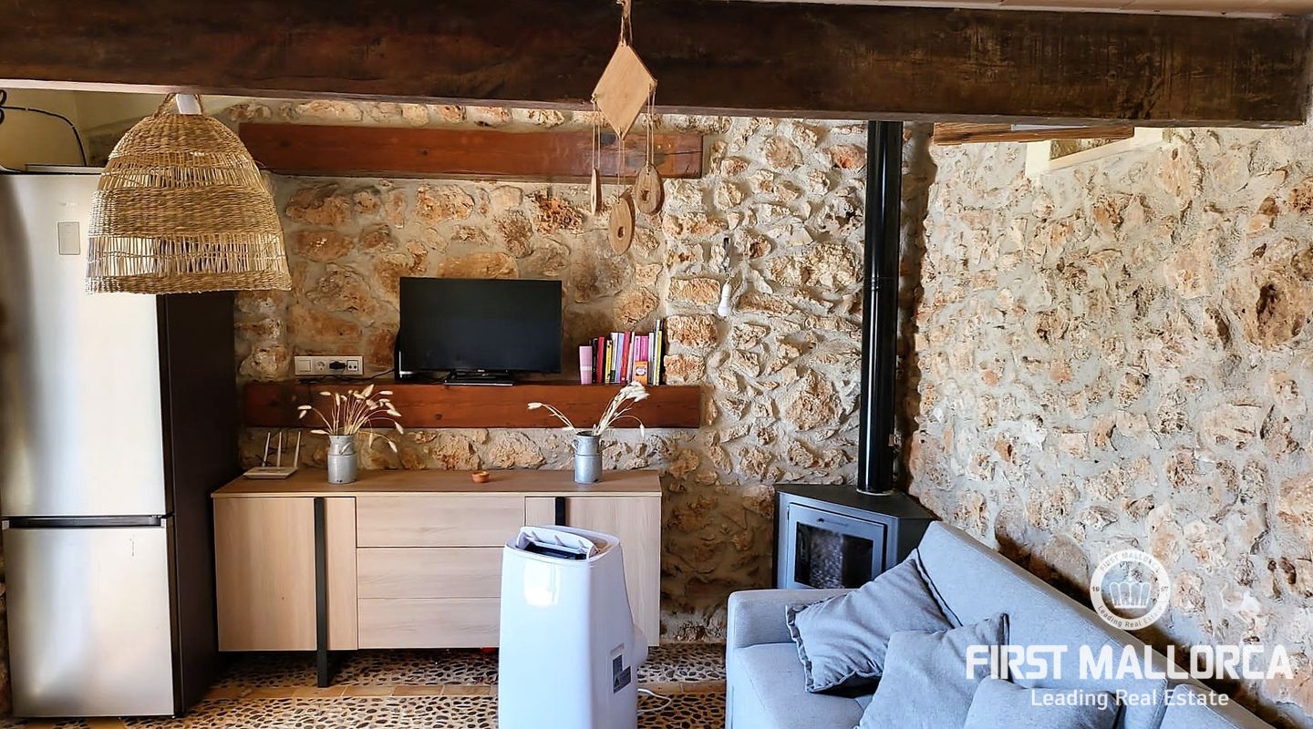 This rural finca on plot of 7.851m2 is a small house of 35m2 which was completely renovated in 2021. The building has no certificate of habitability for being agricultural, but disposes of a final acceptance of construction and is all legal. The finca is made of stone and is surrounded by stunning mountain views. This small rustic farm has everything you need; refrigerator, induction hob, fireplace, hot water heater (butane), 8 solar panels, swimming pool (removable), water cistern with capacity of 10,000lts, led lights, double glazed windows, double bed, bathroom with shower and chill-out area. Do not hesitate to contact our FIRST MALLORCA team for more information and to arrange a viewing appointment.