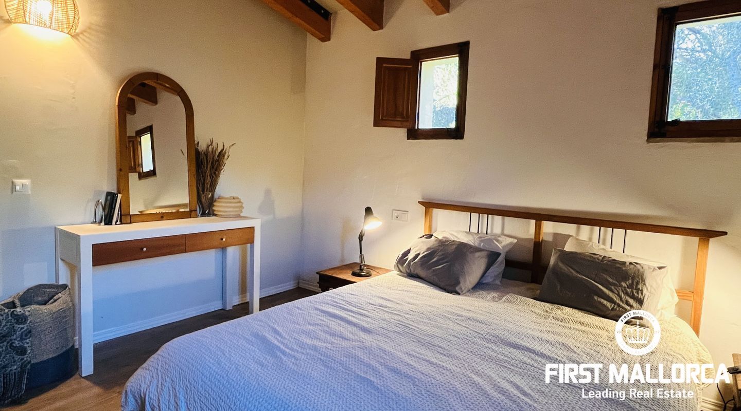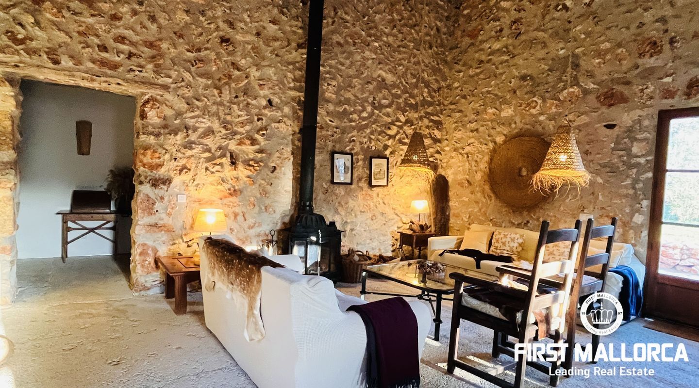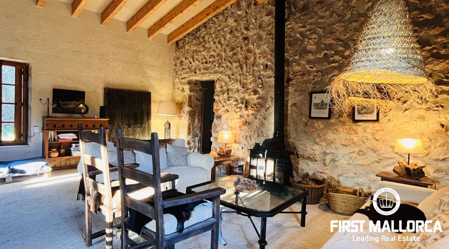 The current construction, measuring 150 m², has been renovated using high-quality natural materials, blending modern design with traditional Mallorcan elements, such as high ceilings with wooden beams and stone walls, which add unique charm.