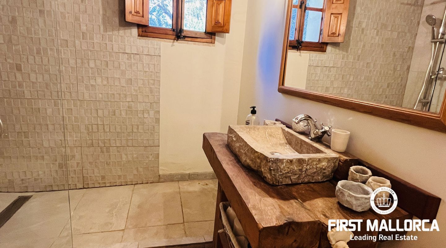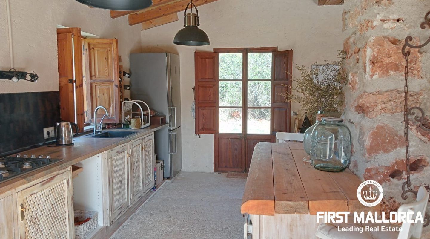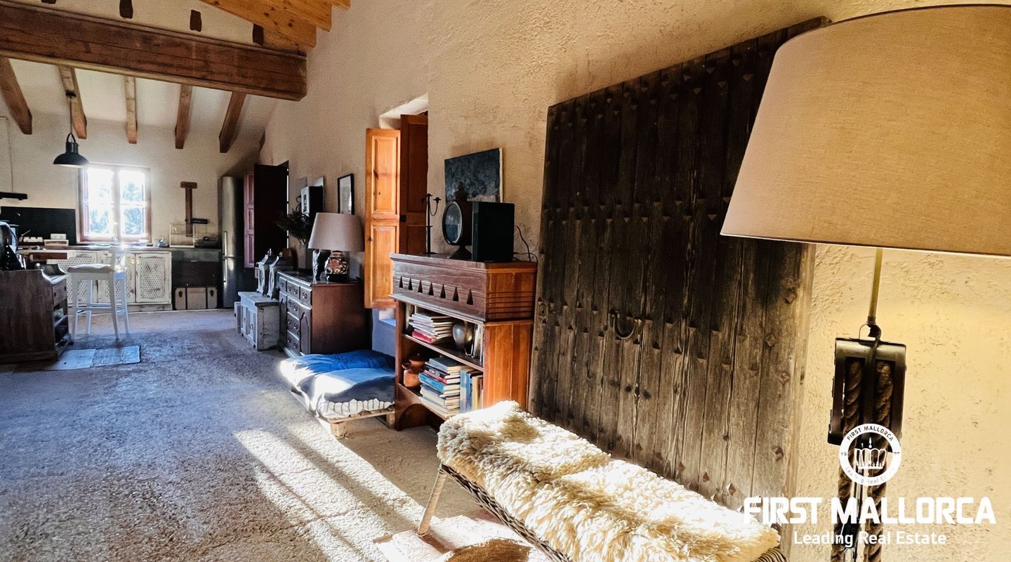 The current construction, measuring 150 m², has been renovated using high-quality natural materials, blending modern design with traditional Mallorcan elements, such as high ceilings with wooden beams and stone walls, which add unique charm.