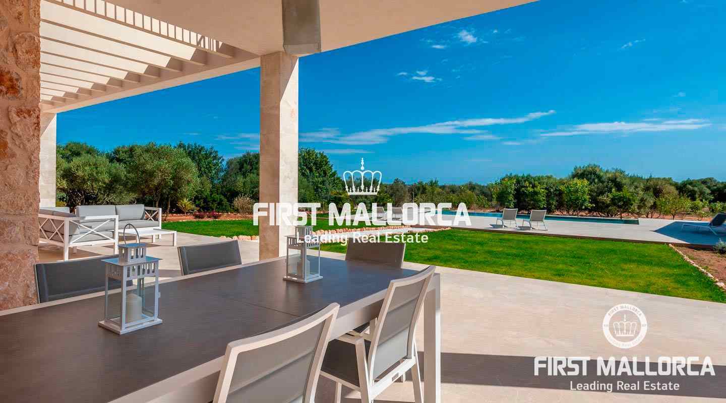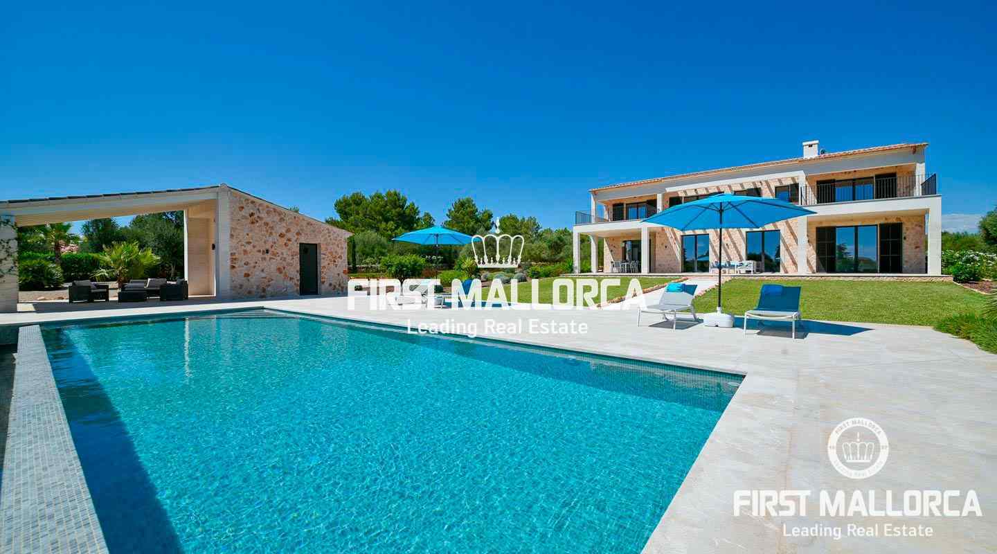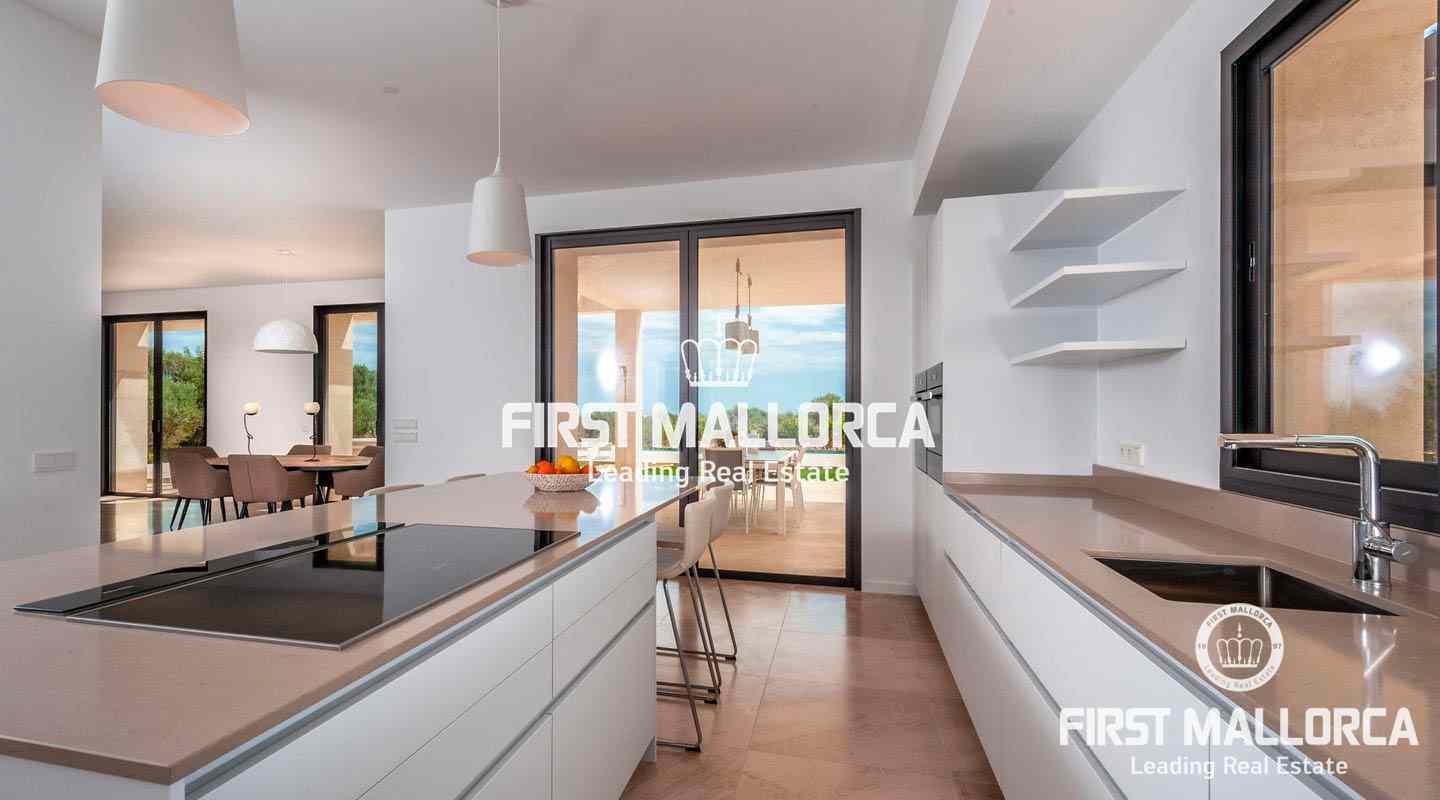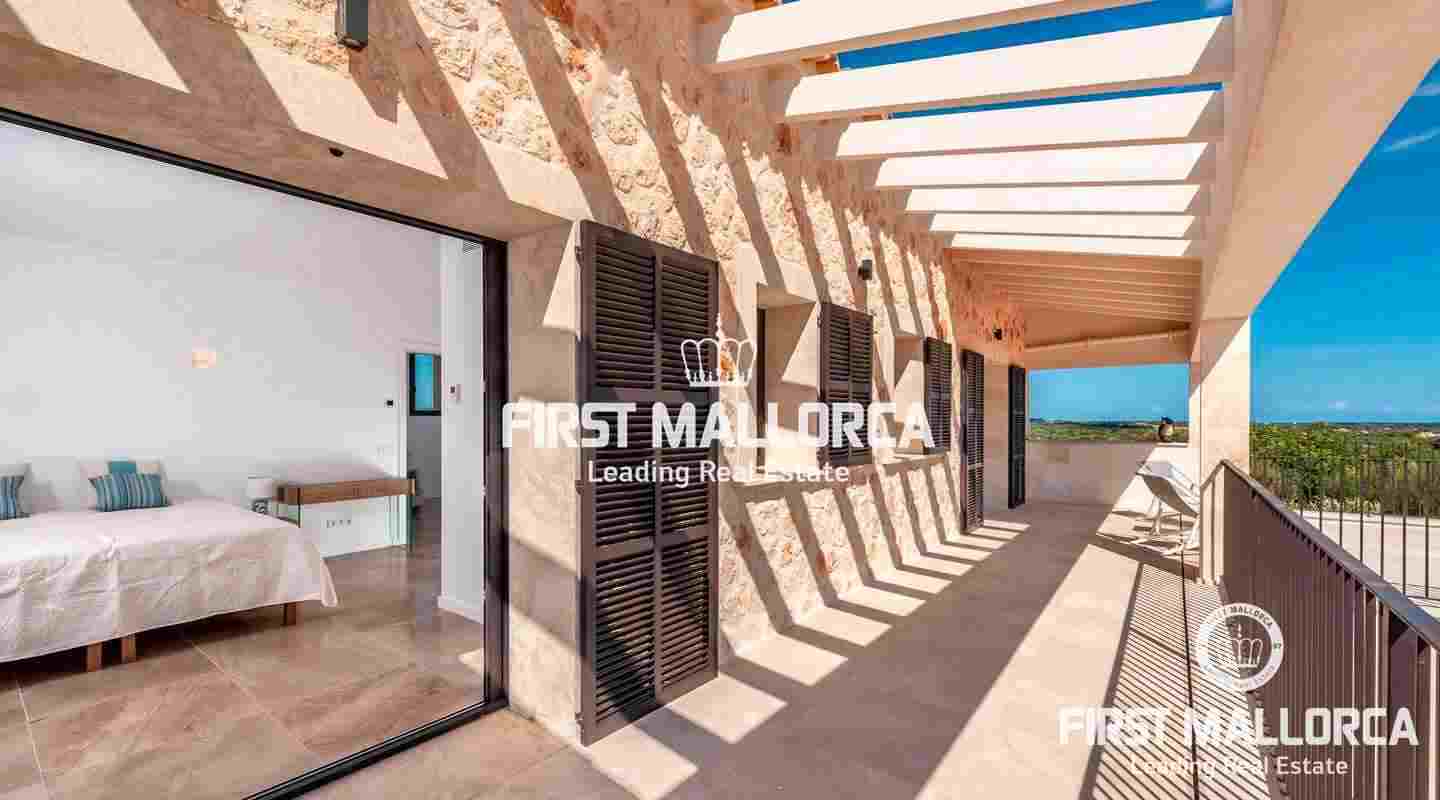 This newly built beautiful, massive stone finca with a contemporary, clear architecture is located in a quiet dead-end street near Ses Salines and Santanyí and has splendid panoramic views to the Cabrera island.