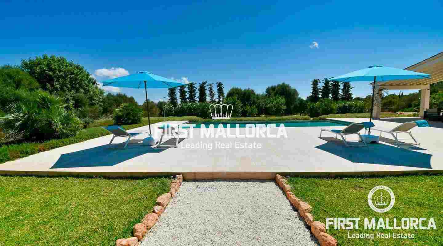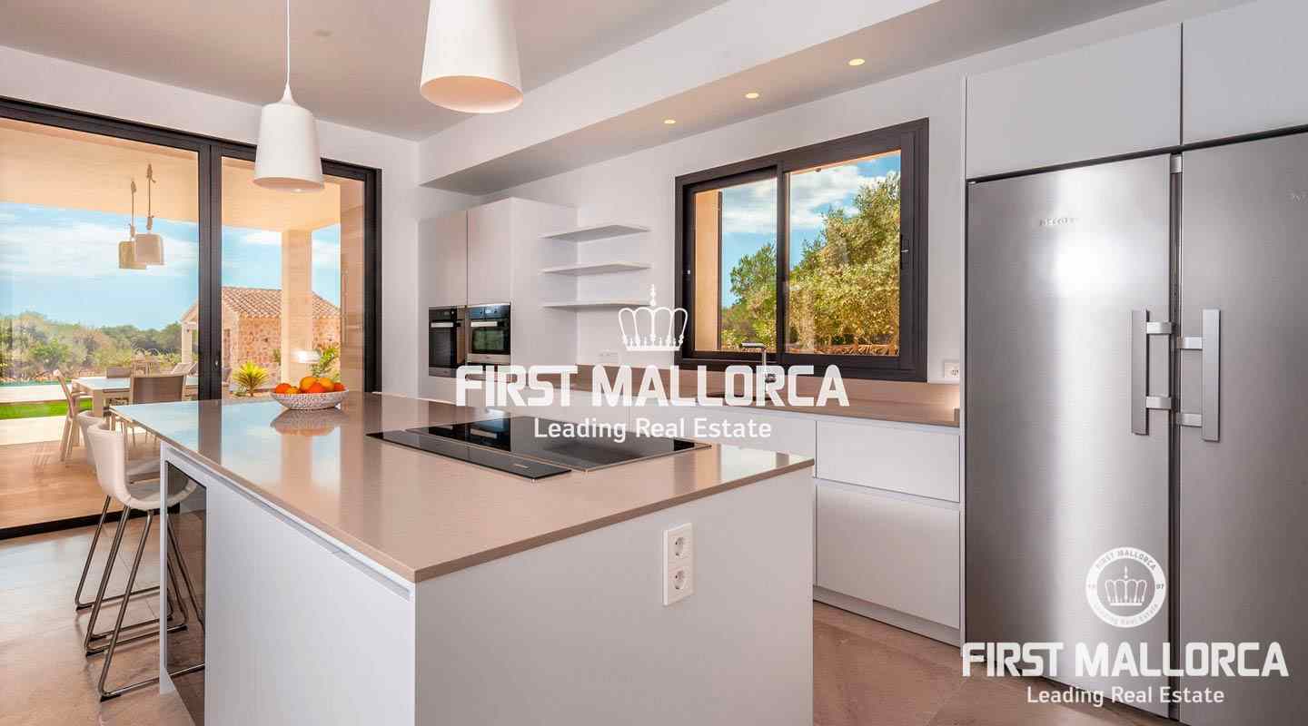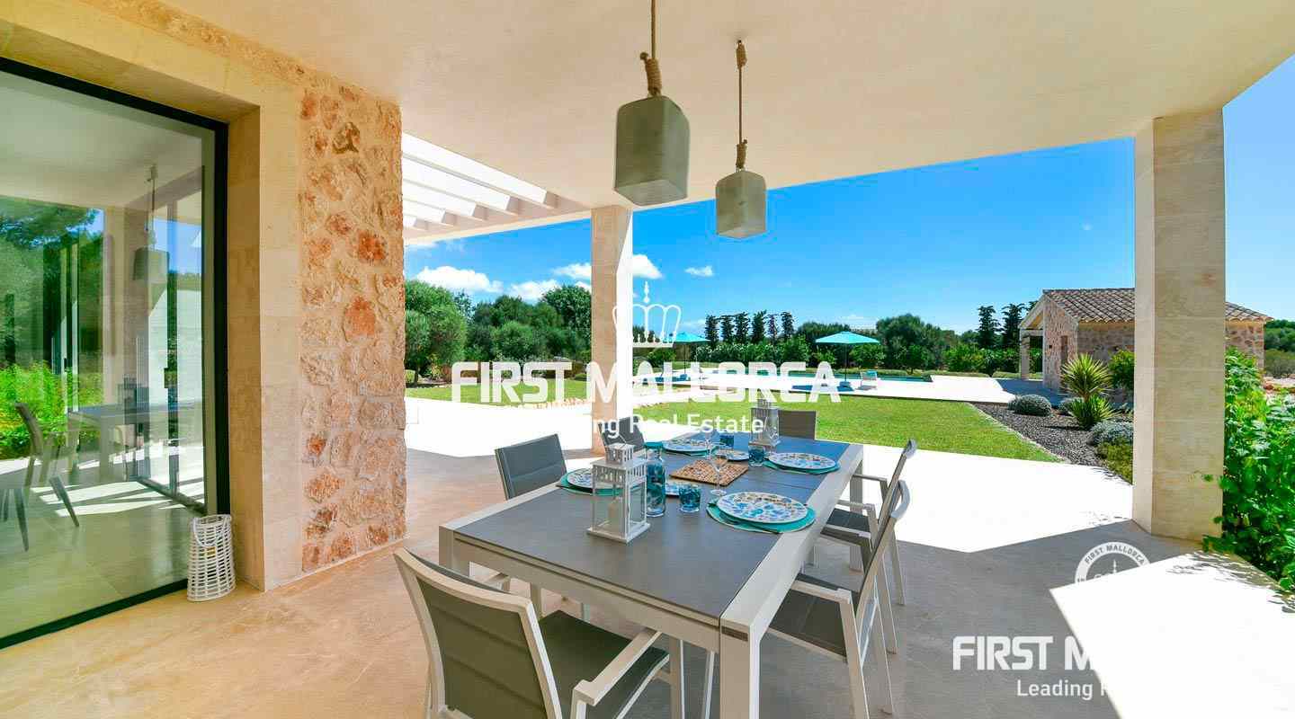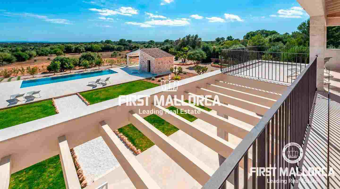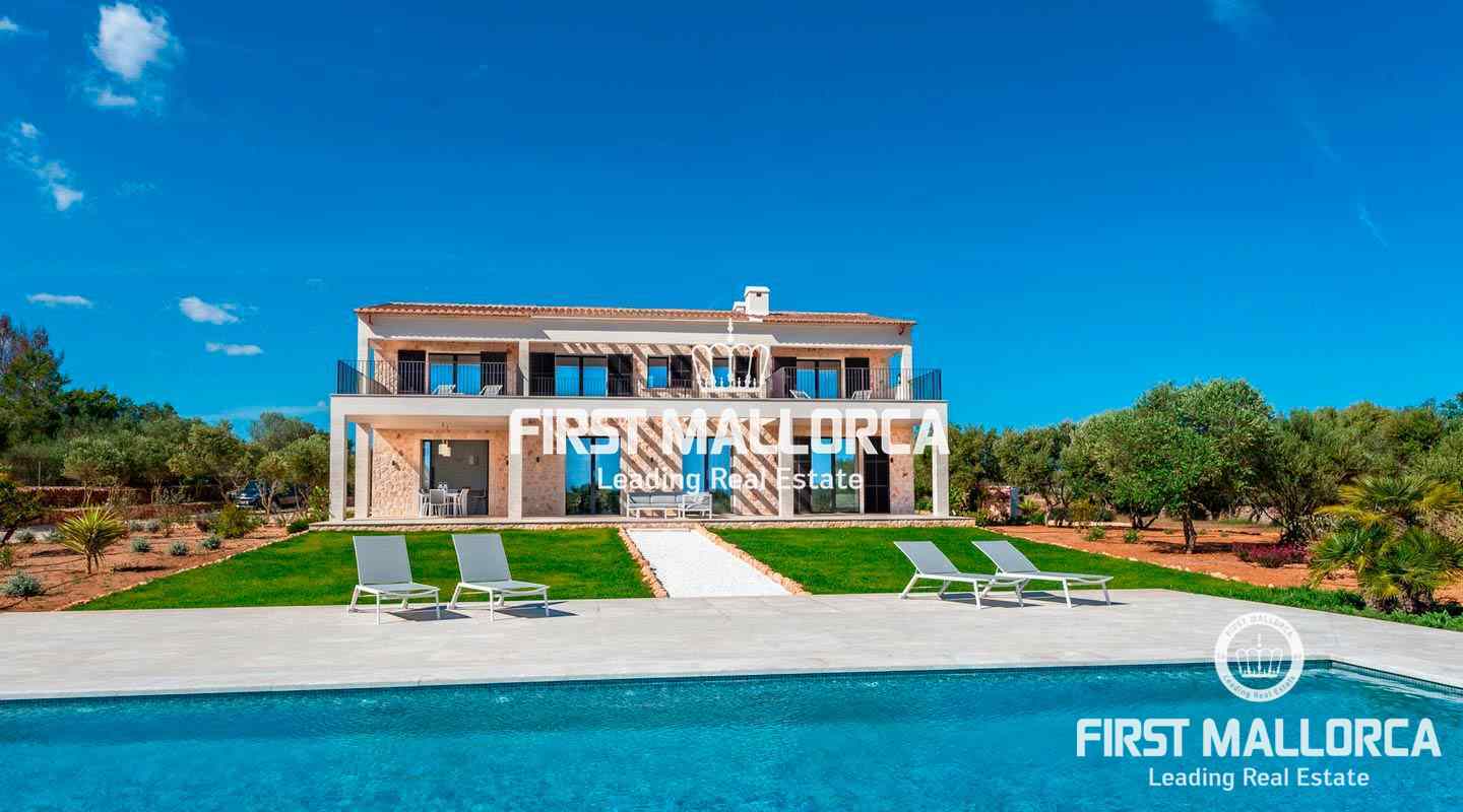 This newly built beautiful, massive stone finca with a contemporary, clear architecture is located in a quiet dead-end street near Ses Salines and Santanyí and has splendid panoramic views to the Cabrera island.
