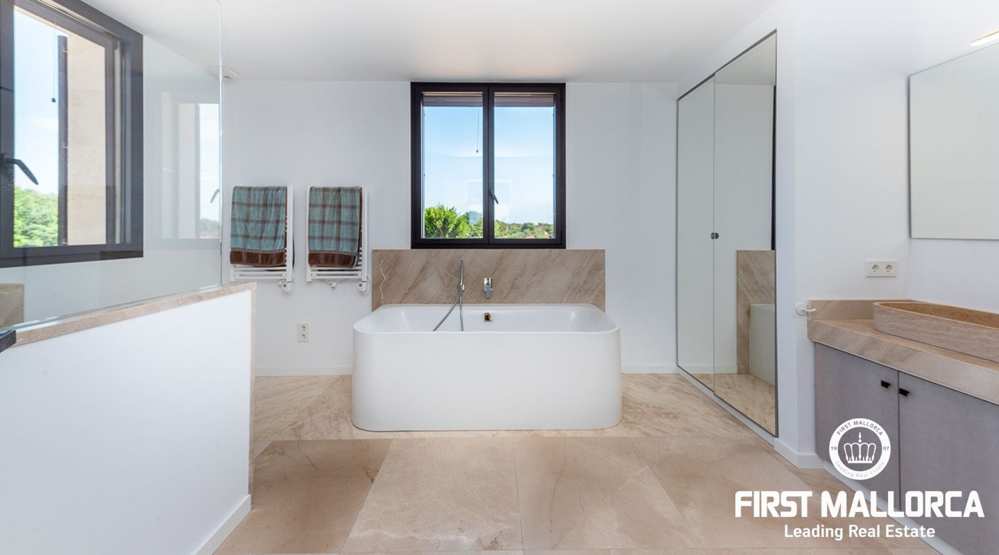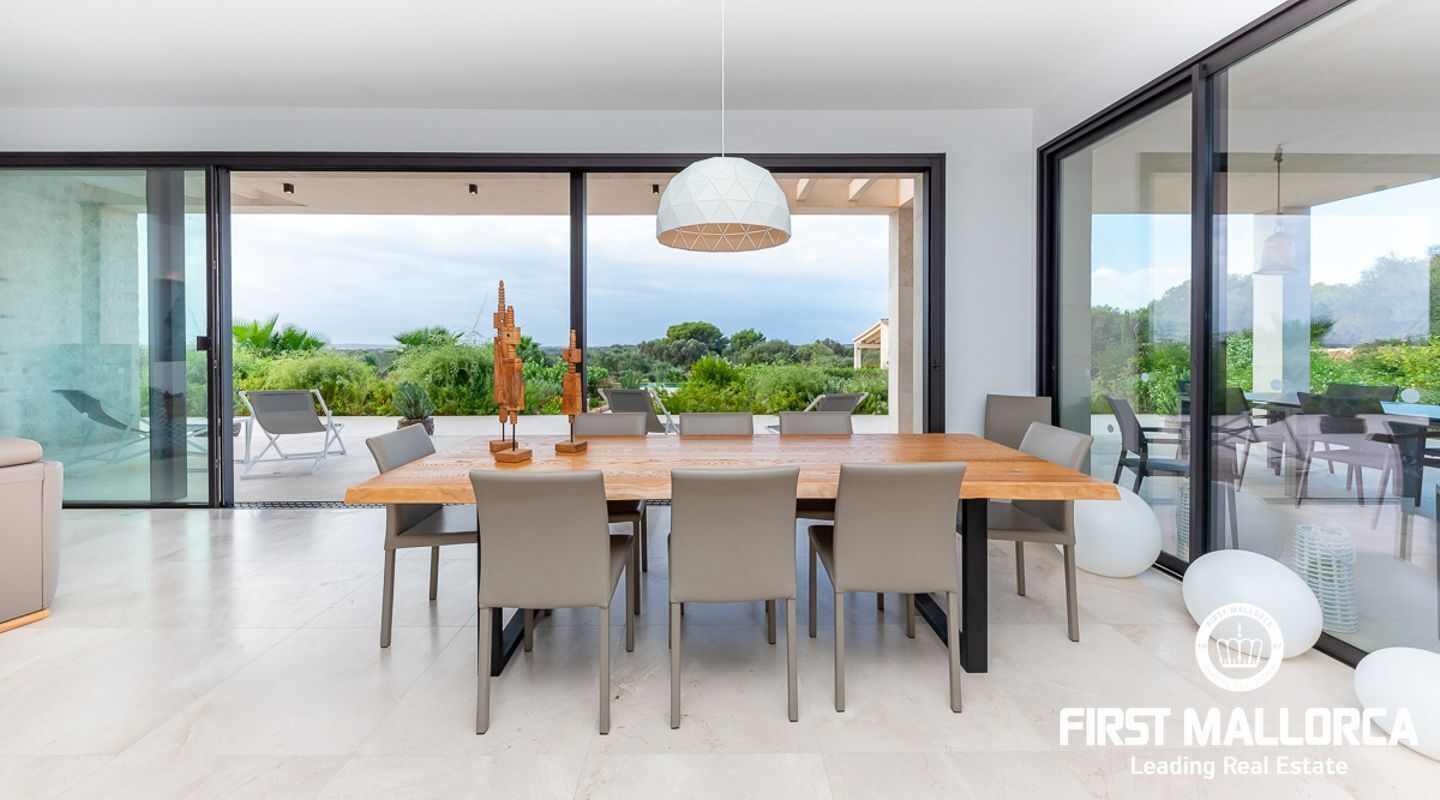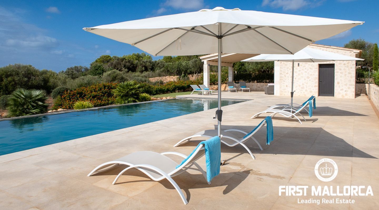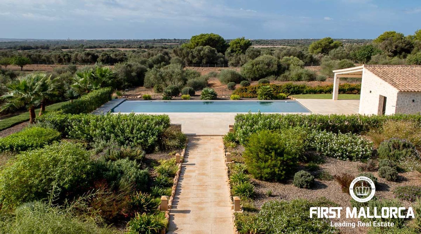 This very exclusive finca, apart from its perfect location and marvellous views to the island of Cabrera and the sea, stands out for its high quality and design. The finca offers an atmosphere of absolute tranquillity and privacy, in a dreamlike setting, with the plot of approx. 31.000m2 perfectly enclosed by an ancient stone wall, with a spectacular and already grown garden, which, in addition to many different flowers and native plants, surprises us with 80 olive trees and other fruit trees. Natural light everywhere, large and wide windows. From every corner there are different views to the sea or to the mountains. The whole façade is covered with natural stone, each piece hand worked and fitted by local craftsmen. Six spacious bedrooms all with en suite bathrooms, own water and several water storage cisterns including rainwater collection, south facing with 180º views, garage for two cars, two porches for more vehicles, top quality materials such as polished stone floors, inside and outside the house, fully insulated walls with layers of 8 cm from the outside, the property was built on a perfectly ventilated basement with access, all brick walls and air chamber, water softener, UV system for water purification, underfloor heating, air conditioning, ceiling fans, interior and exterior perimeter security system, extra mechanical ventilation in bathrooms, kitchen, technical rooms, perfect WIFI signal, connected to mains electricity and also solar panels for self consumption, a 90m2 swimming pool with automatic cleaning and many, many more extras await you in this Finca with a spectacular ambience and unparalleled quality. An investment opportunity hard to beat!