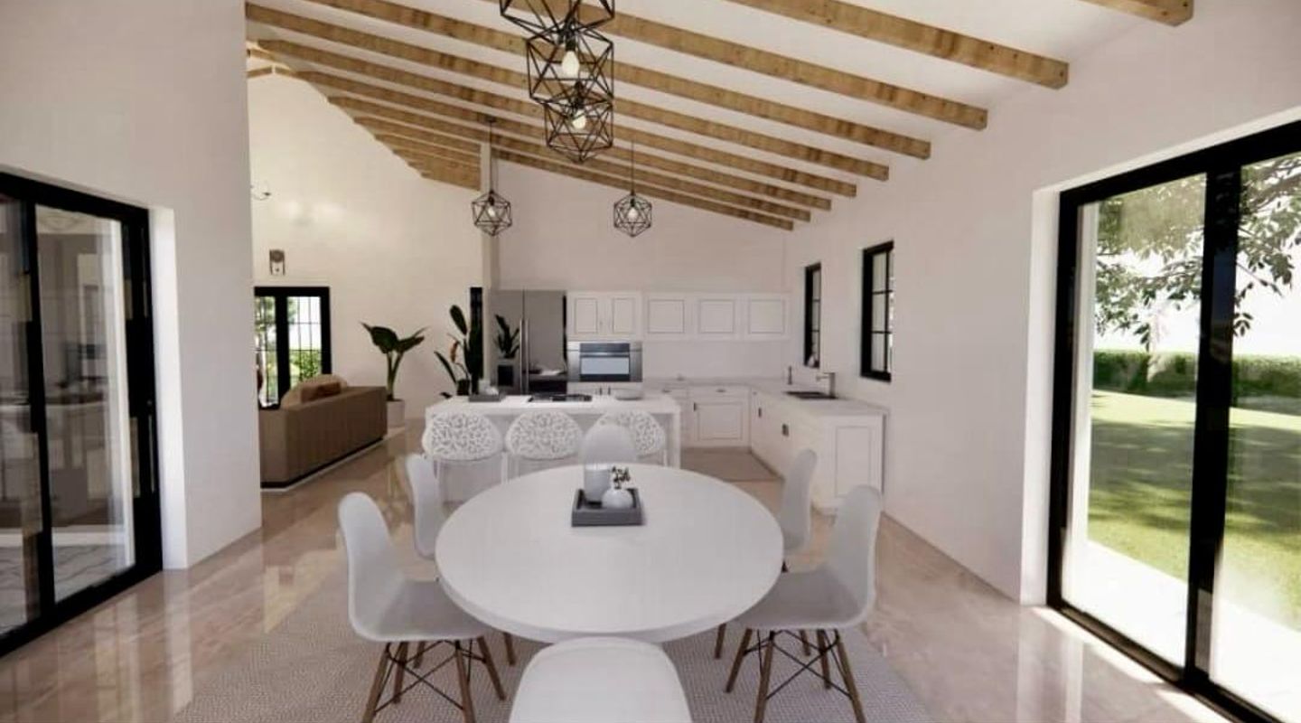 The property, laid out entirely on one level, has an approximate built area of 300 m² and stands out for its open, modern, and very bright spaces. The heart of the home is a spacious living-dining area connected to an open-plan kitchen with island, ideal for everyday living as well as for entertaining guests.