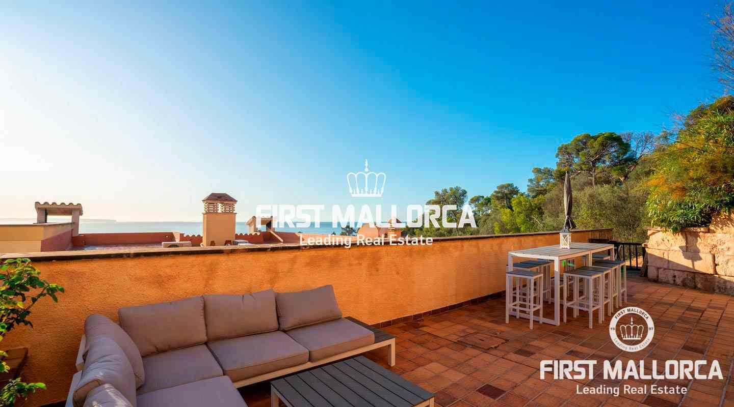 This charming south-facing duplex apartment enjoys plenty of sun, splendid sea views and a superb location only 50 metres from the beach in Illetes.