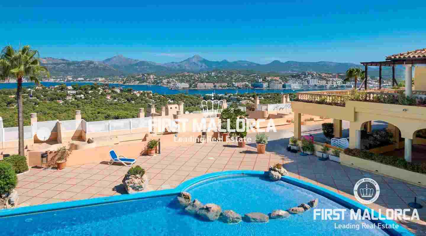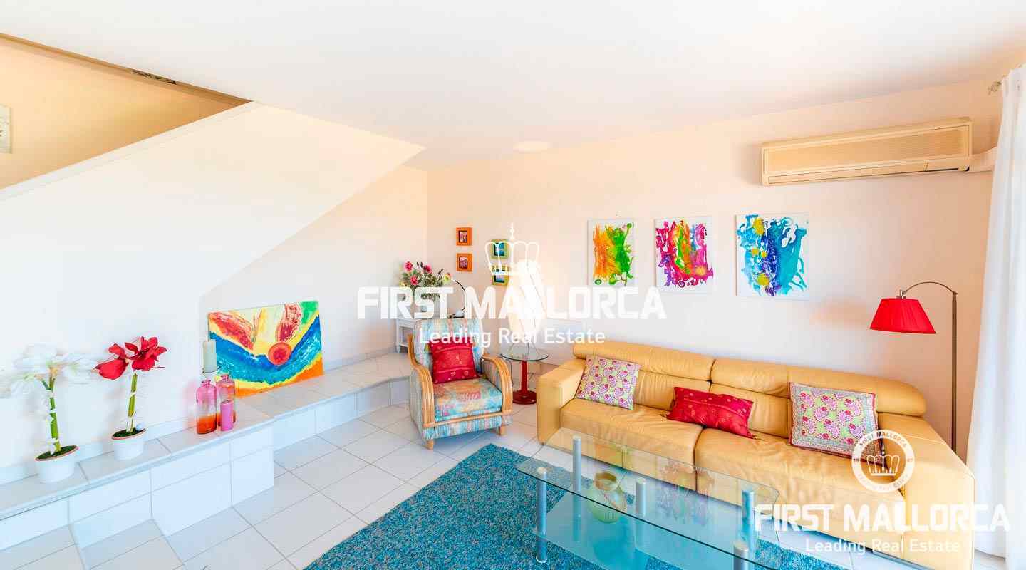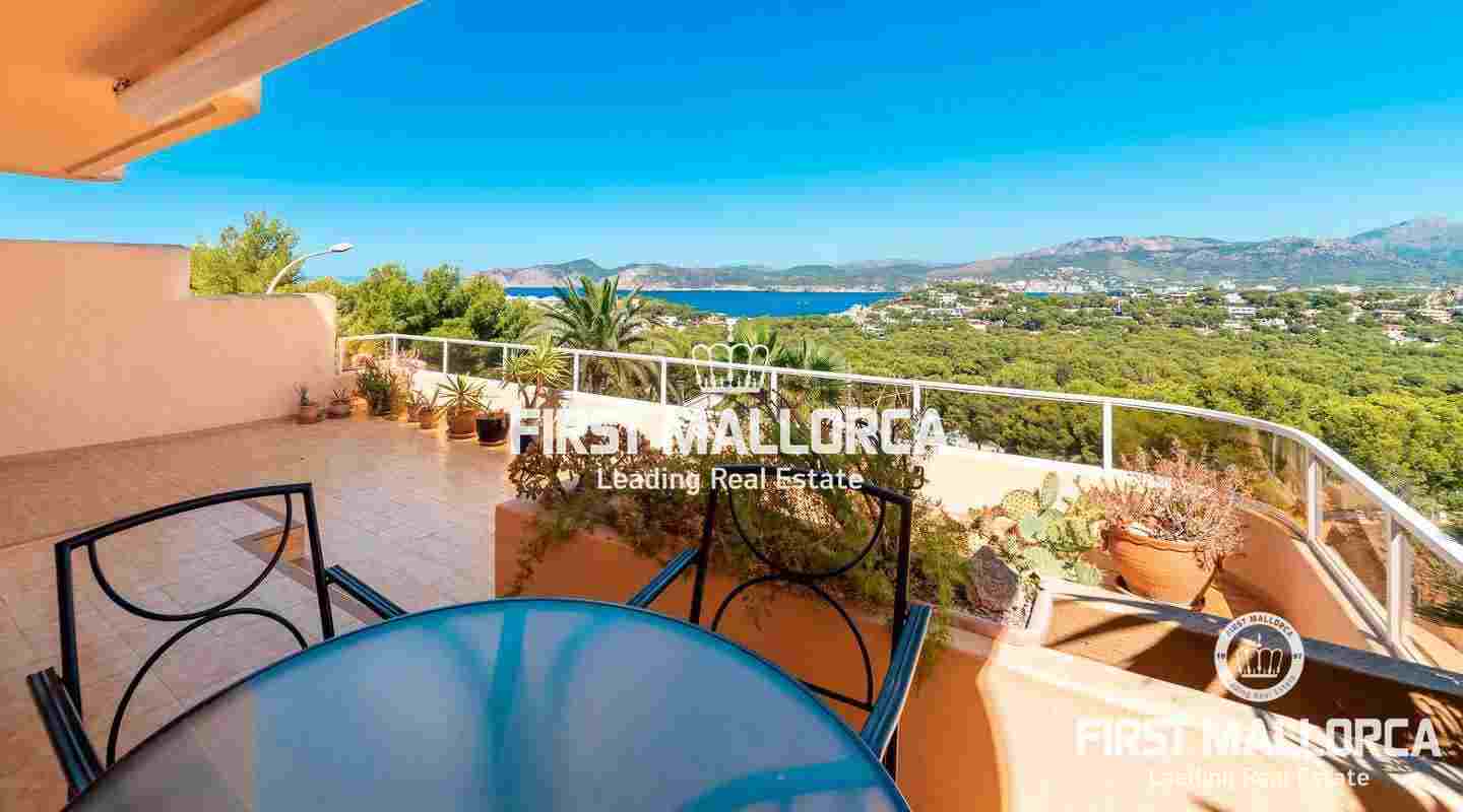 This well-kept apartment on two levels with spacious open and covered terraces of about 80 m² is located in an exclusive residence in a preferred residential area in Nova Santa Ponsa. The beaches, golf courses and marinas of the southwest of the island are easily accessible. The living area on the lower floor includes a bright living and dining room with access to the terrace with fantastic views of the surrounding landscape and the sea. On the upper floor there are three bedrooms and two bathrooms (one en suite).