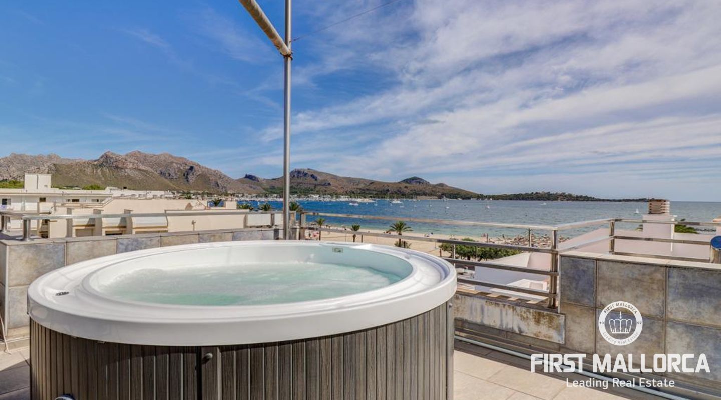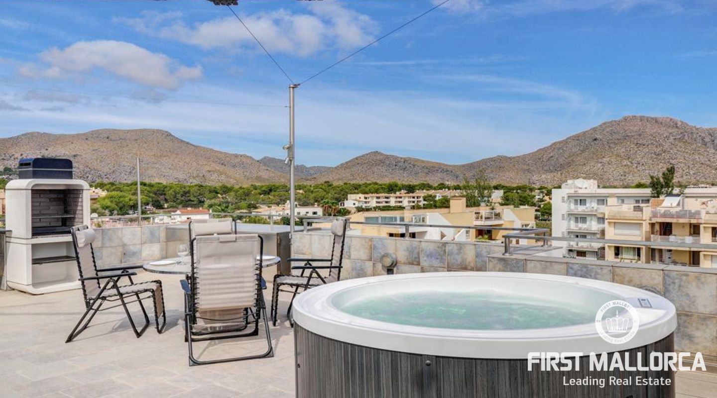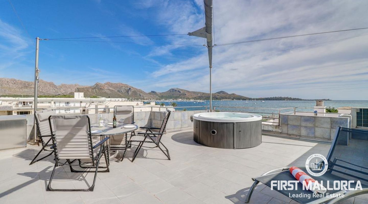 This first line duplex of 65m2, has 2 bedrooms and 1 complete bathroom, with a fully fitted kitchen complemented by a living-cum-dining room. The highlight of this property is the terrace with jacuzzi and its magnificent open views to the Port of Pollença and the mountains, creates the ideal setting to spend pleasant evenings with family or friends. With a current holiday rental license, this property provides a desirable opportunity, for both investors and as homeowners, to live only a few minutes from the beaches of Puerto de Pollença, where you can enjoy picturesque narrow streets and a great selection of restaurants and cafés. As well as being surrounded by history and beauty, this perfect location also guarantees access to all essential amenities and services.