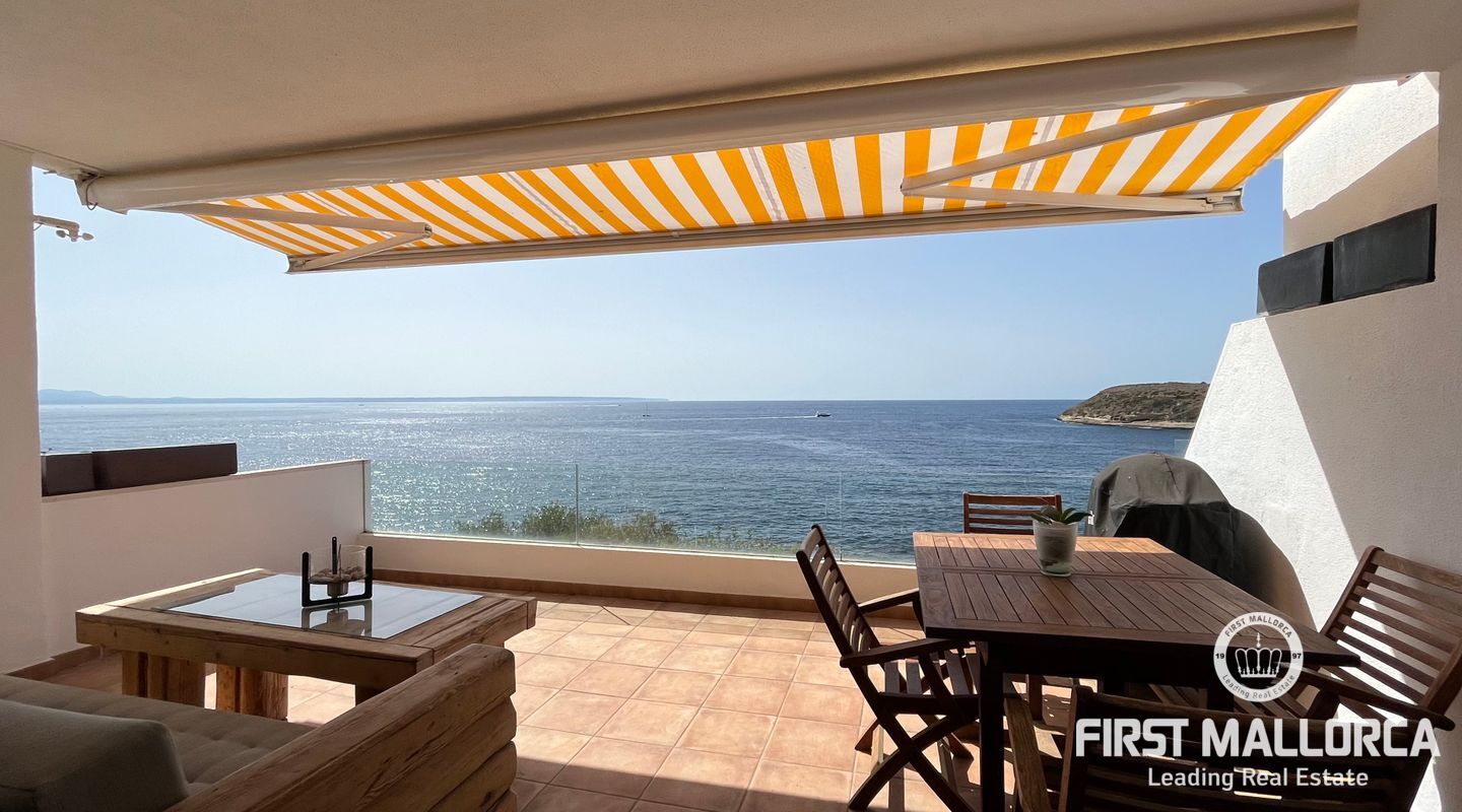 This spacious apartment offers a large terrace practically on the water in an elevated position in Torrenova with all day sun and truly amazing sea views. The property offers an open plan living/dining area with attached kitchen and laundry area. There are a total of 3 bedrooms and 3 bathrooms. The apartment was recently refurbished with top quality materials. The community is very well maintained and offers a community pool by the sea and direct access to the sea. The apartment includes a parking space for one car. The spectacular sandy beaches of Palmanova are just a few minutes walk from the apartment, as well as a wide range of restaurants, cafes and stores. The center of the island's capital, Palma de Mallorca, can be reached in 15 minutes by car and the international airport in about 20 minutes.