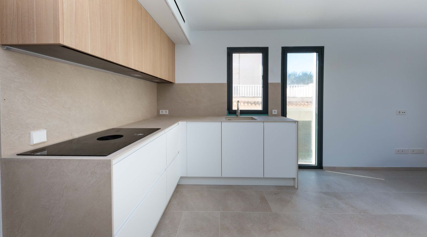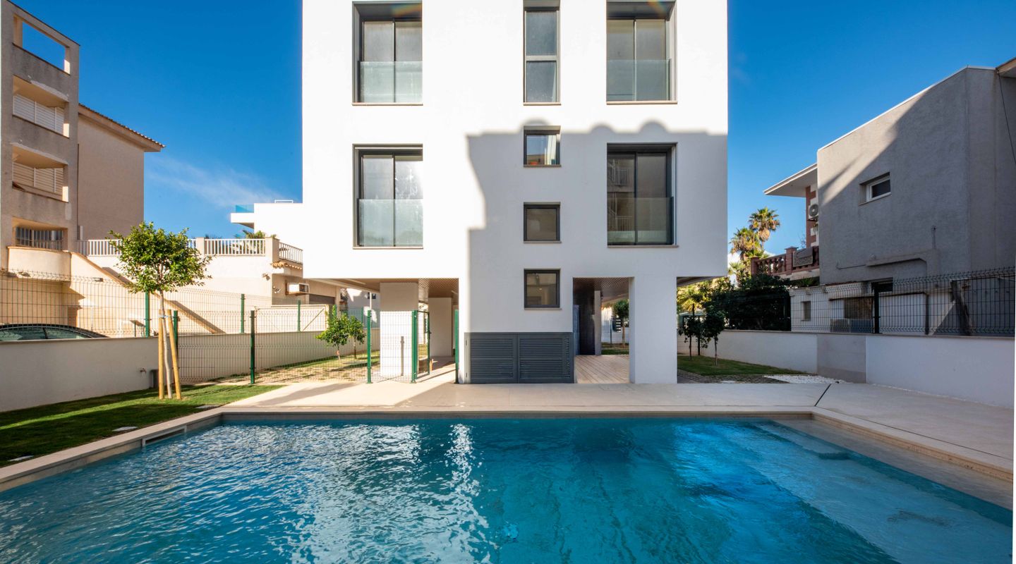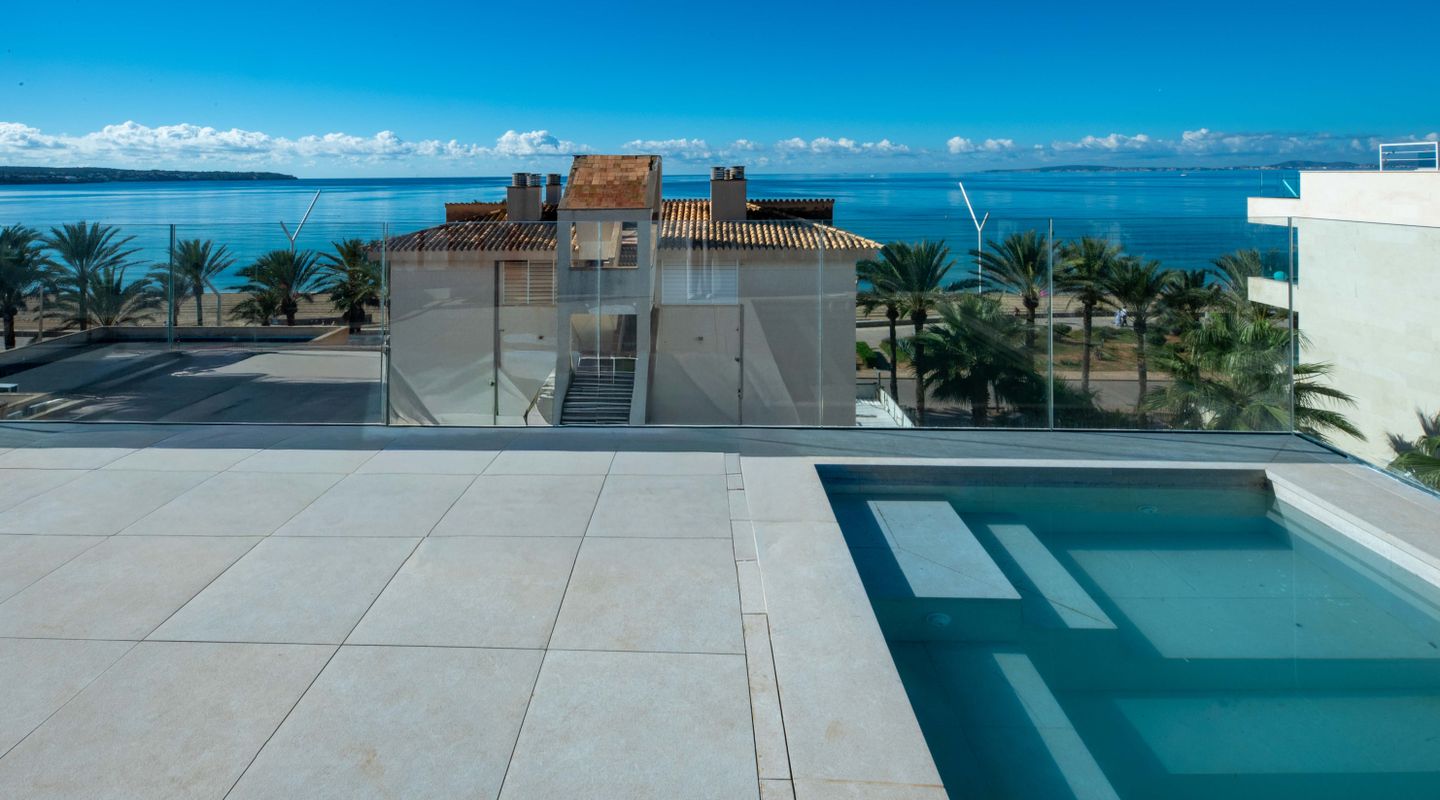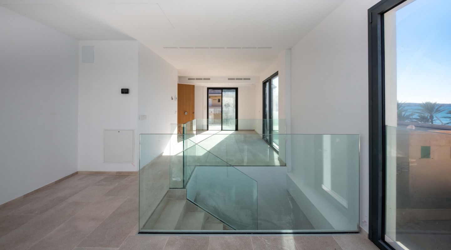 Exclusive new-build duplex penthouse just 50 metres from the sea, combining contemporary design, comfort and an unbeatable location. The property has 2 spacious double bedrooms and 2 full bathrooms, one of which is en suite. It stands out for its spectacular private rooftop terrace with a swimming pool, ideal for relaxing while enjoying breathtaking sea views. The property also has a communal garden and swimming pool, creating a peaceful and exclusive residential environment. It includes a private parking space with the option to purchase additional spaces. The lift provides direct access to both floors of the penthouse. The property has several terraces, a reinforced door, high-efficiency exterior carpentry with double glazing, thermal break and soundproofing. It is equipped with high-performance ducted air conditioning, oil-fired central heating and underfloor heating throughout the house. The kitchen is fully furnished with high-quality materials. Very bright and completely exterior, this property includes a storage room, chill-out area and high-quality finishes. Its location is privileged, close to all amenities: pharmacies, bars, restaurants, schools, golf course, airport and much more. A unique opportunity to live in style by the sea or as a high-value investment.