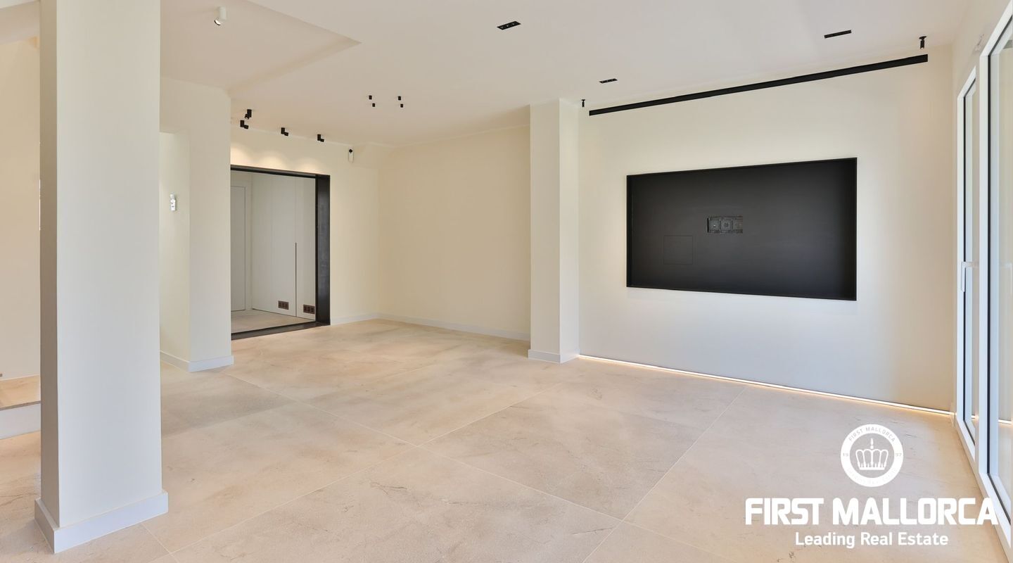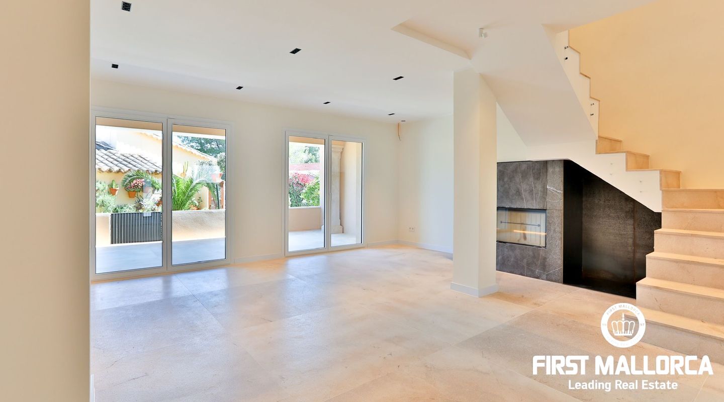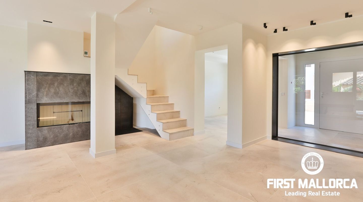 Ground Floor: The entrance hall leads to the kitchen and an inviting, stylish living room with a fireplace. The spacious terrace overlooks the garden and residence and provides direct access to the garden and pool area.