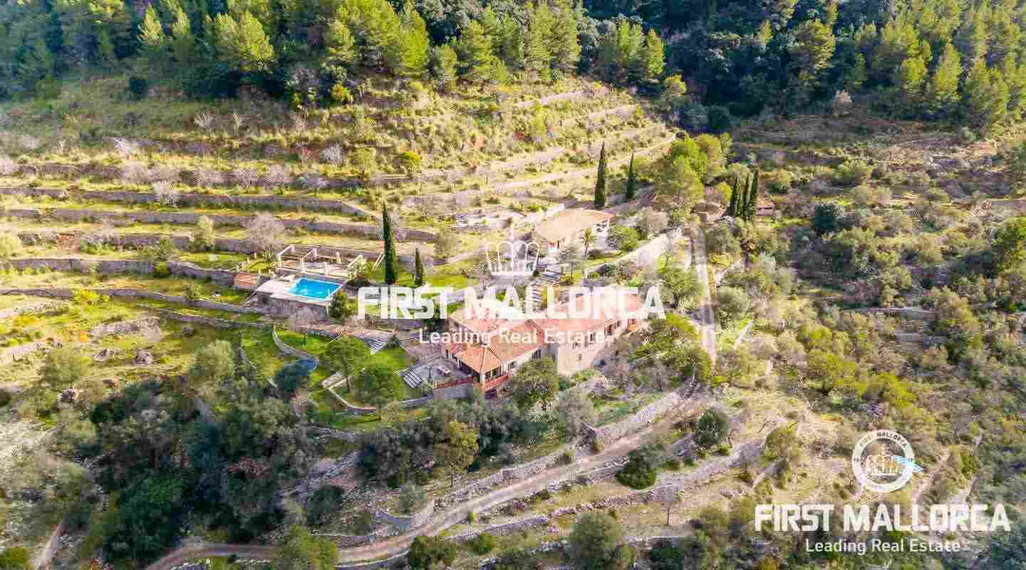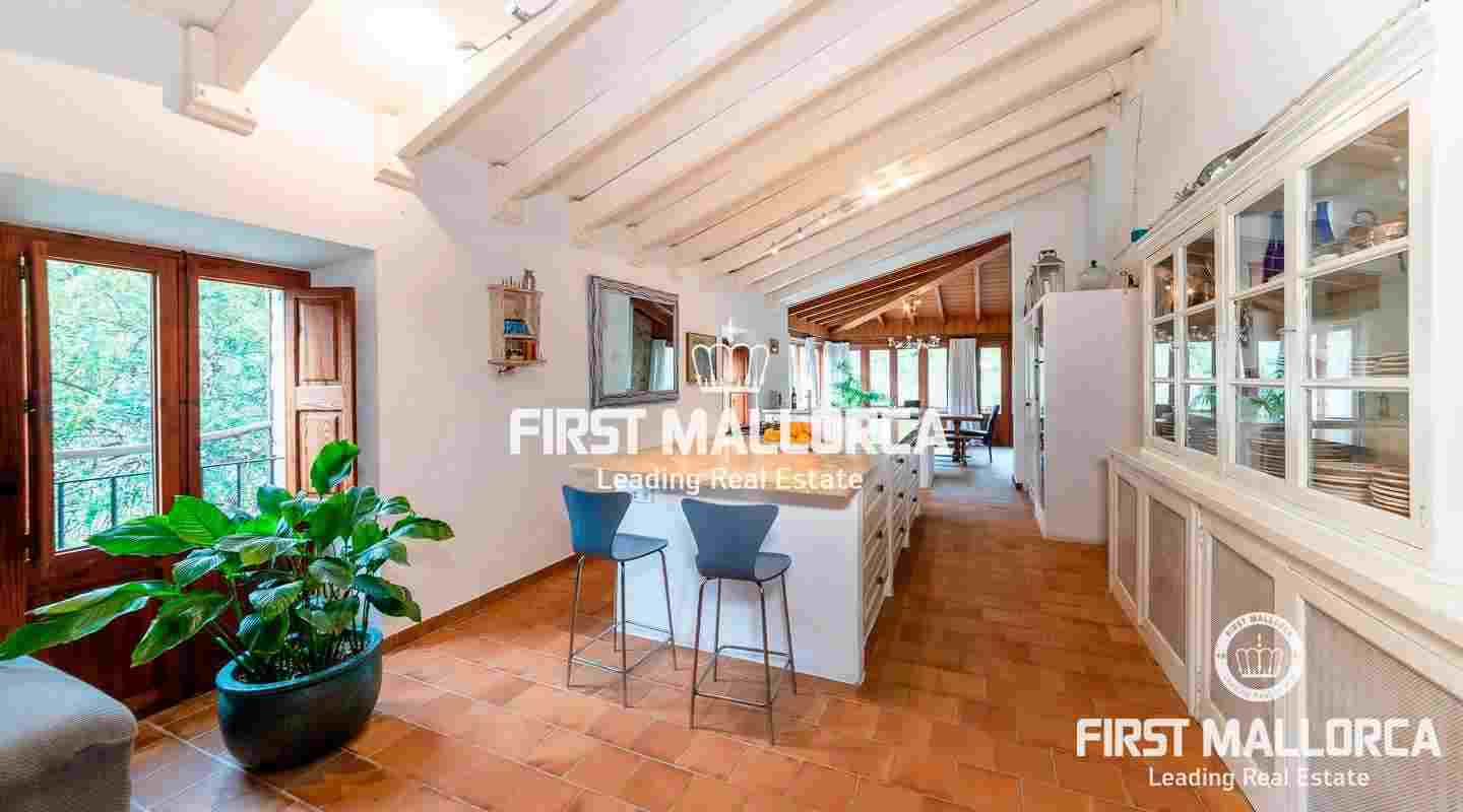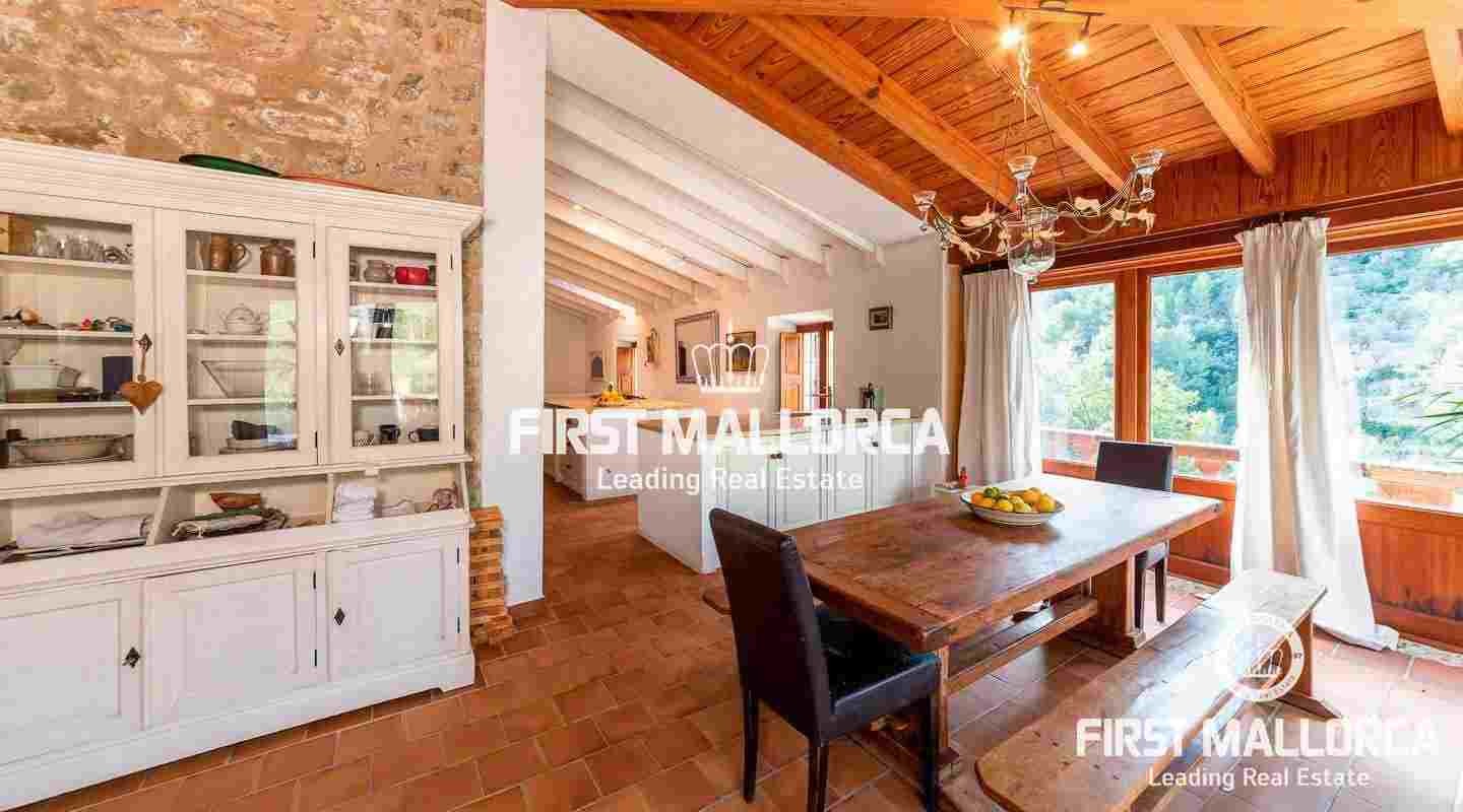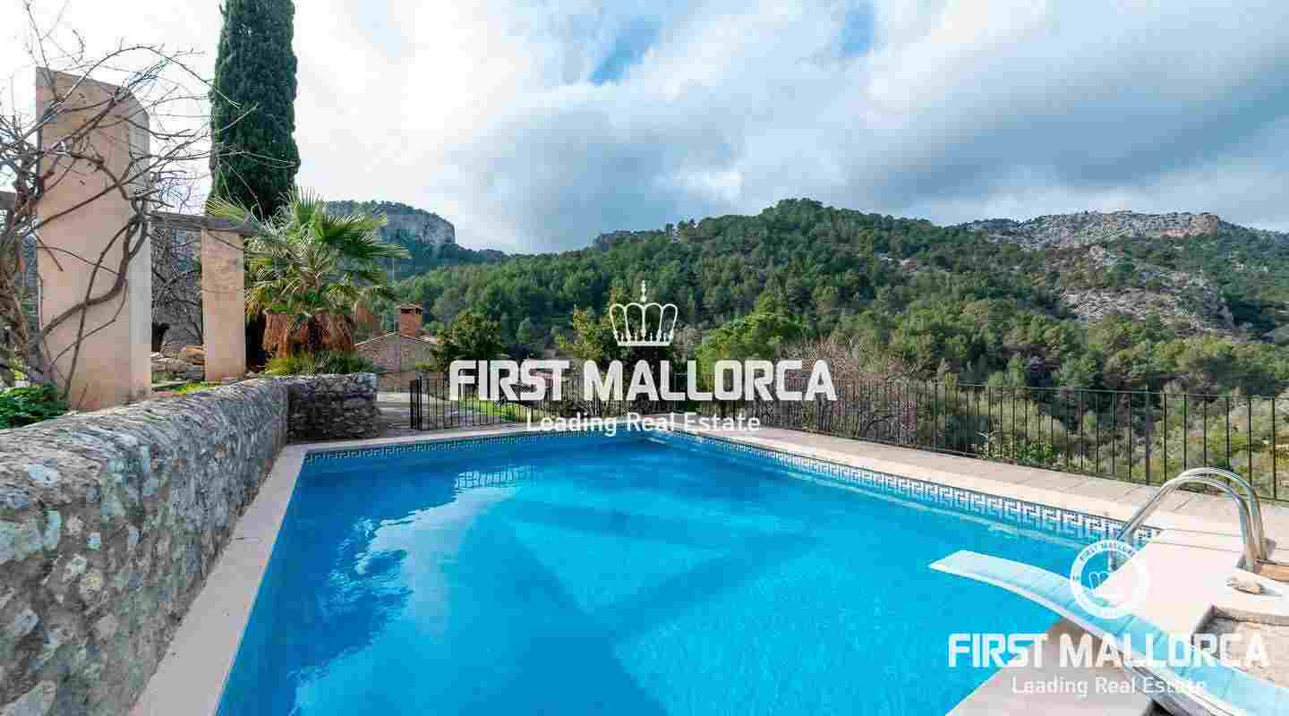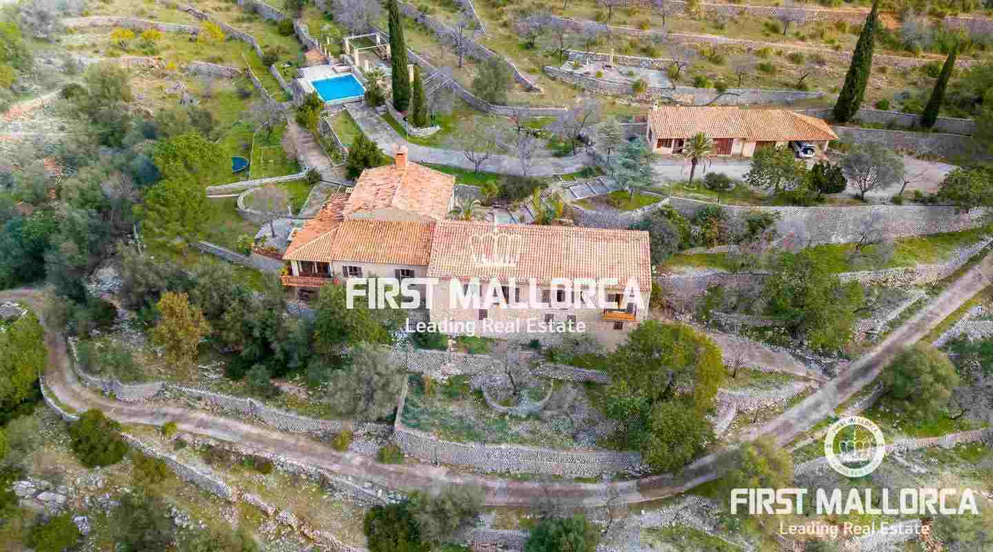 A magnificent country house with wonderful valley and surrounding views to Alaró. Its elevated position offers a lot of privacy, though being less than a 5 minutes drive from the village centre. The property is built in original Mallorquin style with many practical details and unique features. The heart of the house is a large and modern kitchen. Except one bedroom in the first floor, all others are situated on the ground floor, providing a very convenient access. The several terraces always offer a sunny or shady spot to enjoy this unique property.