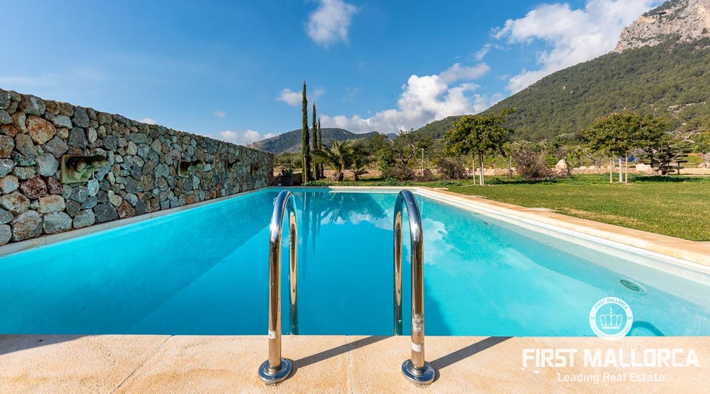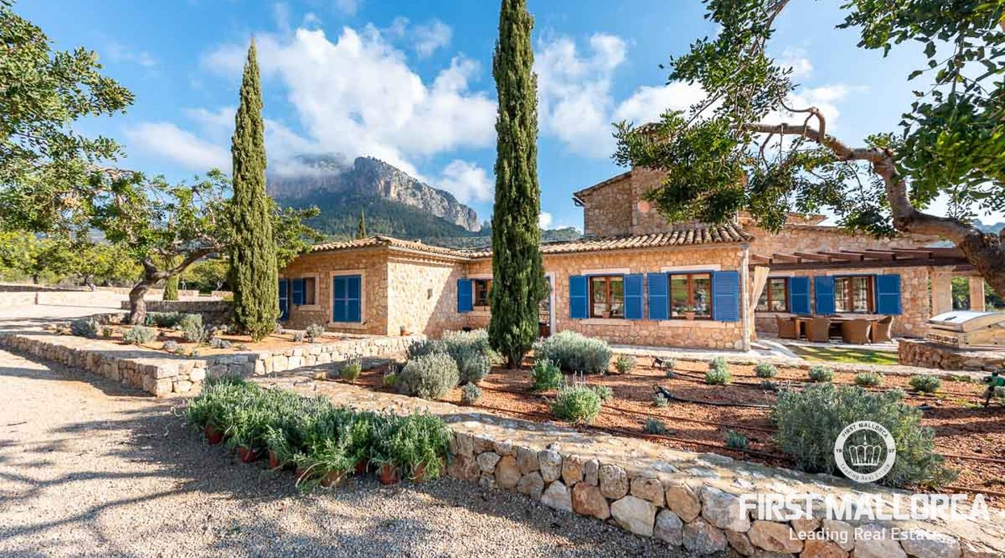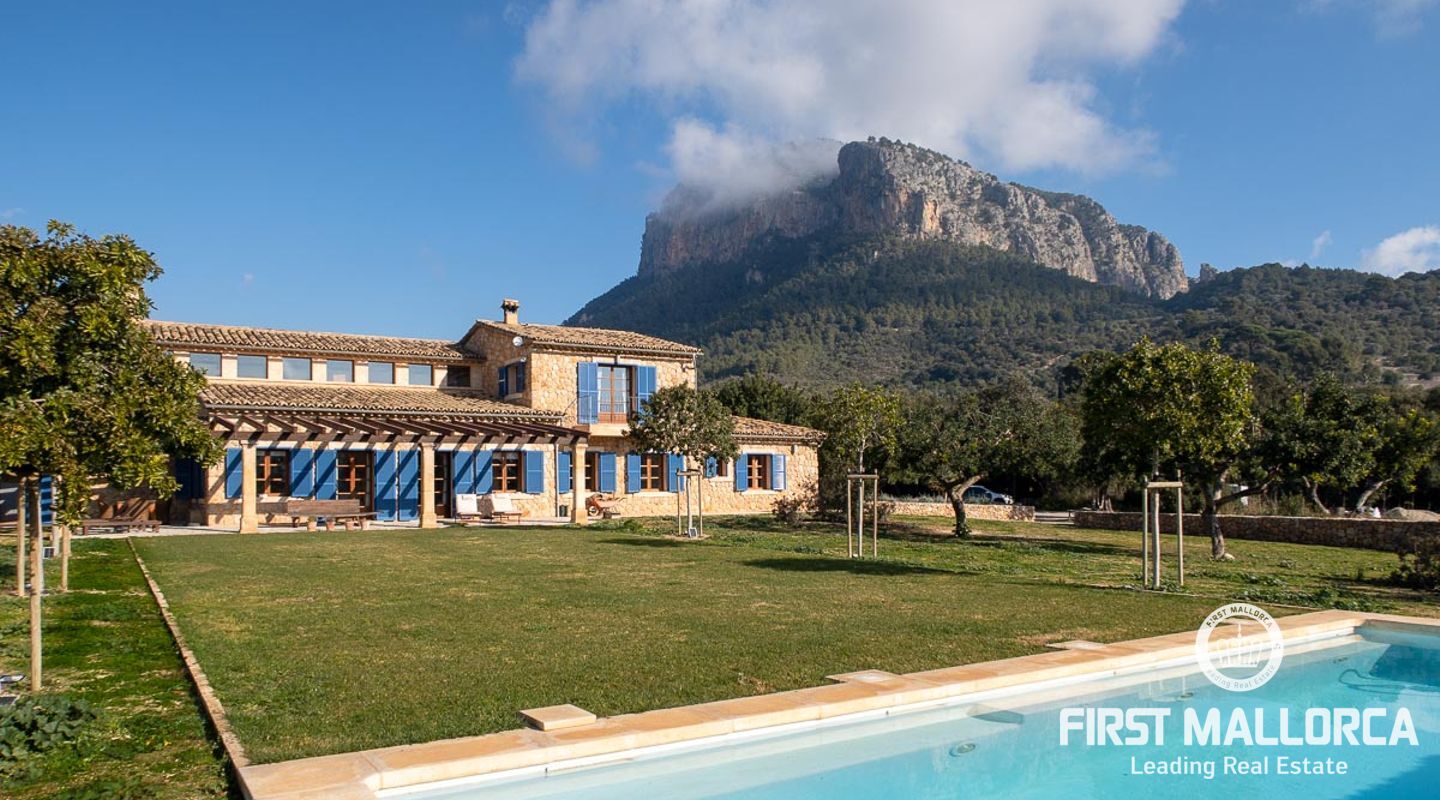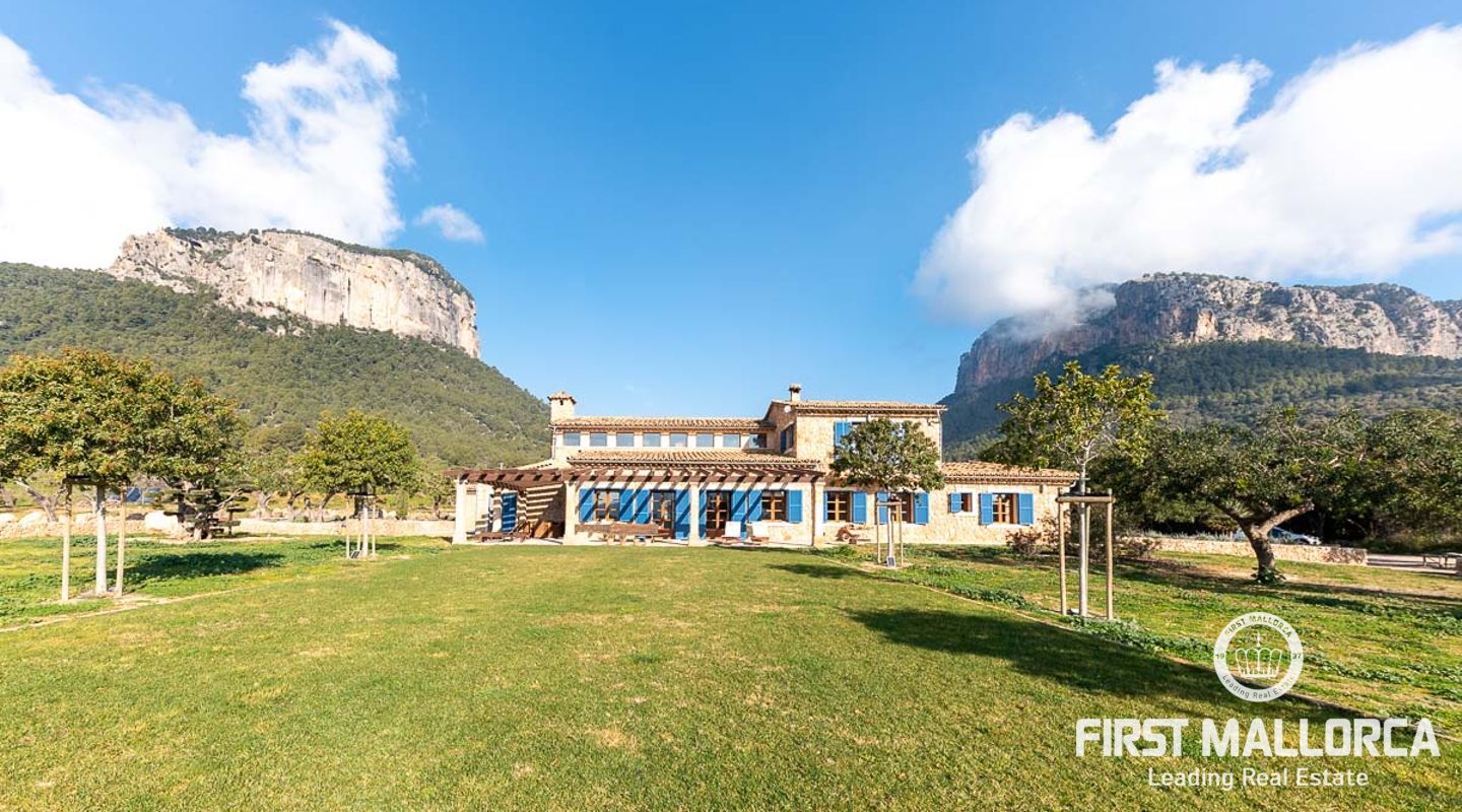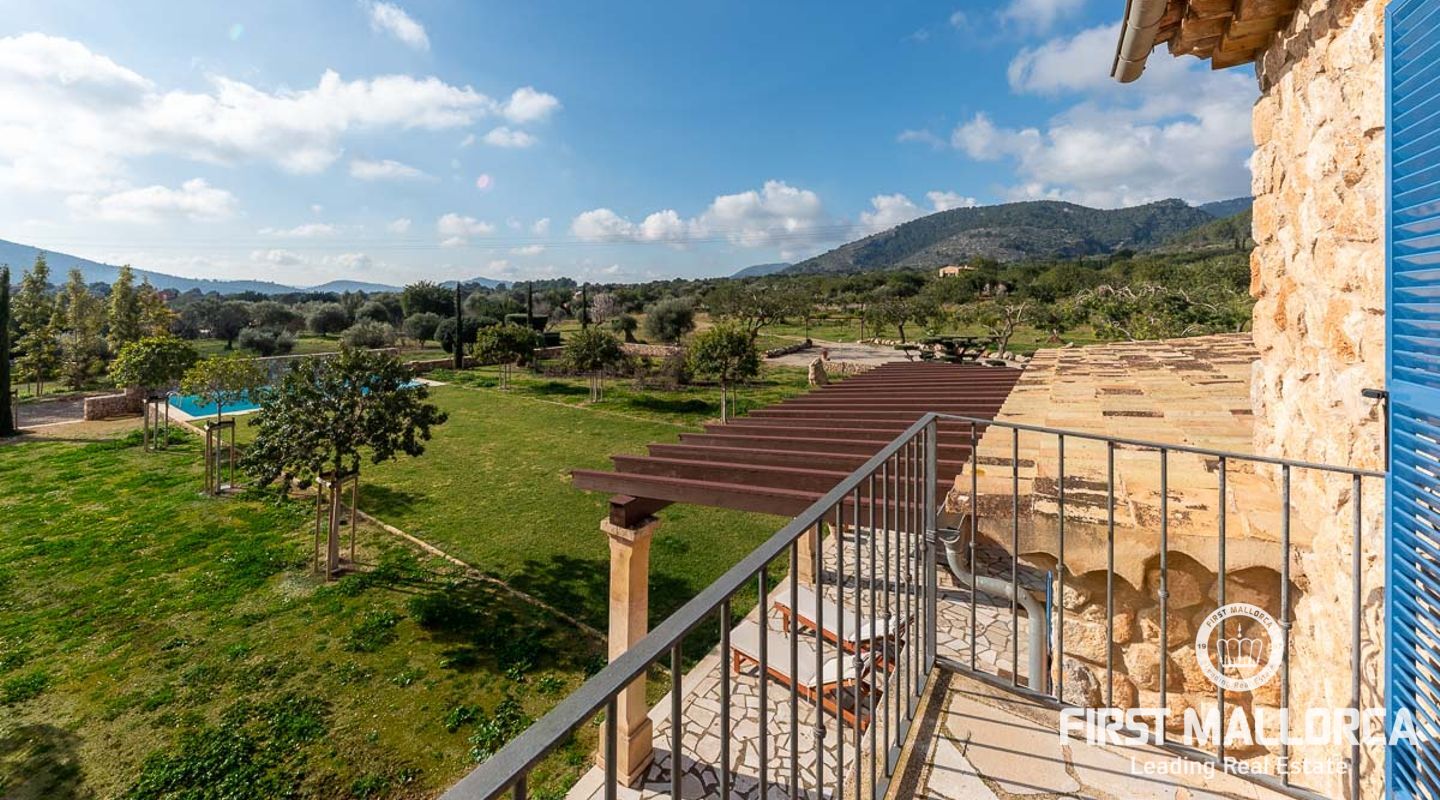 This country manor is located in Alaro – a beautiful area in the center part of Mallorca, and it truly maximises on its location, with unique views of the Twin mountains. The luxury manor is built in the heart of the countryside, which allows for wide-open, uninterrupted views of rural Mallorca. Beautiful two-story house is set on the large plot of 25 657 m2 in a delightful and exclusive location nestled under the Tramuntana Mountains, declared a World Heritage site by the UNESCO in 2011. The property has a constructed area of 1014 m2 and consists of 7 bedrooms and 8 bathrooms. Outside the property, you will be able to enjoy a beautiful Mediterranean garden filled with olive trees, a private vineyard and a pool. The underfloor has an underground garage, technical rooms and it also offers a spacious basement. The property has its own well for drinking water and solar panels.