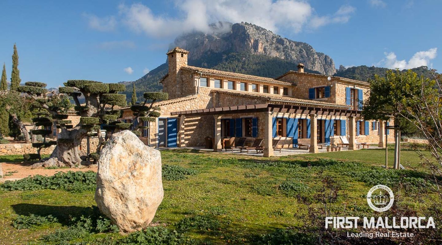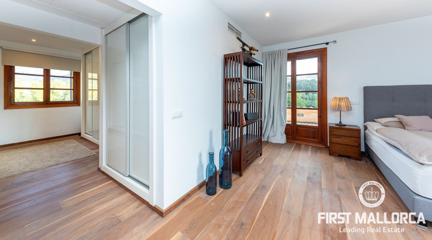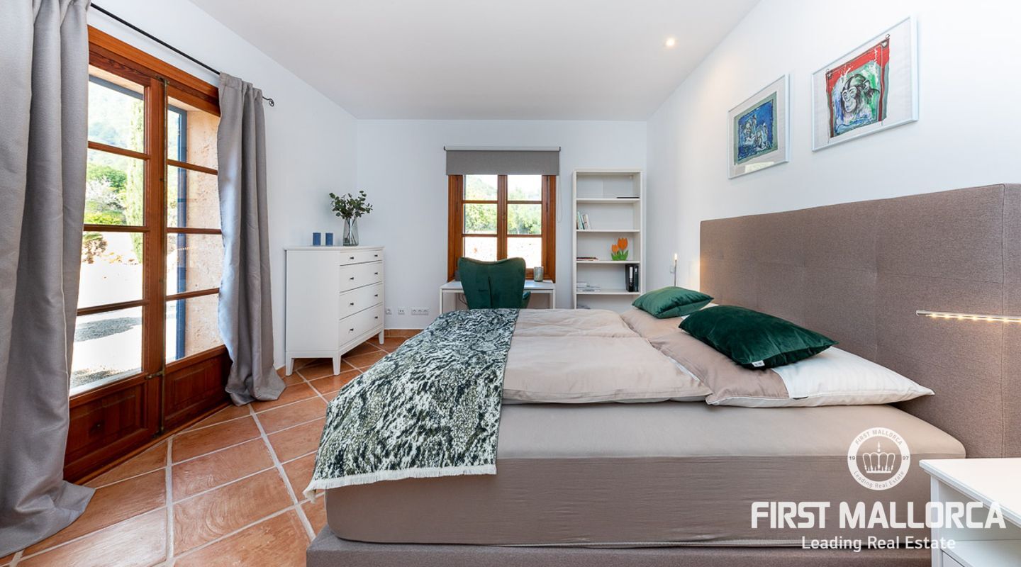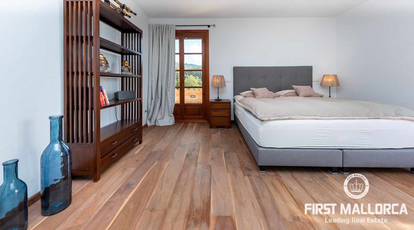 This country manor is located in Alaro – a beautiful area in the center part of Mallorca, and it truly maximises on its location, with unique views of the Twin mountains. The luxury manor is built in the heart of the countryside, which allows for wide-open, uninterrupted views of rural Mallorca. Beautiful two-story house is set on the large plot of 25 657 m2 in a delightful and exclusive location nestled under the Tramuntana Mountains, declared a World Heritage site by the UNESCO in 2011. The property has a constructed area of 1014 m2 and consists of 7 bedrooms and 8 bathrooms. Outside the property, you will be able to enjoy a beautiful Mediterranean garden filled with olive trees, a private vineyard and a pool. The underfloor has an underground garage, technical rooms and it also offers a spacious basement. The property has its own well for drinking water and solar panels.
