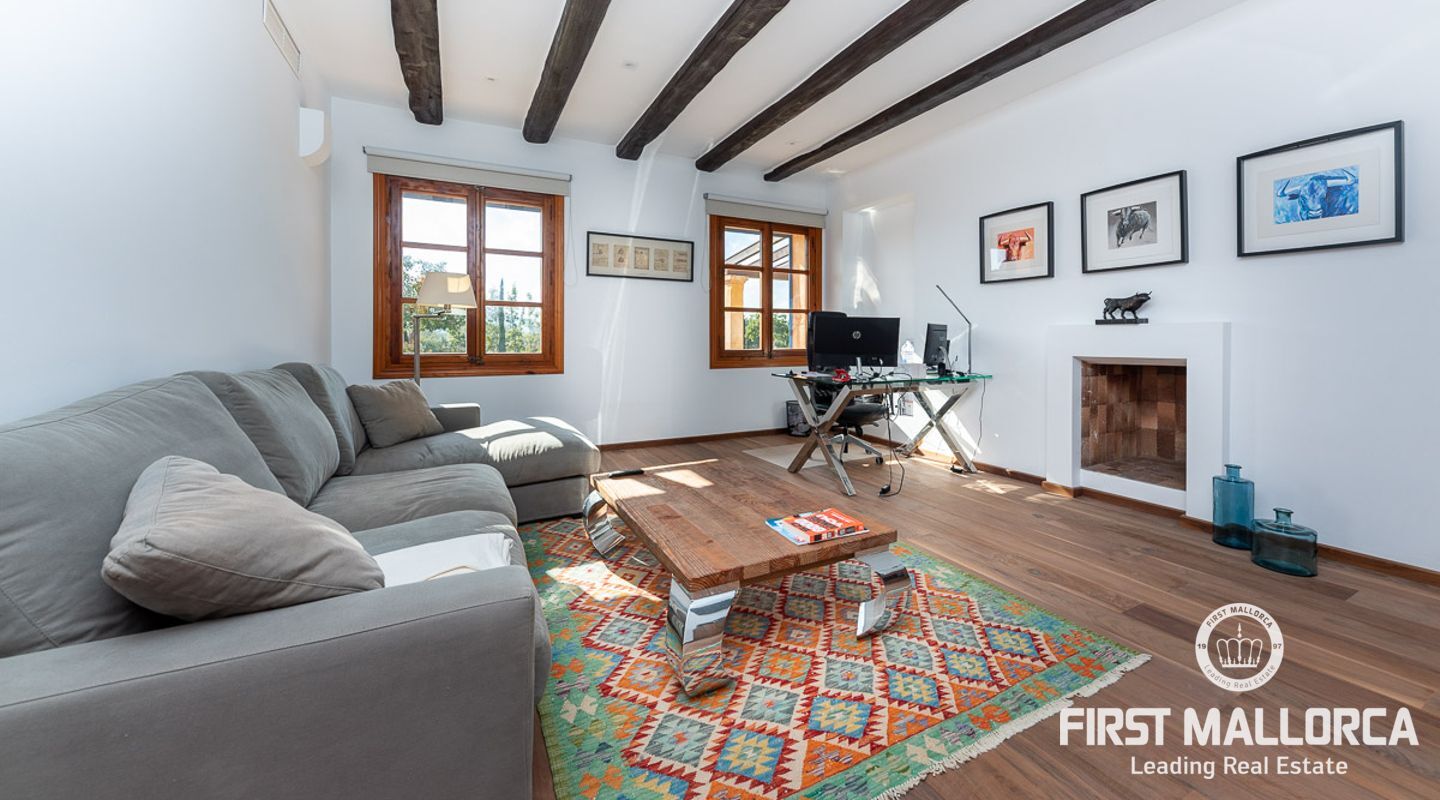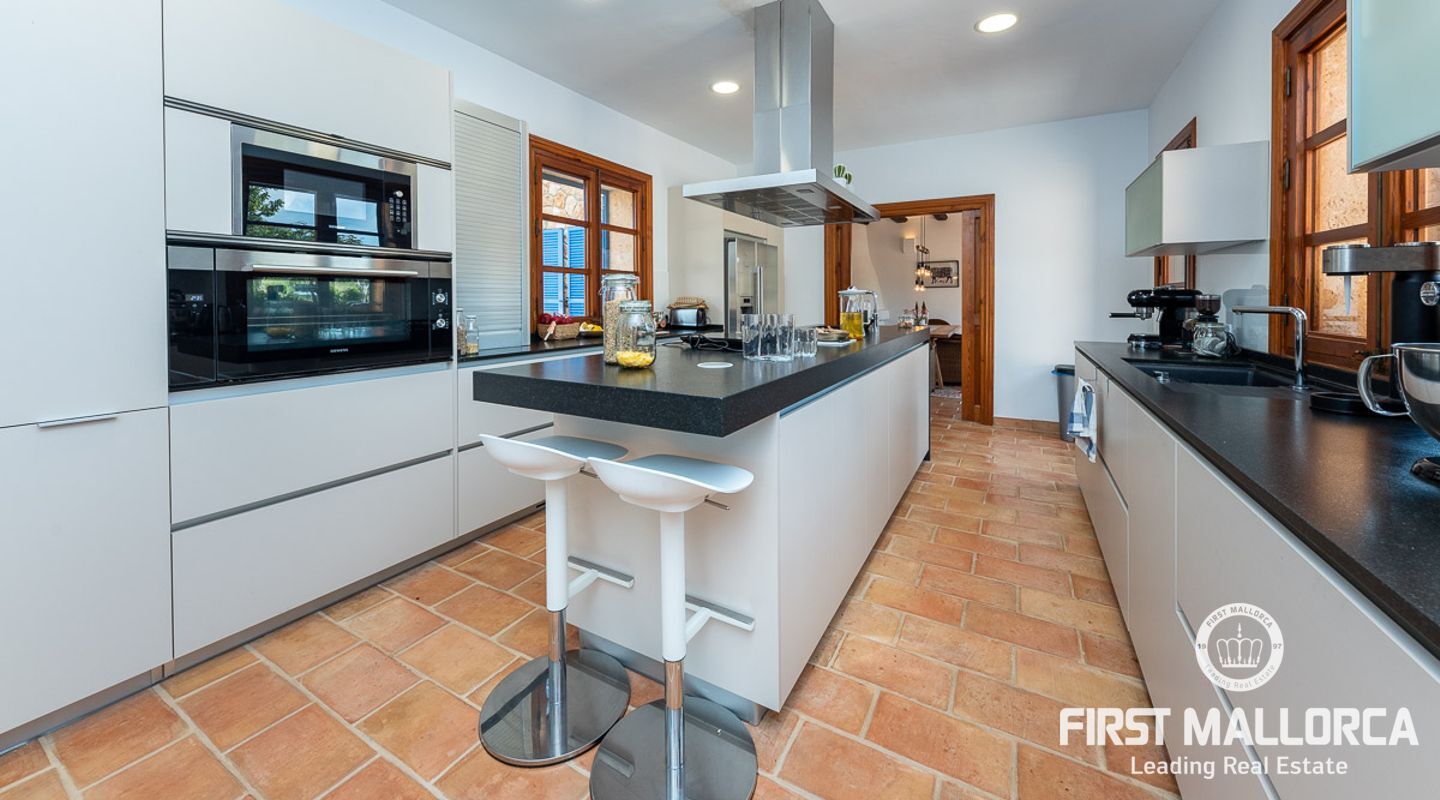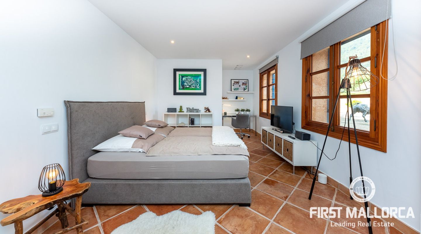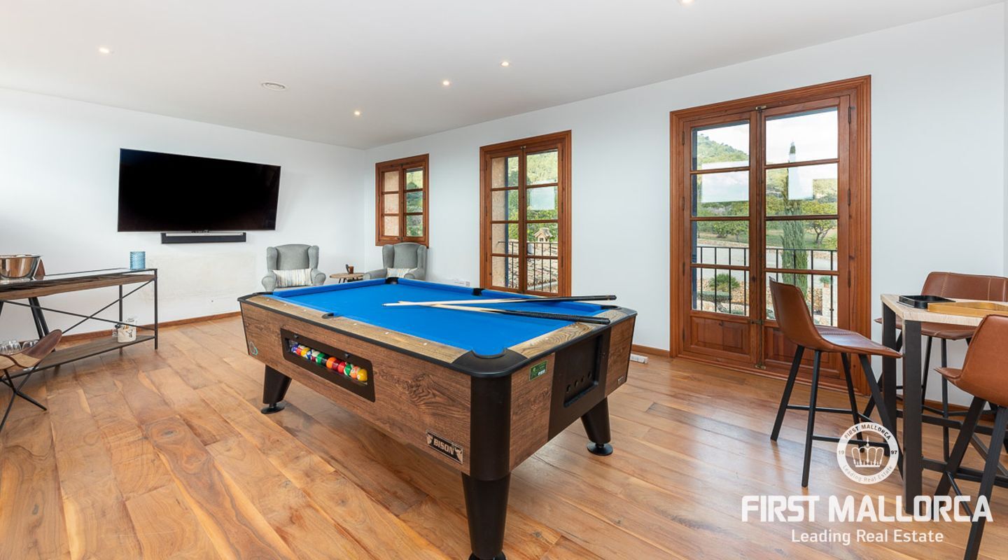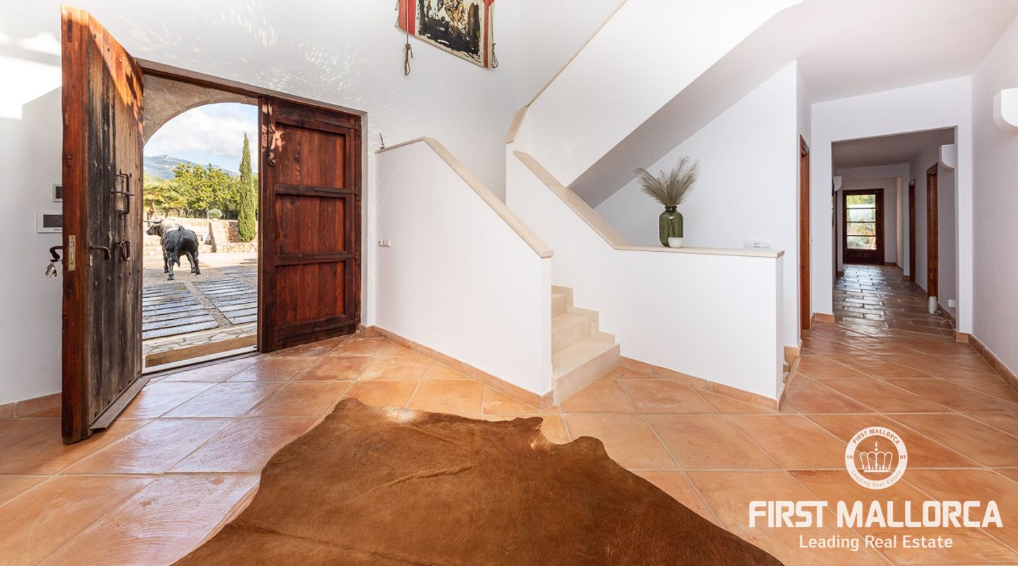 This country manor is located in Alaro – a beautiful area in the center part of Mallorca, and it truly maximises on its location, with unique views of the Twin mountains. The luxury manor is built in the heart of the countryside, which allows for wide-open, uninterrupted views of rural Mallorca. Beautiful two-story house is set on the large plot of 25 657 m2 in a delightful and exclusive location nestled under the Tramuntana Mountains, declared a World Heritage site by the UNESCO in 2011. The property has a constructed area of 1014 m2 and consists of 7 bedrooms and 8 bathrooms. Outside the property, you will be able to enjoy a beautiful Mediterranean garden filled with olive trees, a private vineyard and a pool. The underfloor has an underground garage, technical rooms and it also offers a spacious basement. The property has its own well for drinking water and solar panels.
