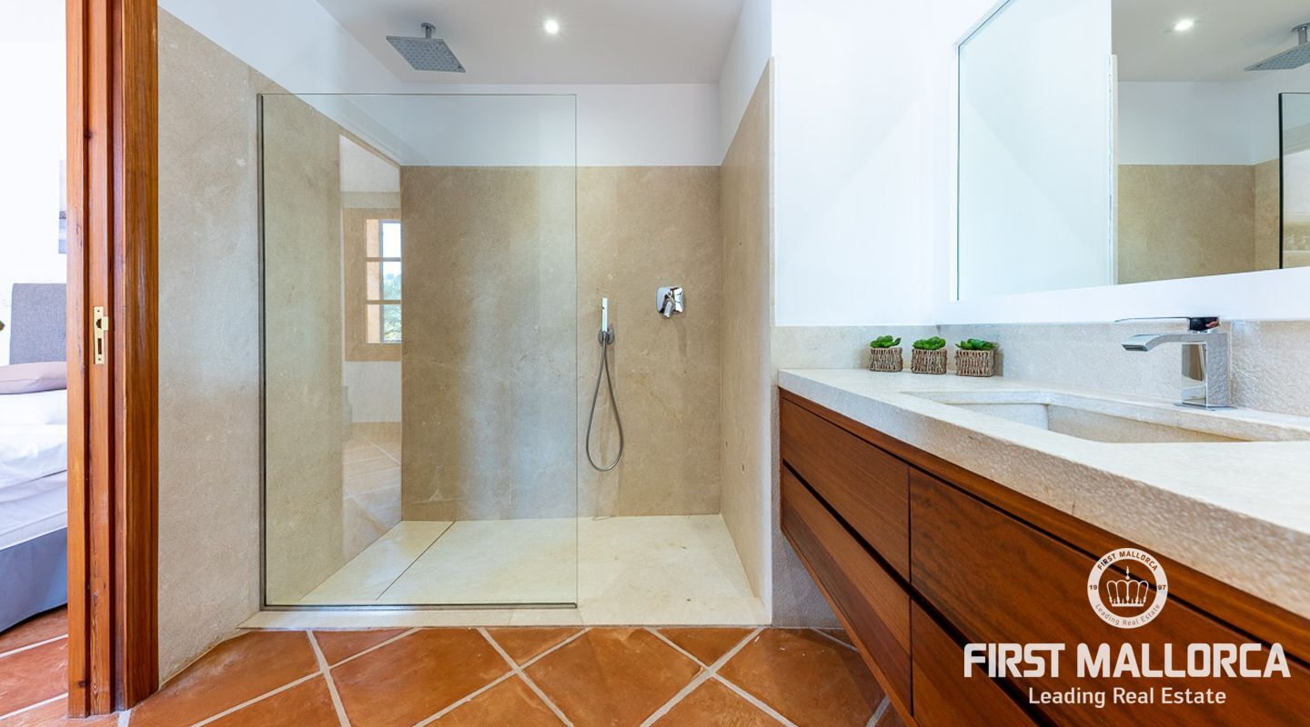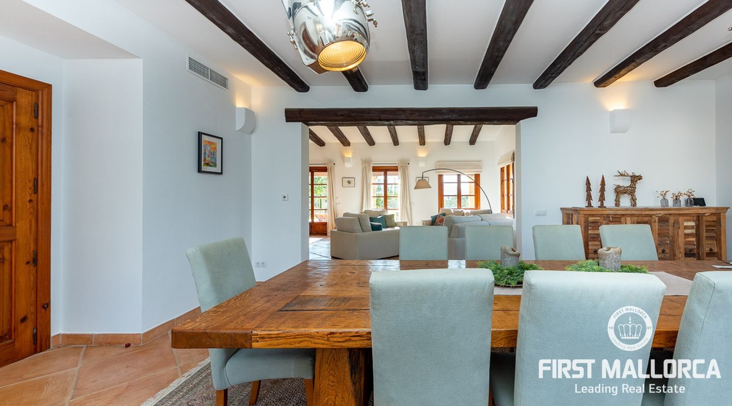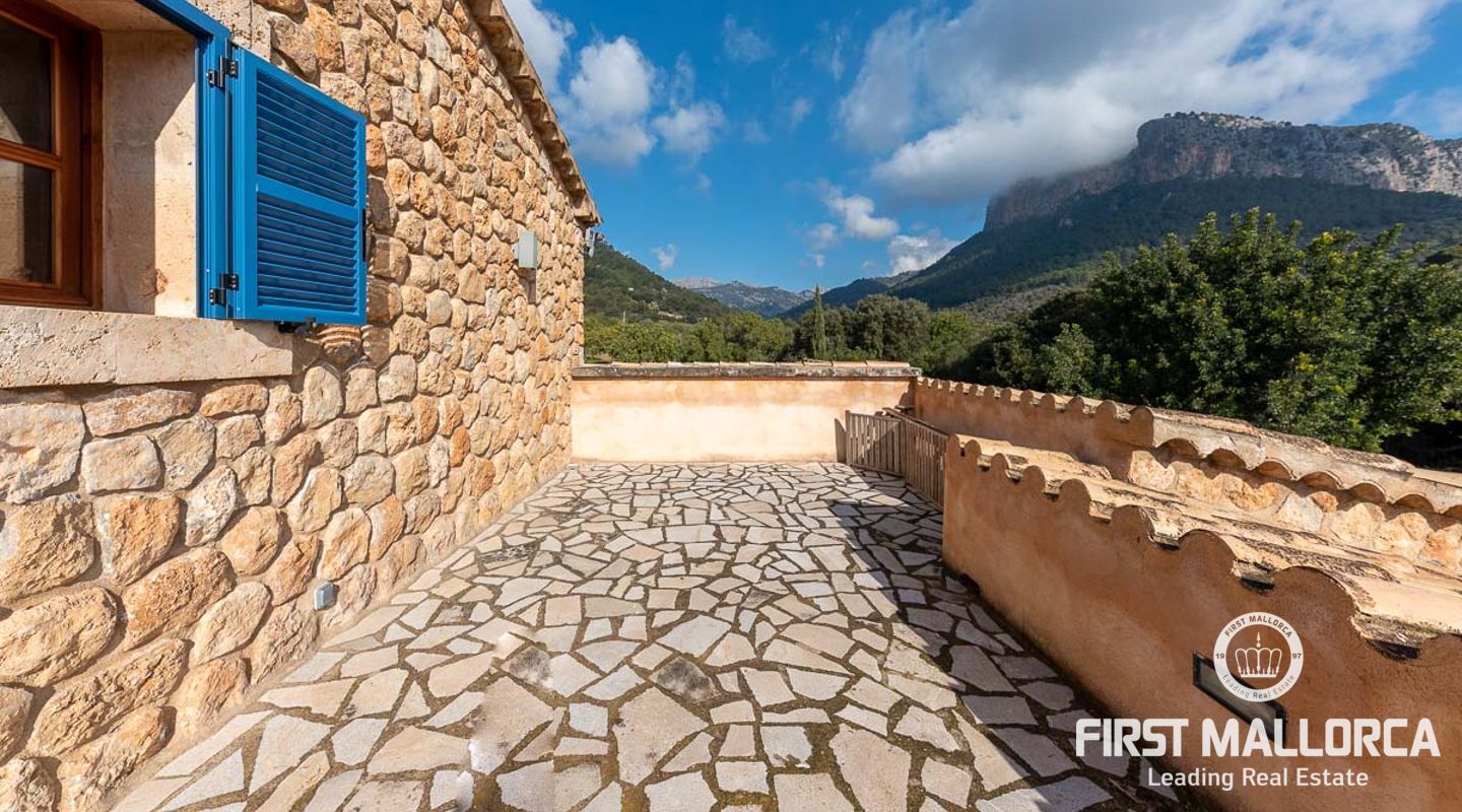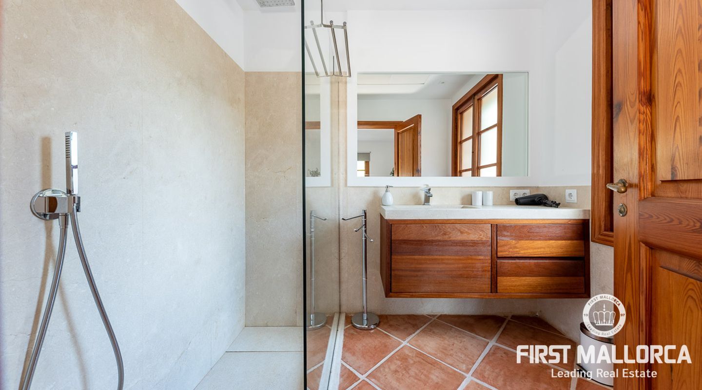 This country manor is located in Alaro – a beautiful area in the center part of Mallorca, and it truly maximises on its location, with unique views of the Twin mountains. The luxury manor is built in the heart of the countryside, which allows for wide-open, uninterrupted views of rural Mallorca. Beautiful two-story house is set on the large plot of 25 657 m2 in a delightful and exclusive location nestled under the Tramuntana Mountains, declared a World Heritage site by the UNESCO in 2011. The property has a constructed area of 1014 m2 and consists of 7 bedrooms and 8 bathrooms. Outside the property, you will be able to enjoy a beautiful Mediterranean garden filled with olive trees, a private vineyard and a pool. The underfloor has an underground garage, technical rooms and it also offers a spacious basement. The property has its own well for drinking water and solar panels.