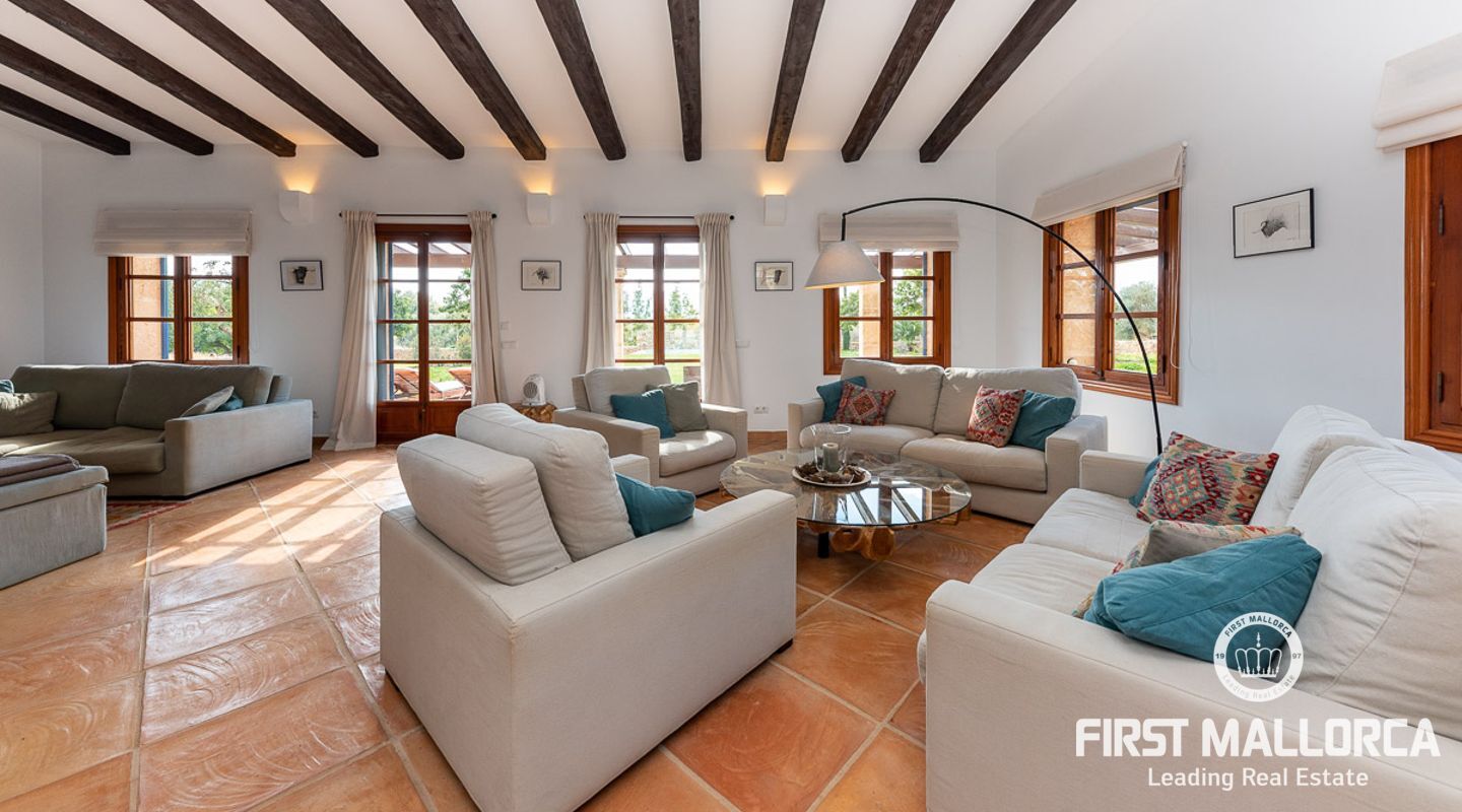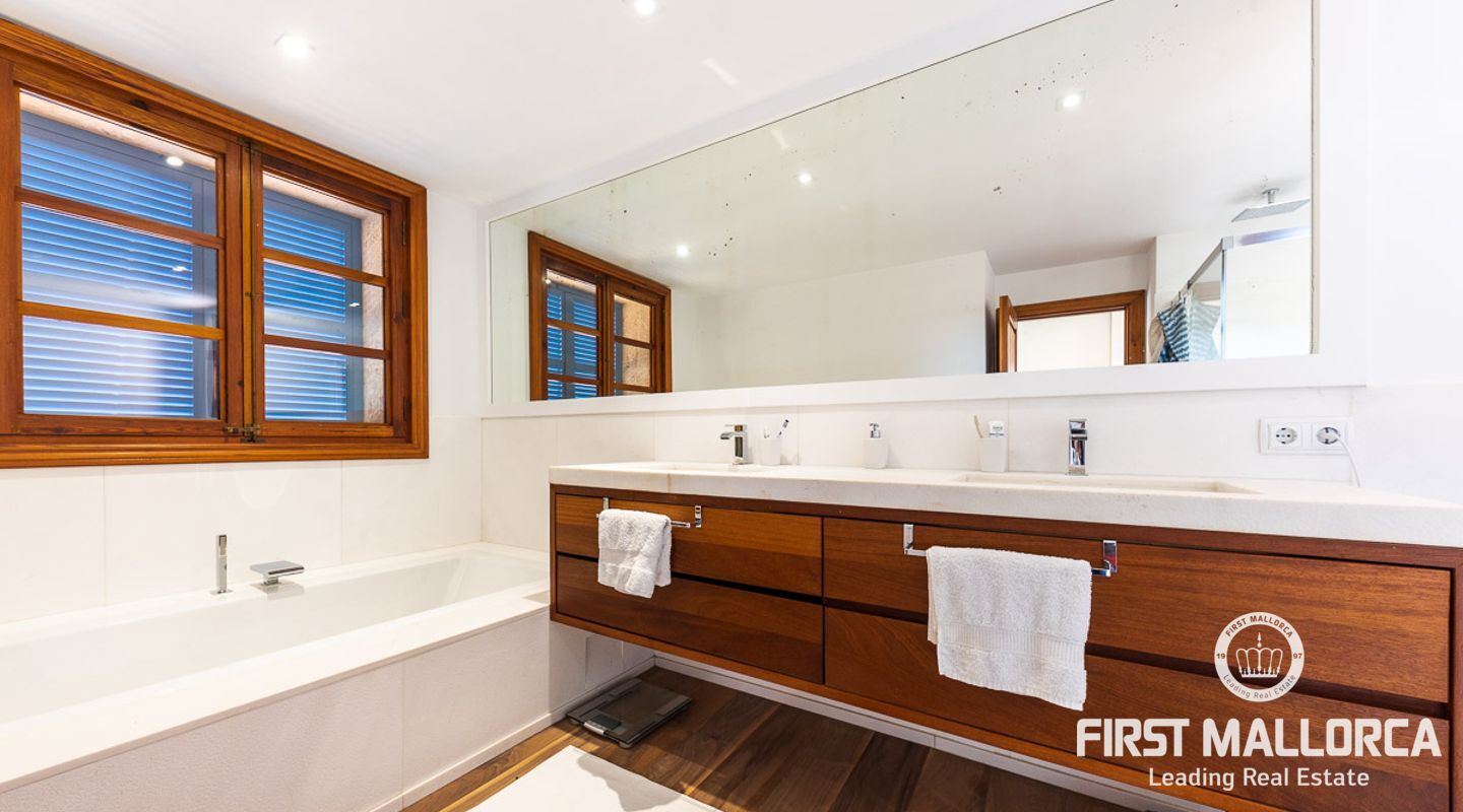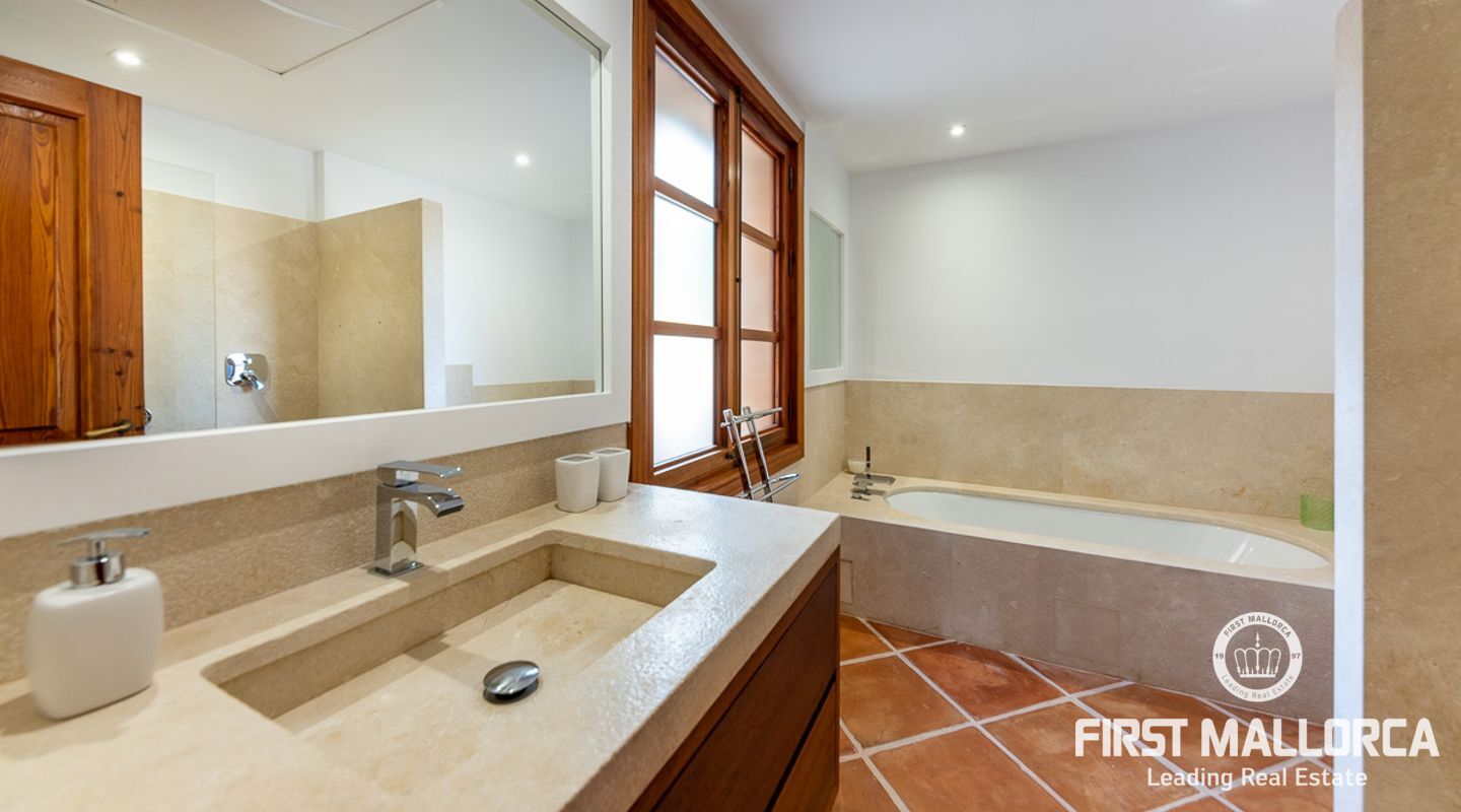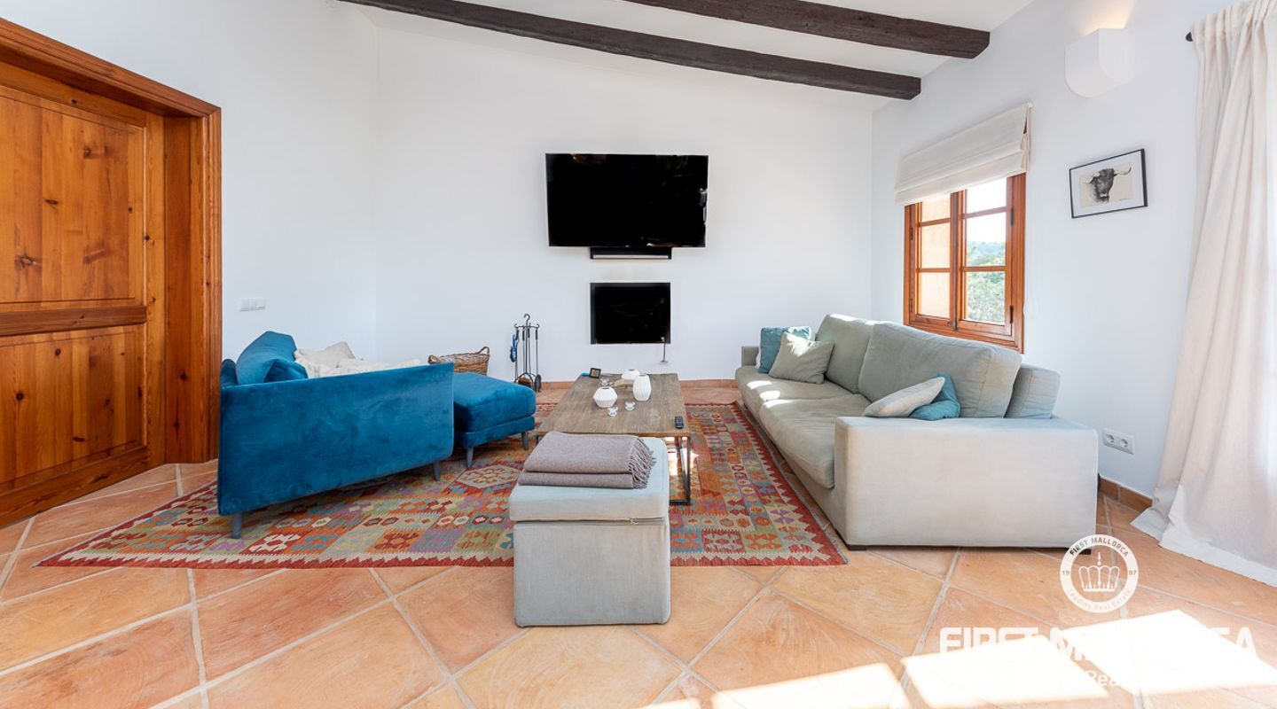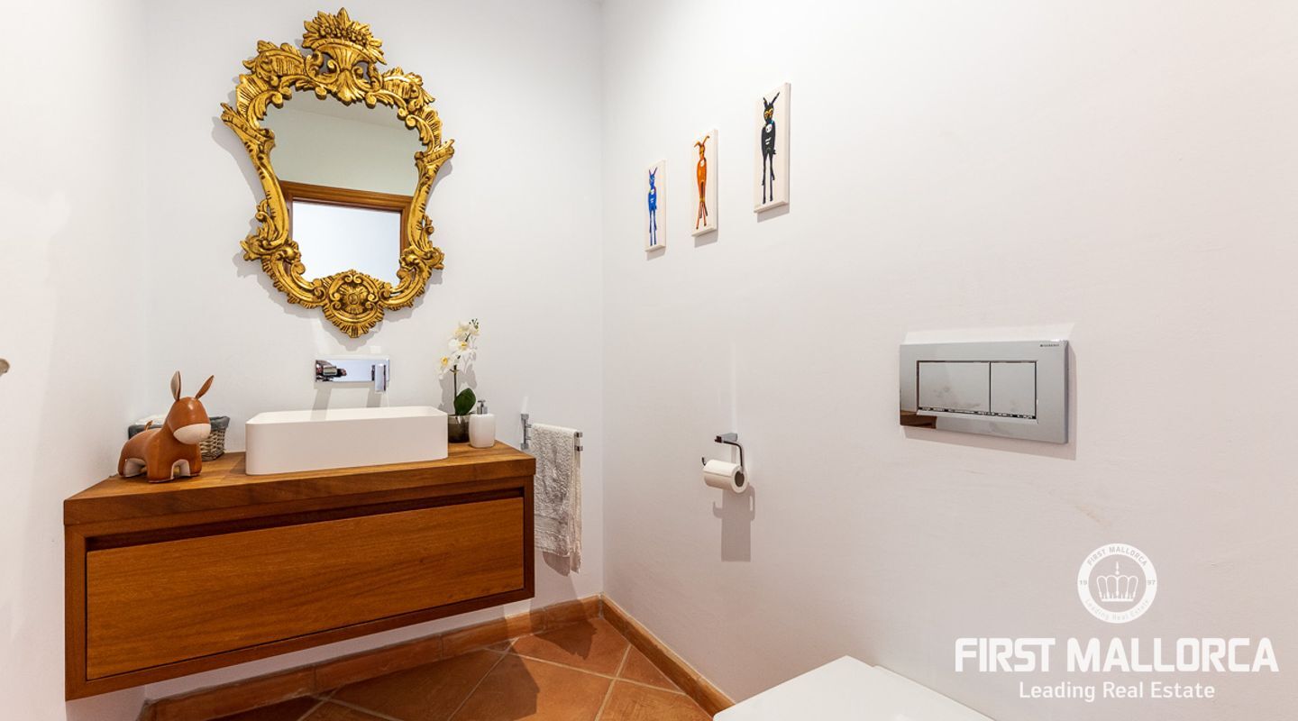This country manor is located in Alaro – a beautiful area in the center part of Mallorca, and it truly maximises on its location, with unique views of the Twin mountains. The luxury manor is built in the heart of the countryside, which allows for wide-open, uninterrupted views of rural Mallorca. Beautiful two-story house is set on the large plot of 25 657 m2 in a delightful and exclusive location nestled under the Tramuntana Mountains, declared a World Heritage site by the UNESCO in 2011. The property has a constructed area of 1014 m2 and consists of 7 bedrooms and 8 bathrooms. Outside the property, you will be able to enjoy a beautiful Mediterranean garden filled with olive trees, a private vineyard and a pool. The underfloor has an underground garage, technical rooms and it also offers a spacious basement. The property has its own well for drinking water and solar panels.